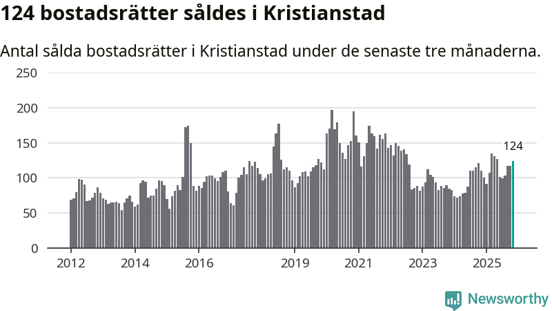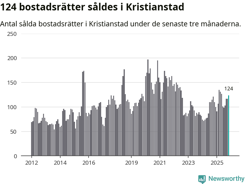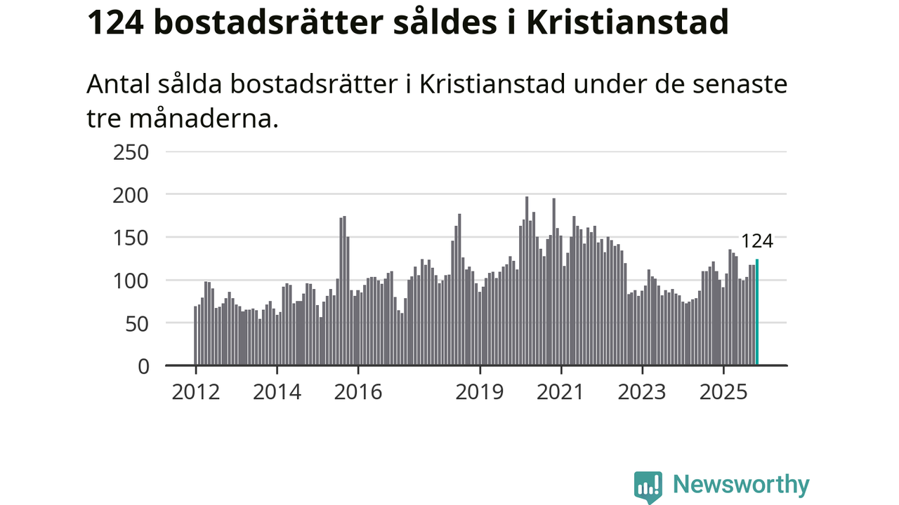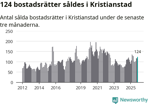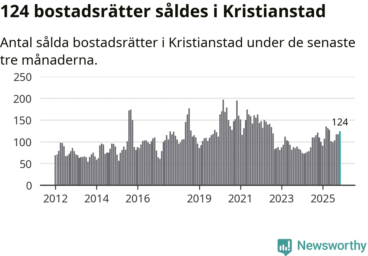 Sammanlagt såldes 124 bostadsrätter i Kristianstads kommun mellan september och november till ett genomsnittligt pris på 1,3 miljoner kronor. I fjol gjordes 110 affärer vid den här tiden på året.