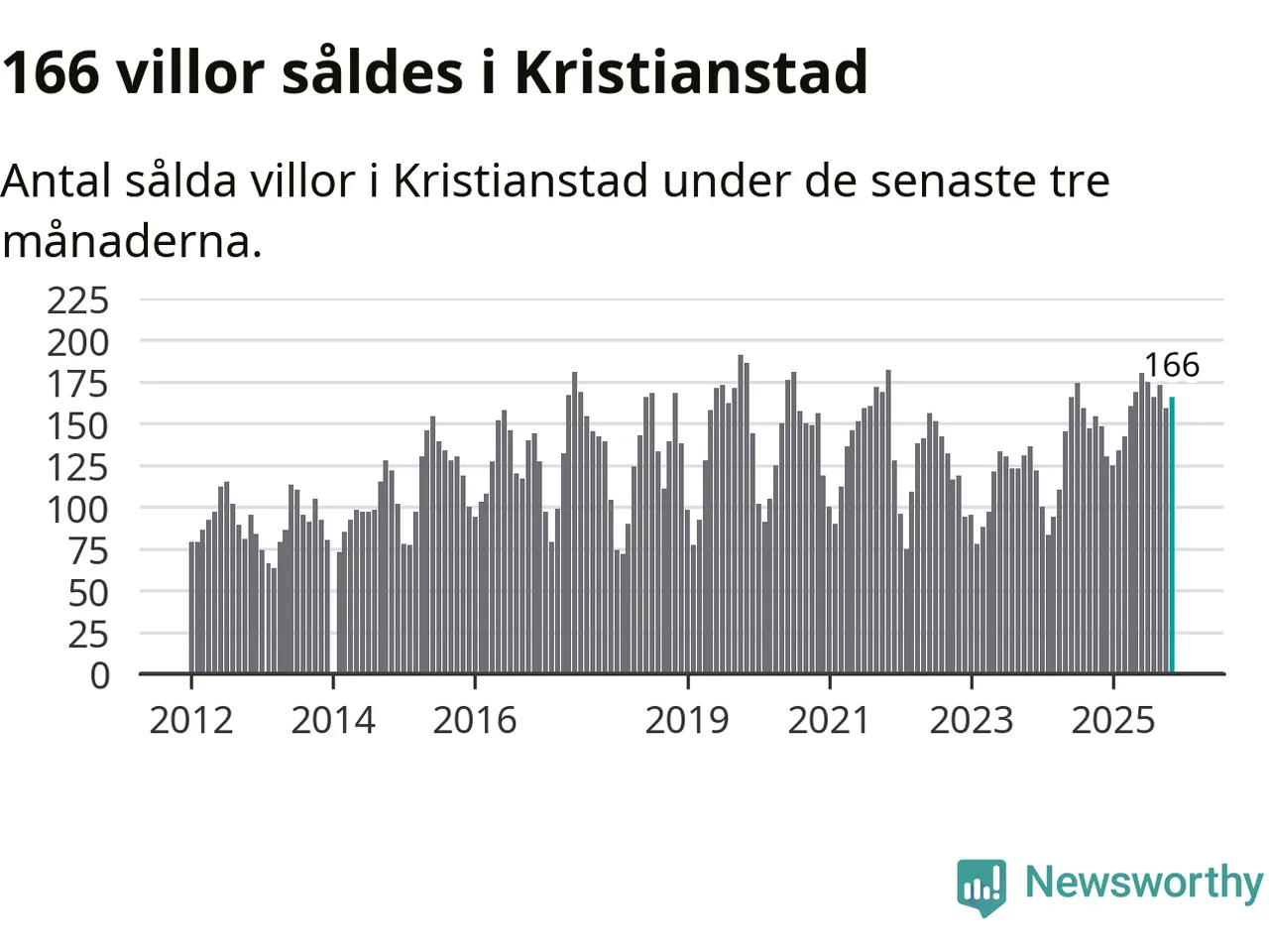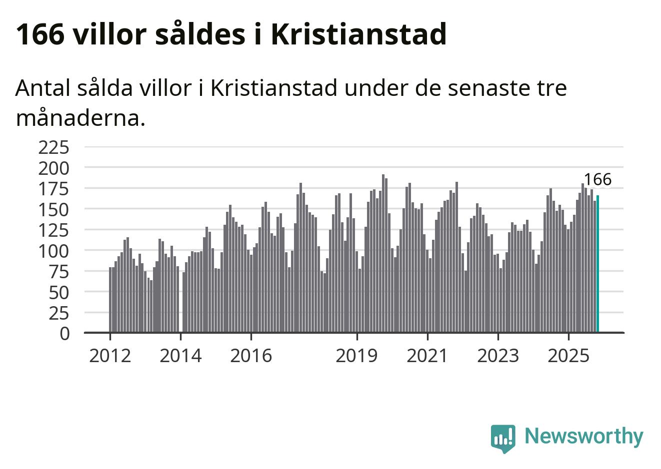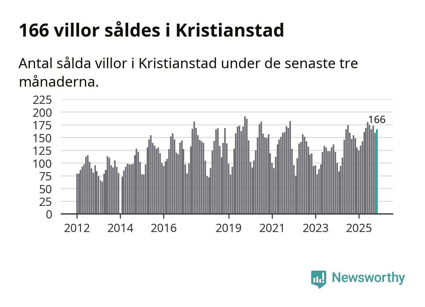 Sammanlagt såldes 166 villor i Kristianstads kommun mellan september och november till ett genomsnittligt pris på 2,8 miljoner kronor. I fjol gjordes 148 affärer vid den här tiden på året.