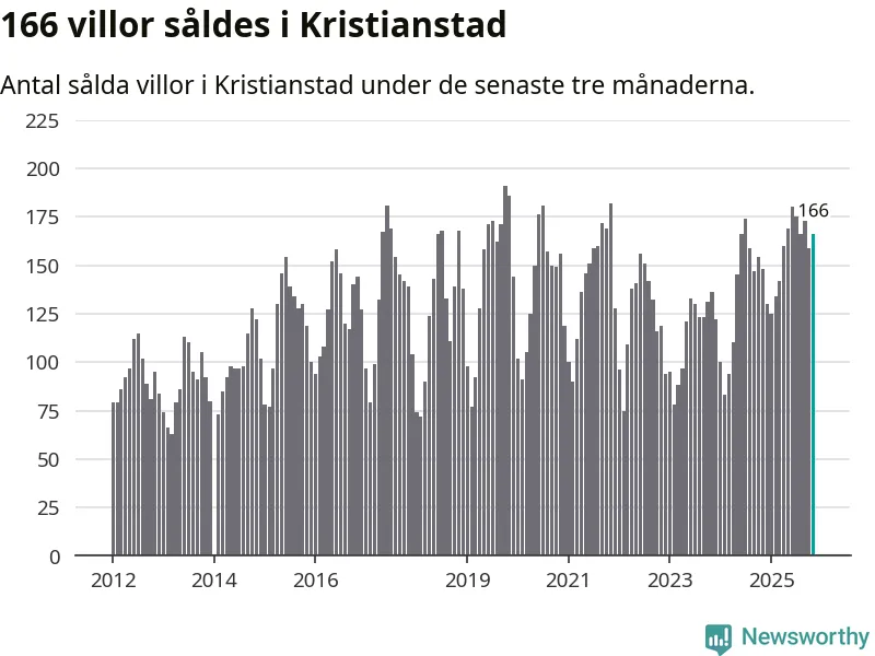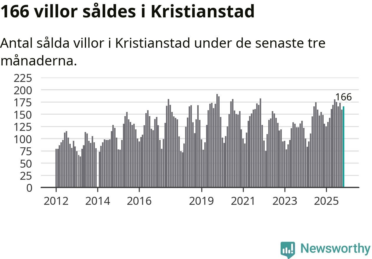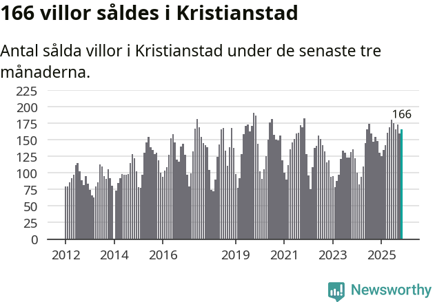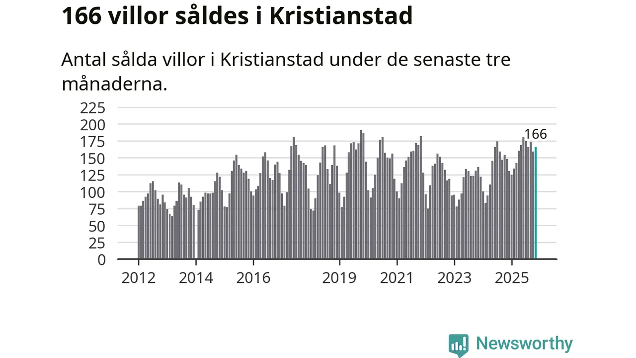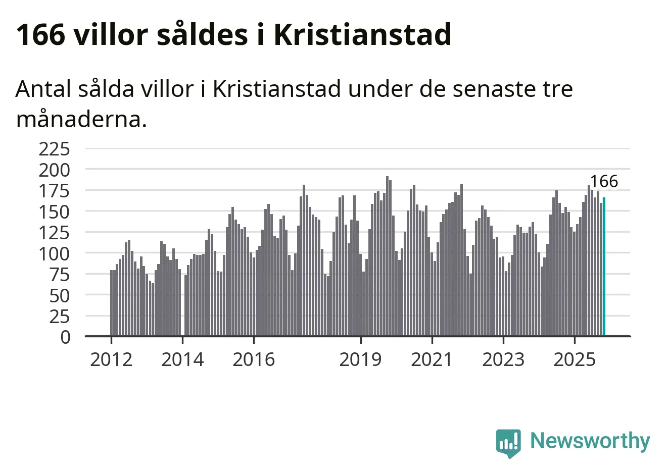 Sammanlagt såldes 166 villor i Kristianstads kommun mellan september och november till ett genomsnittligt pris på 2,8 miljoner kronor. I fjol gjordes 148 affärer vid den här tiden på året.
