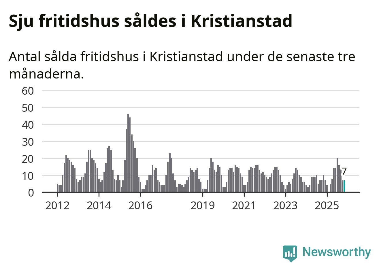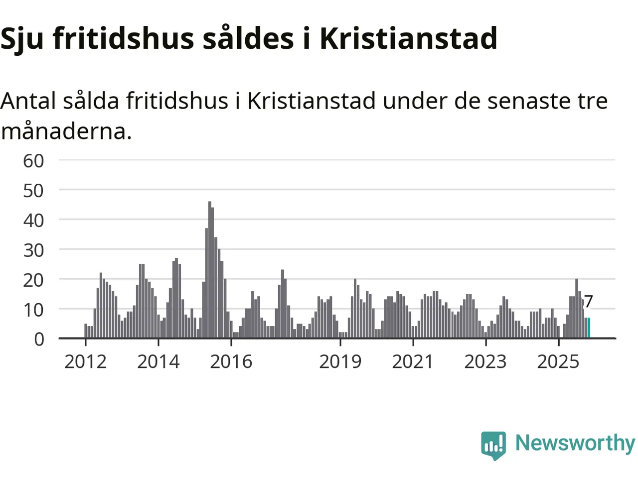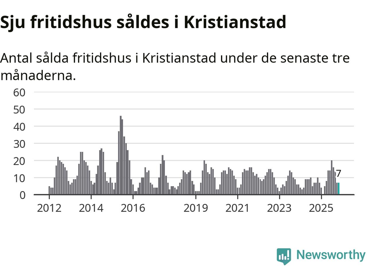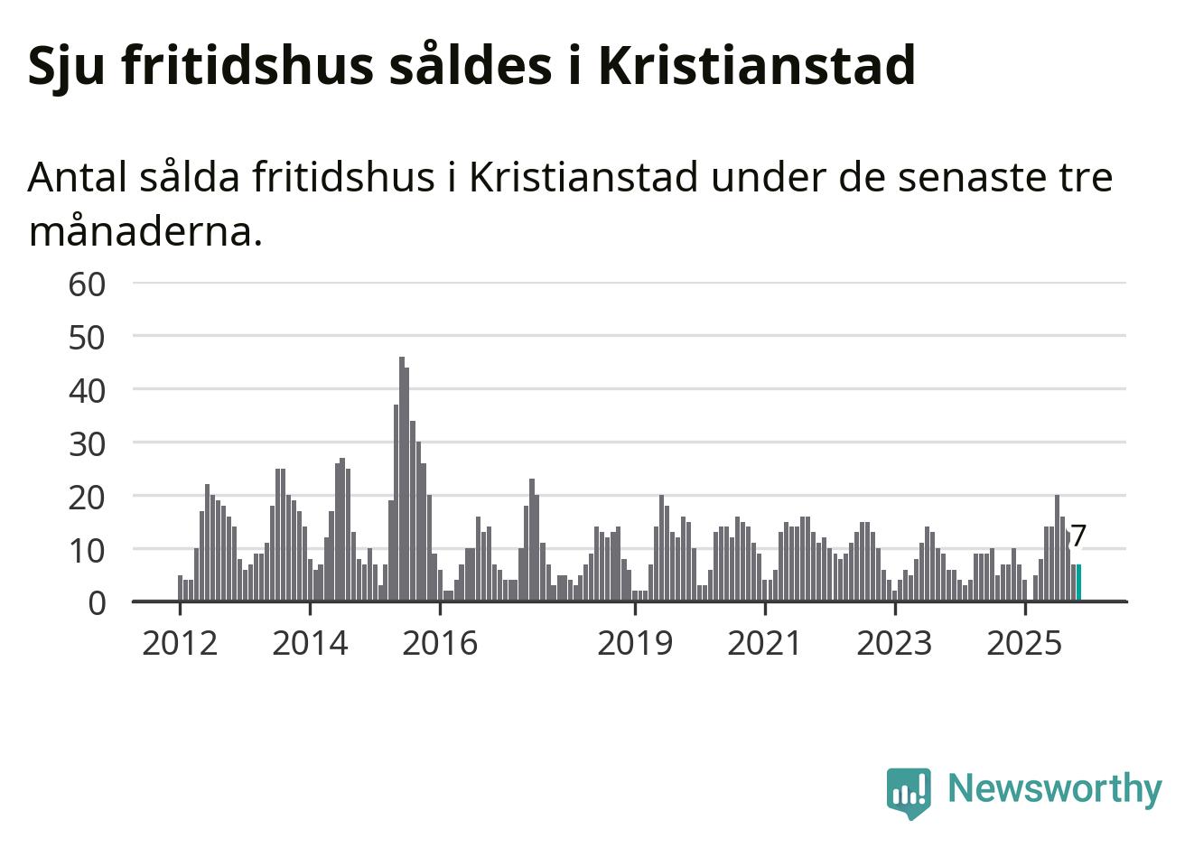 Mellan september och november gjordes sammanlagt sju affärer med fritidshus i Kristianstads kommun. Det kan jämföras med tio vid motsvarande tid i fjol.