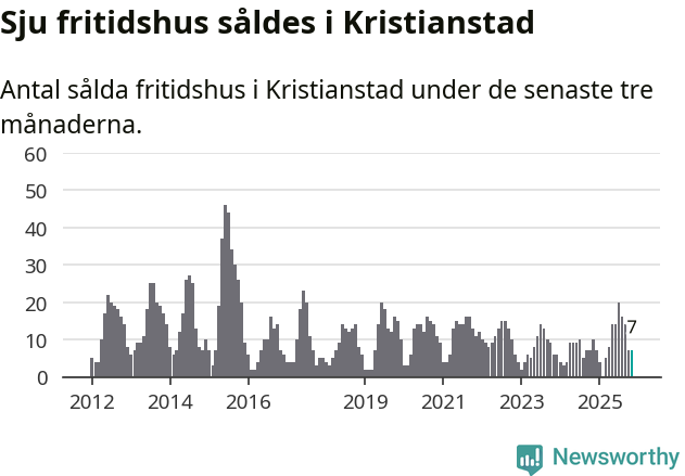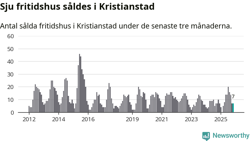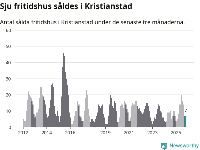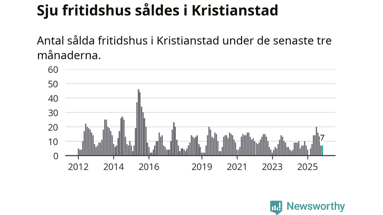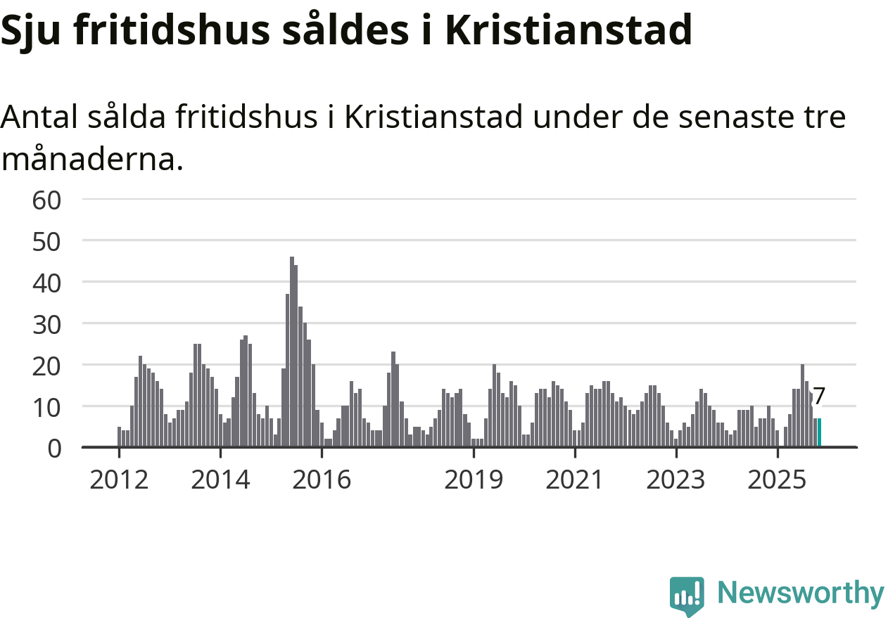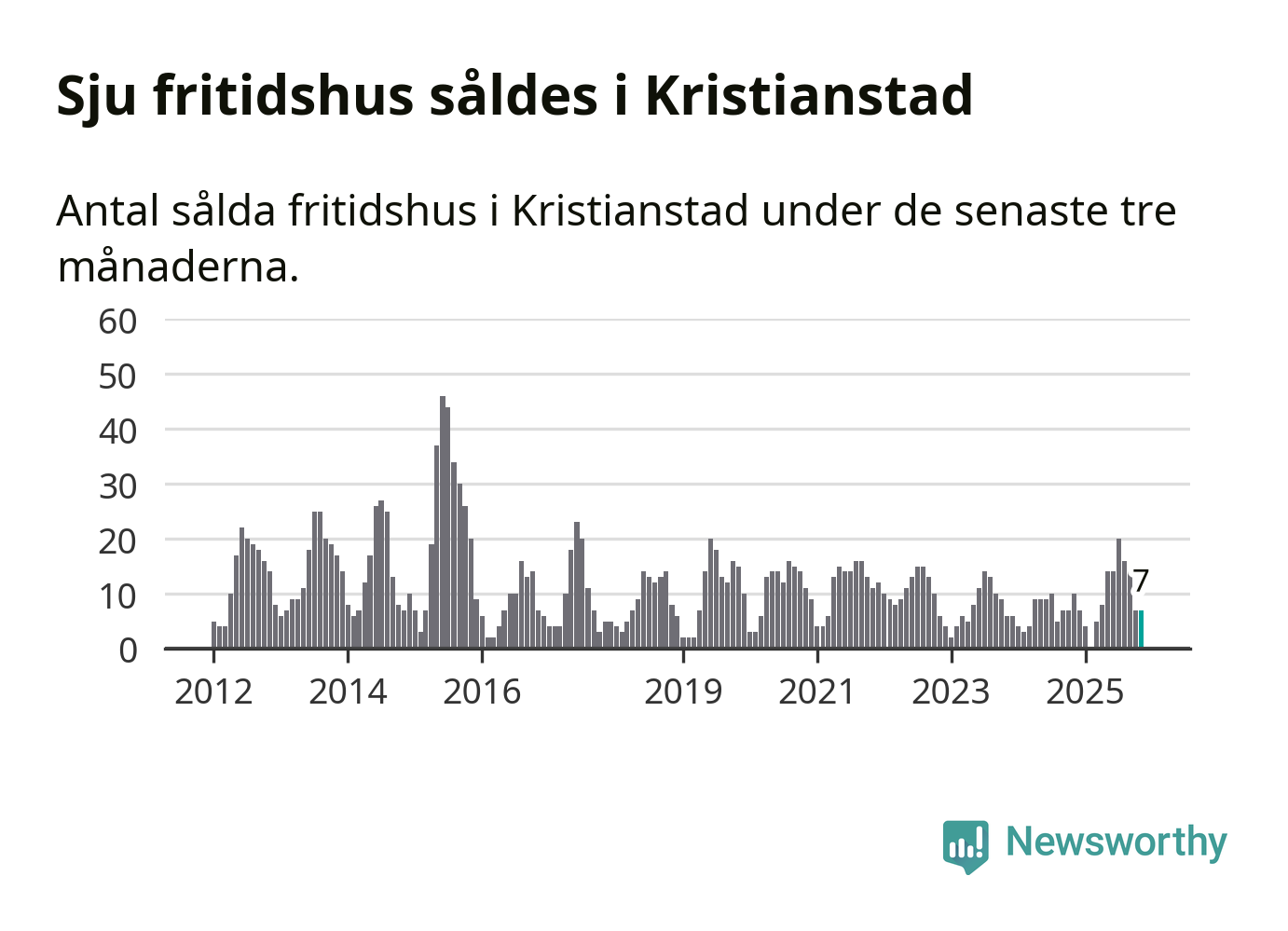 Mellan september och november gjordes sammanlagt sju affärer med fritidshus i Kristianstads kommun. Det kan jämföras med tio vid motsvarande tid i fjol.