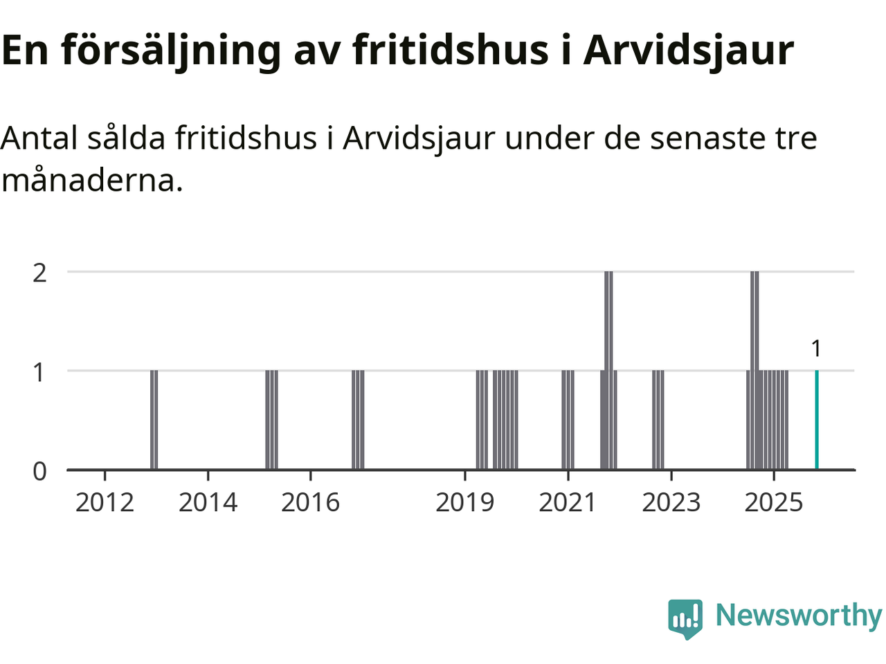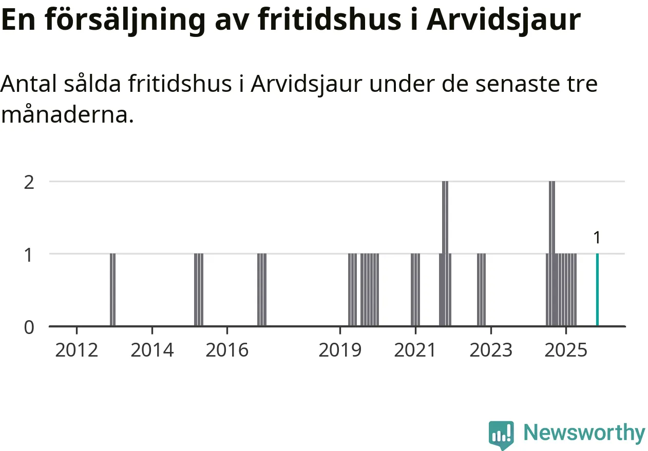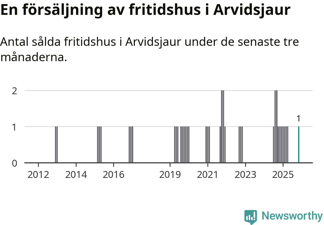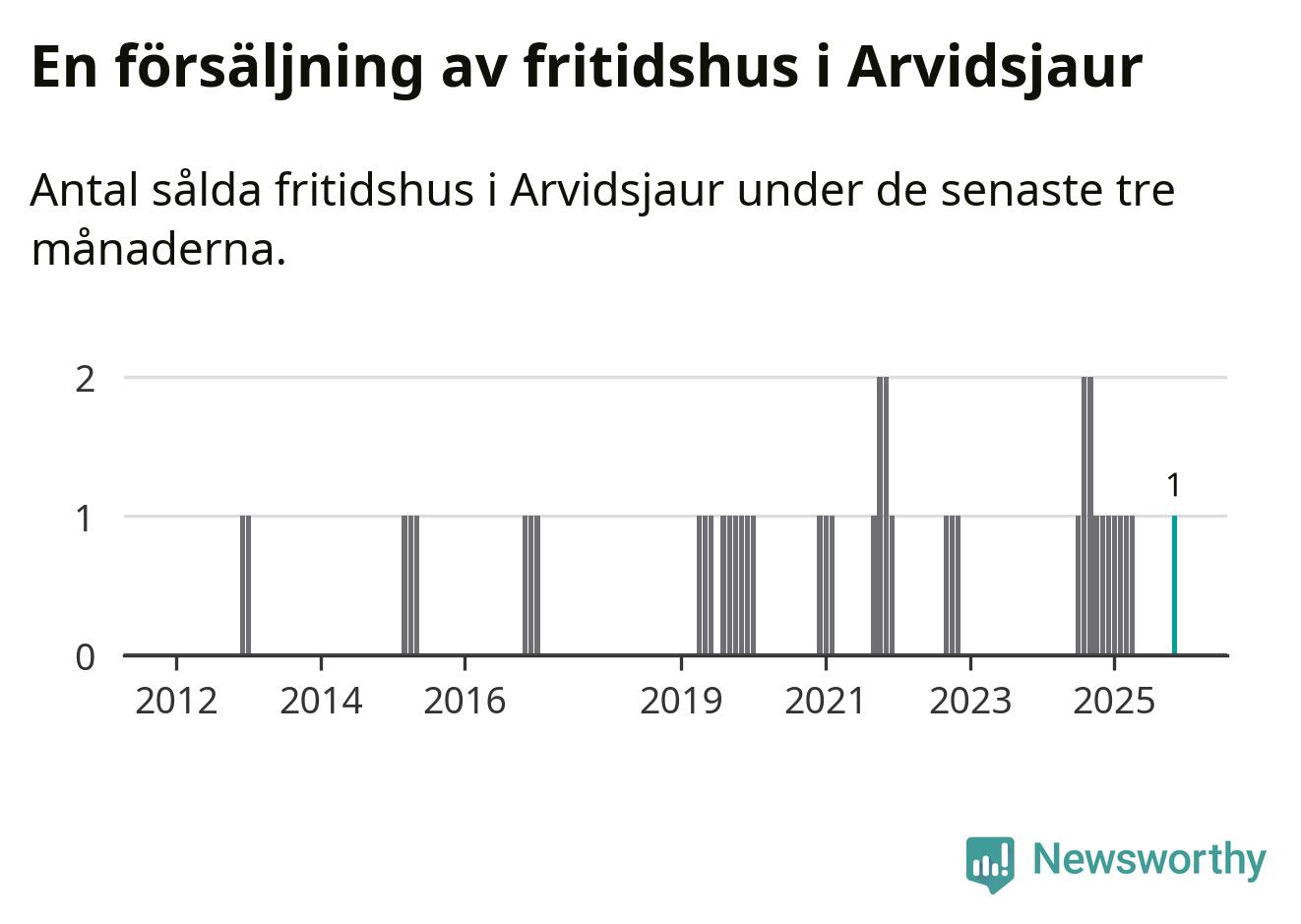Mellan september och november gjordes sammanlagt en affär med fritidshus i Arvidsjaurs kommun. Det är lika många affärer som vid motsvarande tid i fjol.