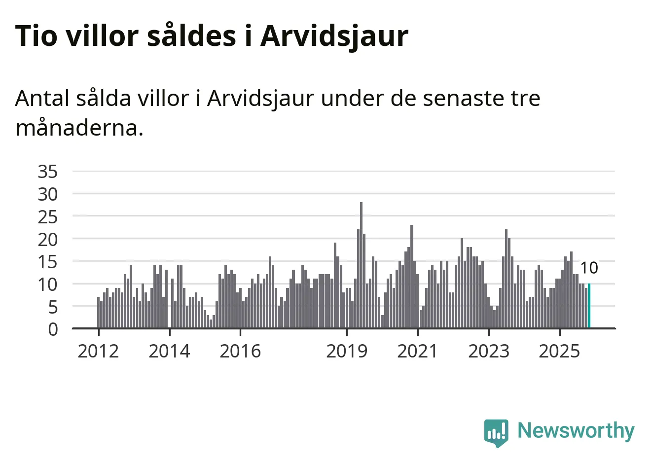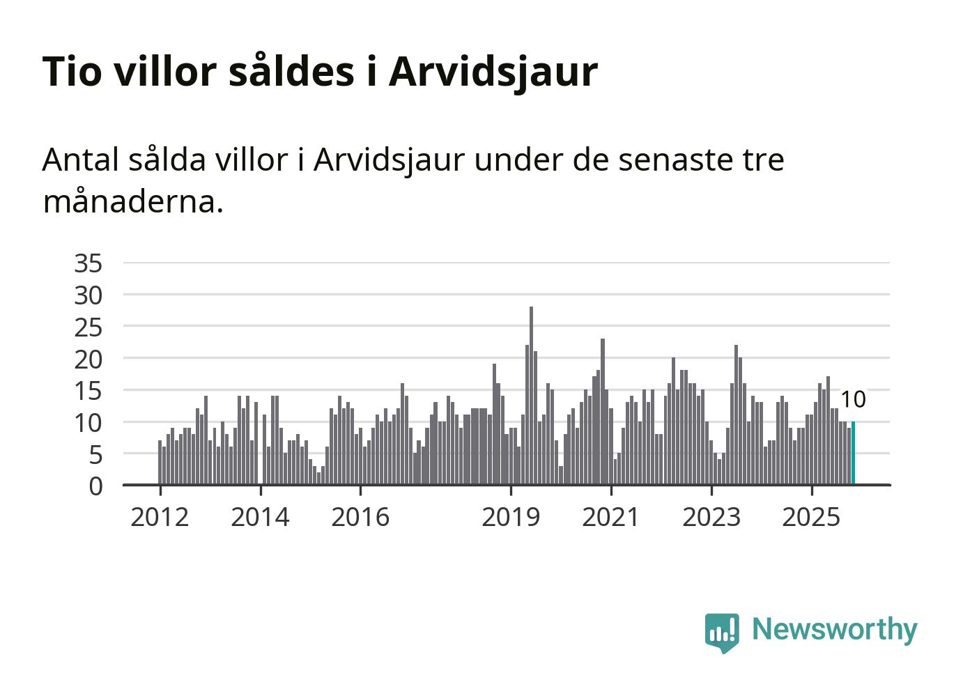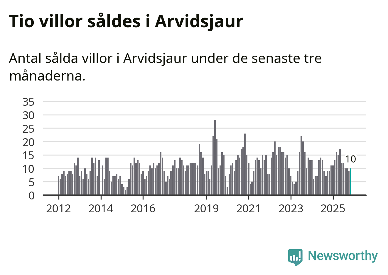 Mellan september och november gjordes sammanlagt tio affärer med villor i Arvidsjaurs kommun. Det kan jämföras med nio vid motsvarande tid i fjol.