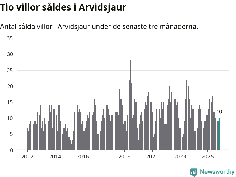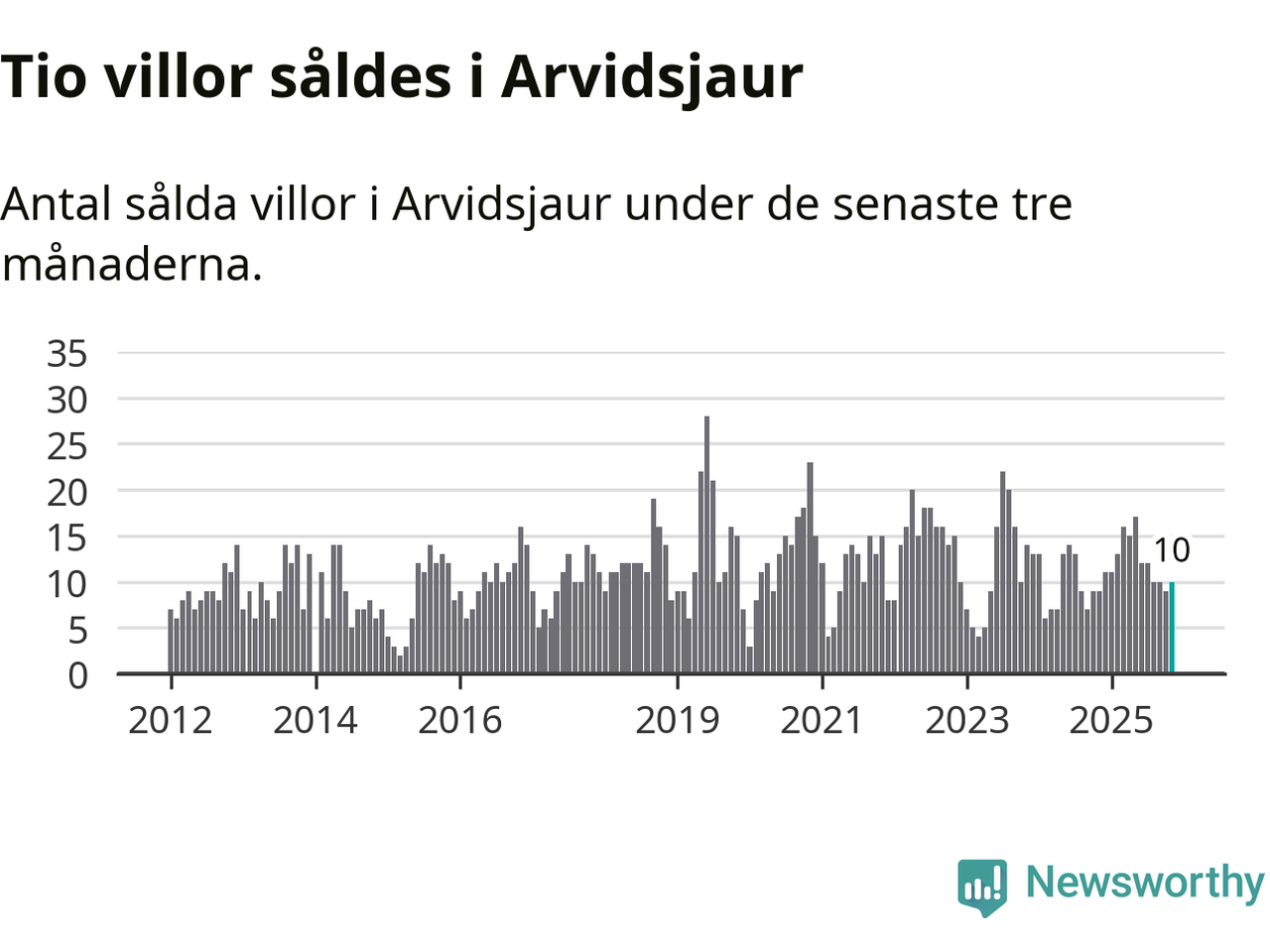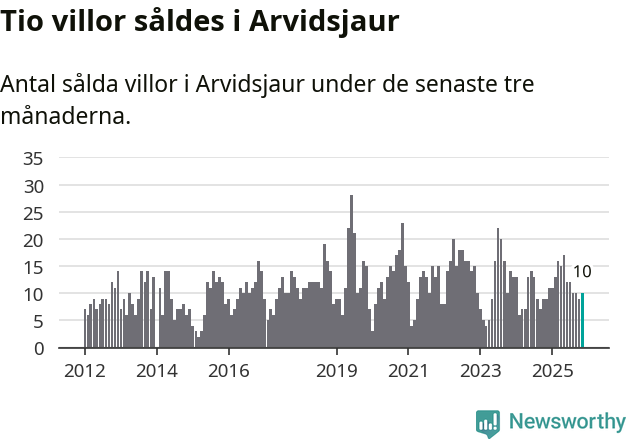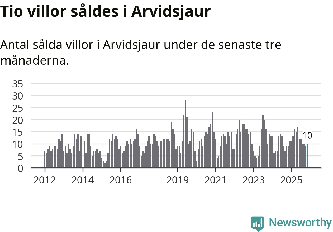 Mellan september och november gjordes sammanlagt tio affärer med villor i Arvidsjaurs kommun. Det kan jämföras med nio vid motsvarande tid i fjol.