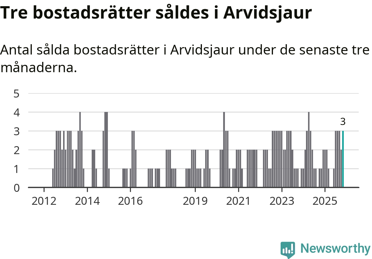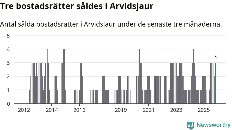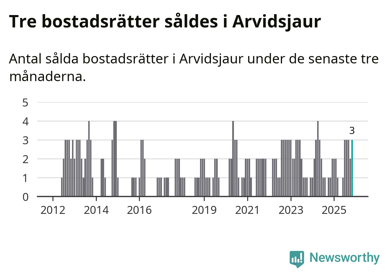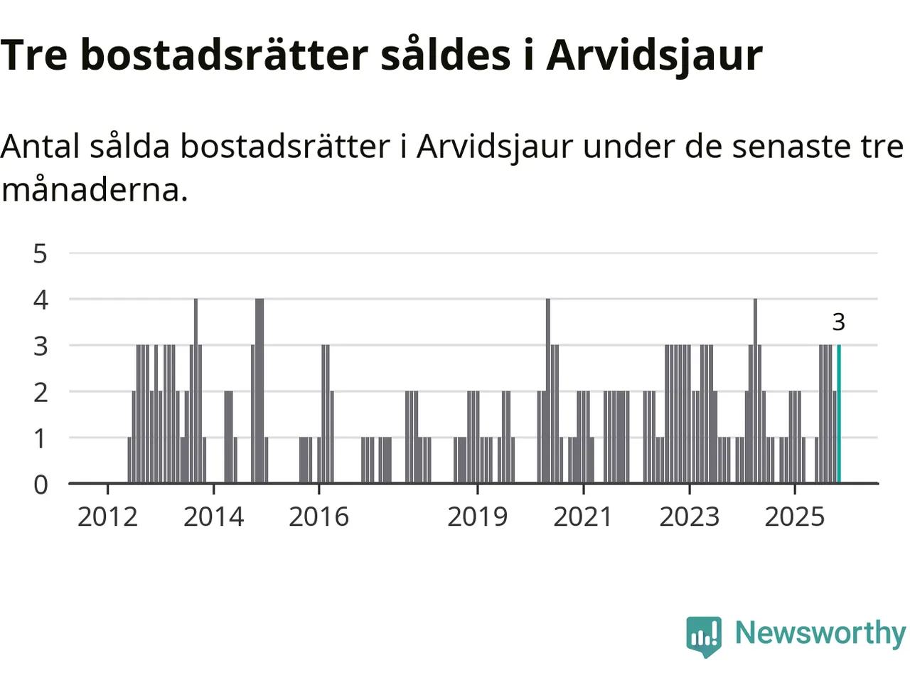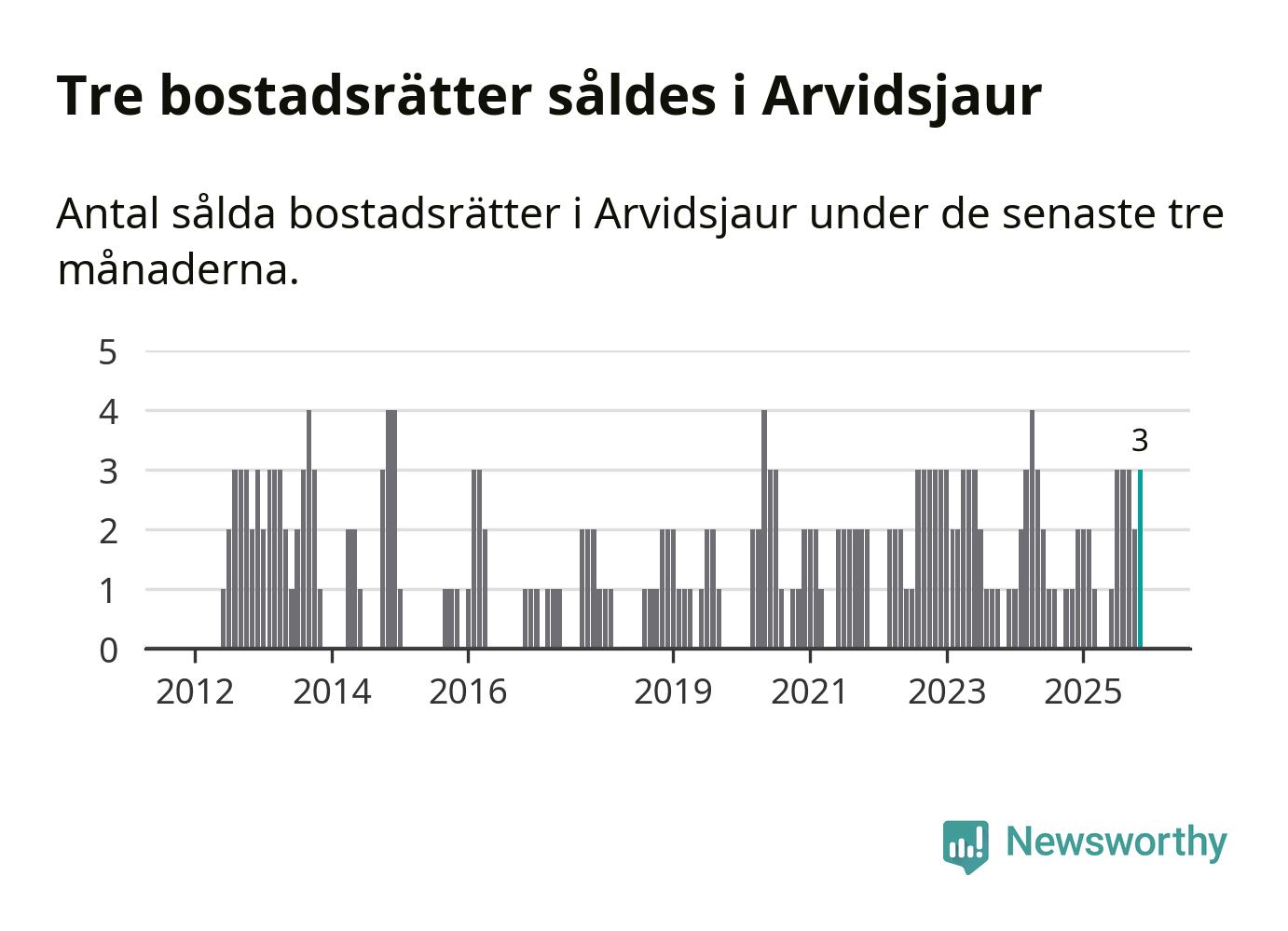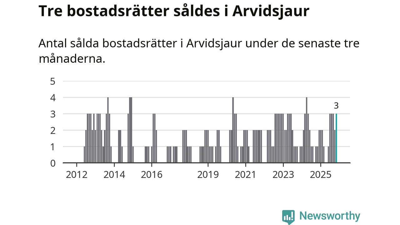 Mellan september och november gjordes sammanlagt tre affärer med bostadsrätter i Arvidsjaurs kommun. Det kan jämföras med ett vid motsvarande tid i fjol.