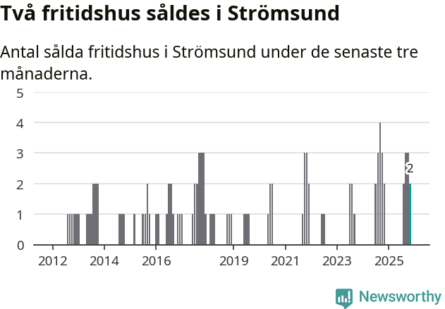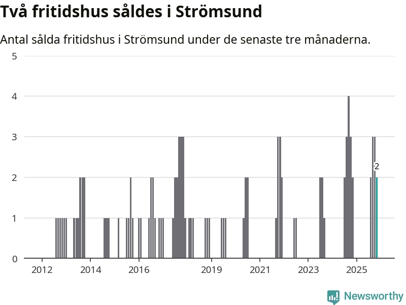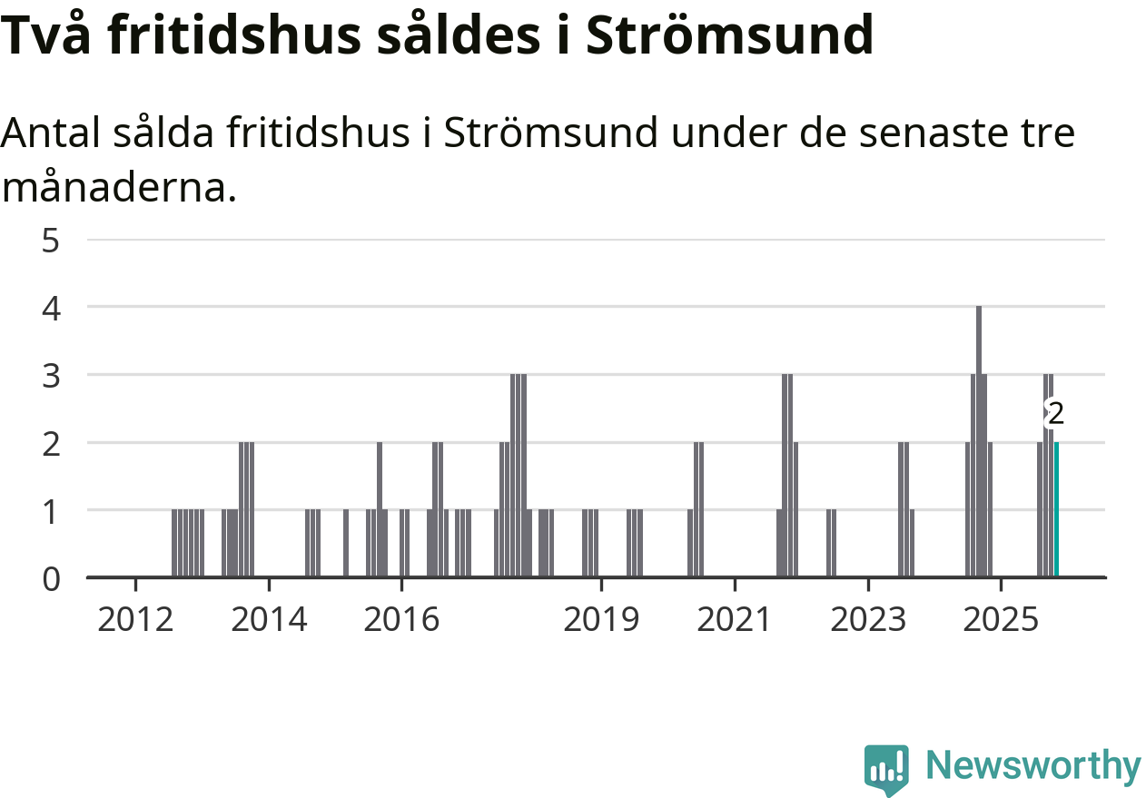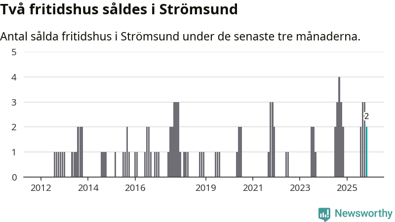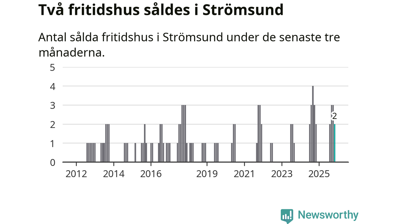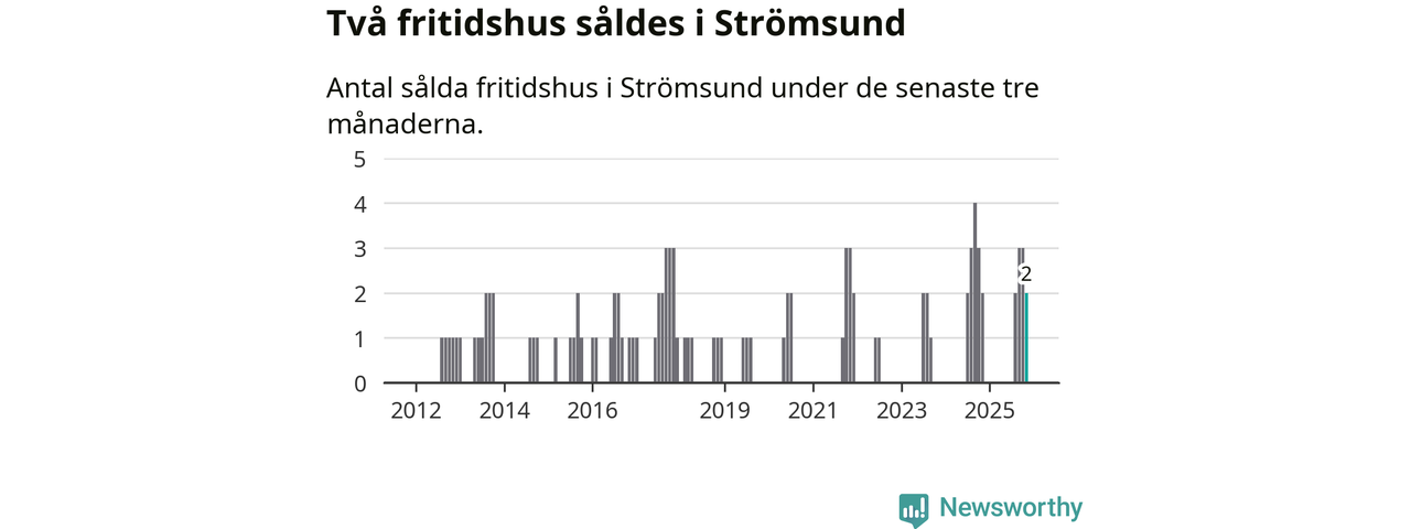 Mellan september och november gjordes sammanlagt två affärer med fritidshus i Strömsunds kommun. Det är lika många affärer som vid motsvarande tid i fjol.