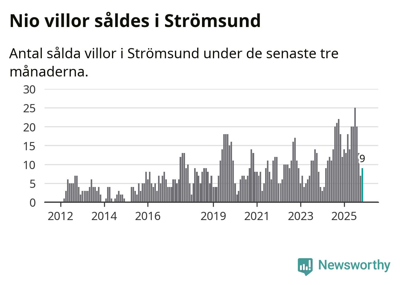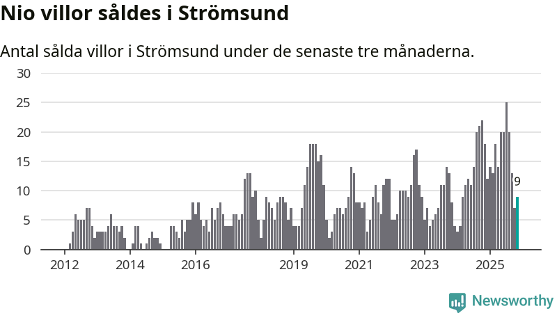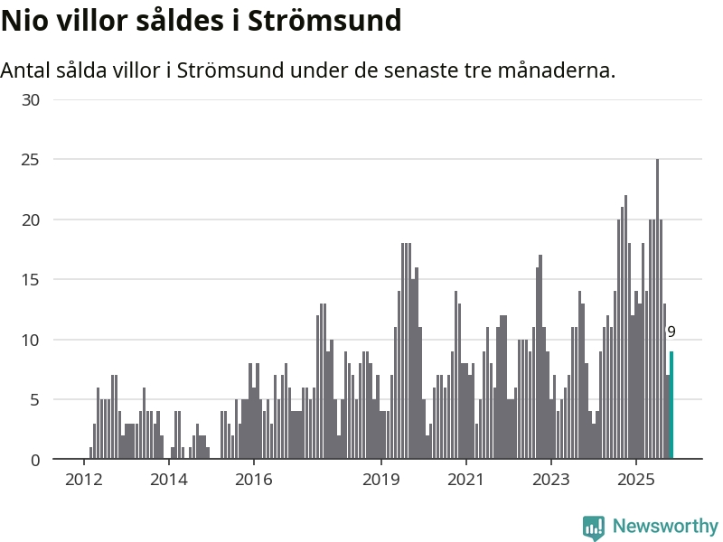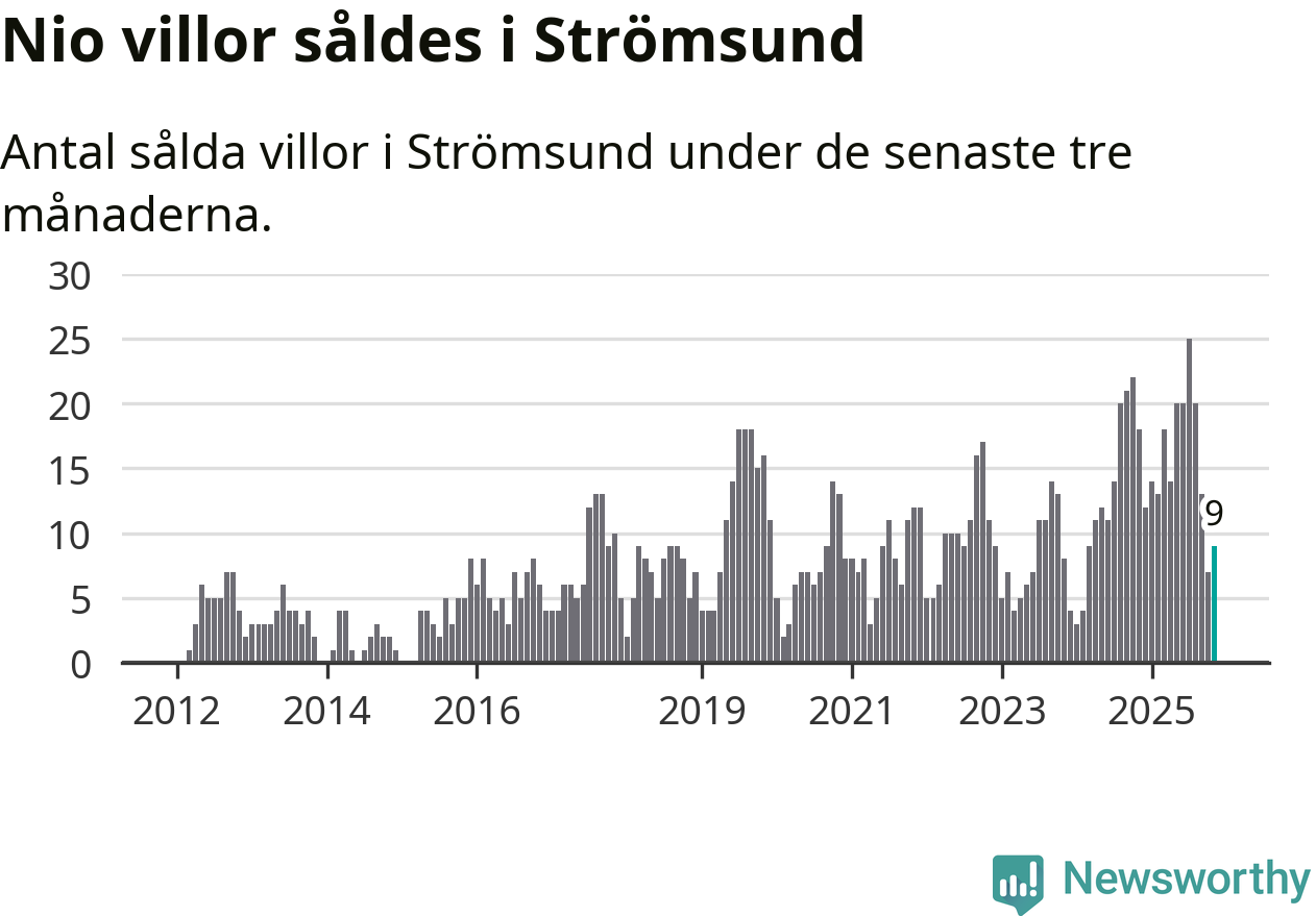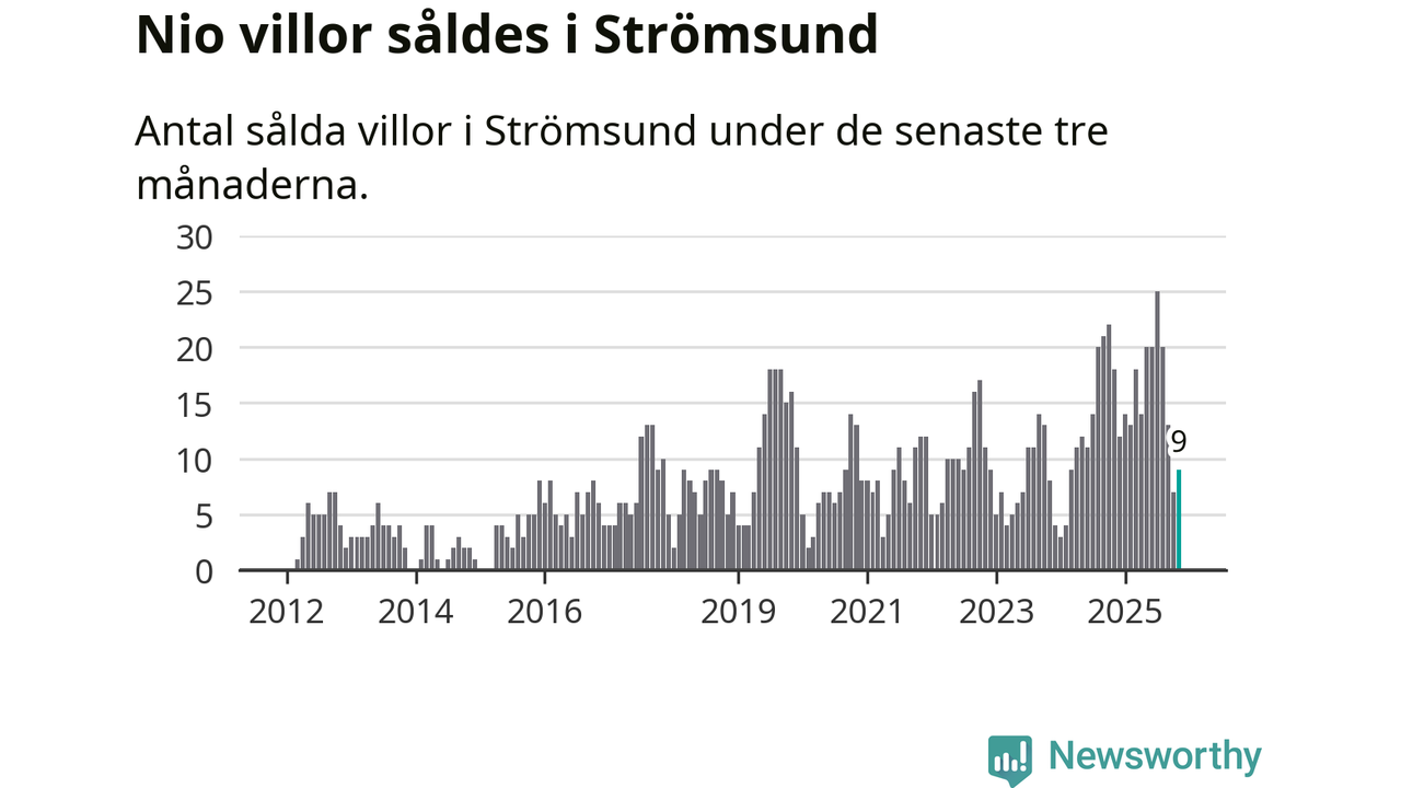 Mellan september och november gjordes sammanlagt nio affärer med villor i Strömsunds kommun. Det kan jämföras med 18 vid motsvarande tid i fjol.