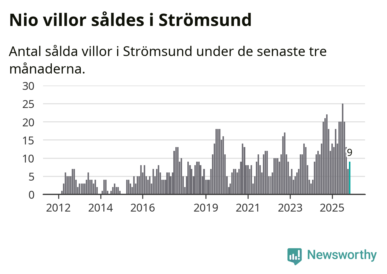 Graf: Antal sålda villor i Strömsunds kommun