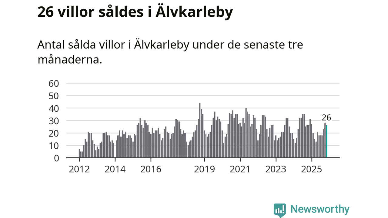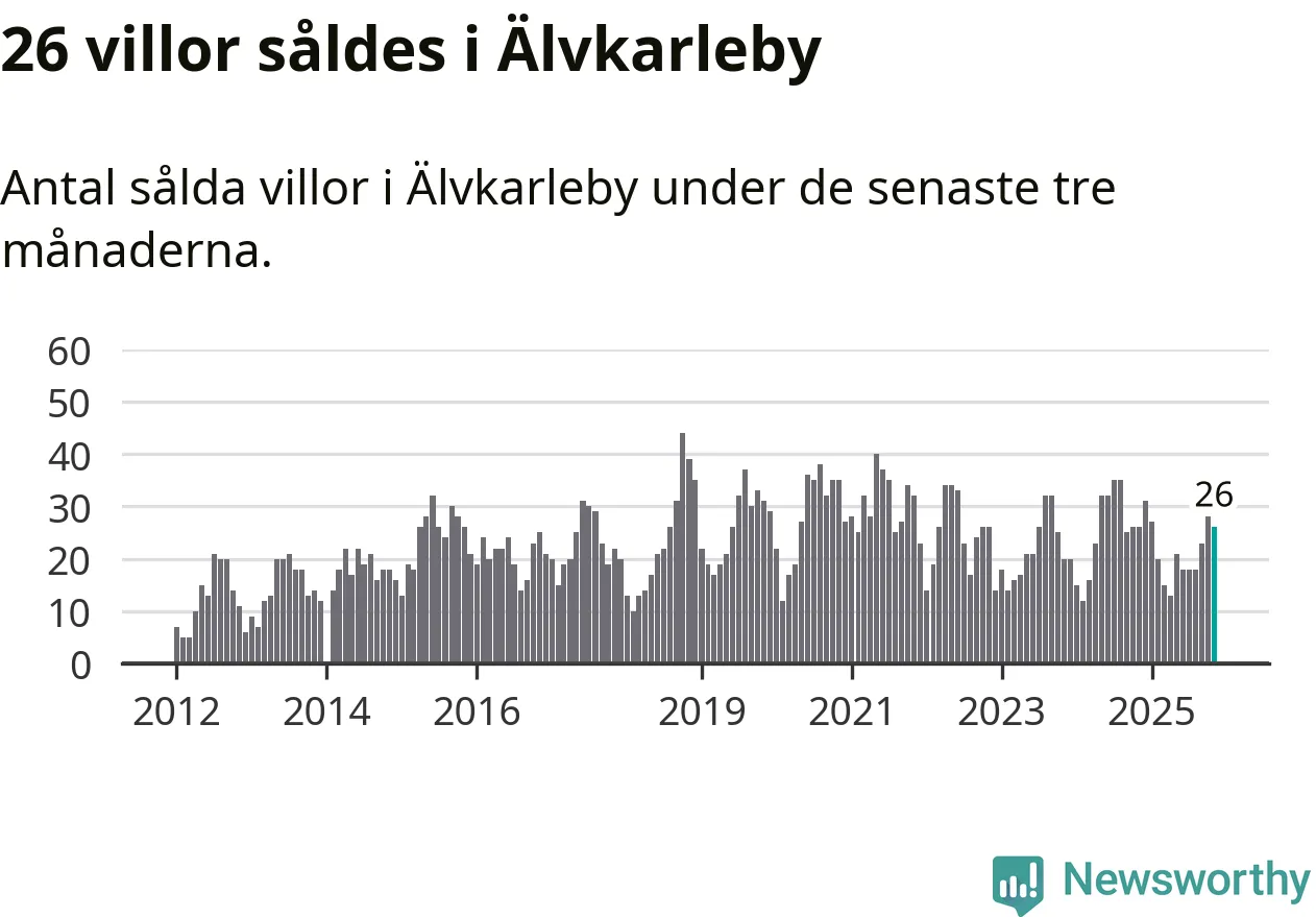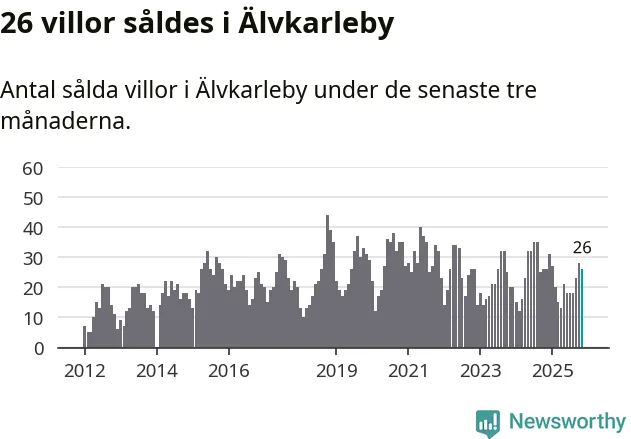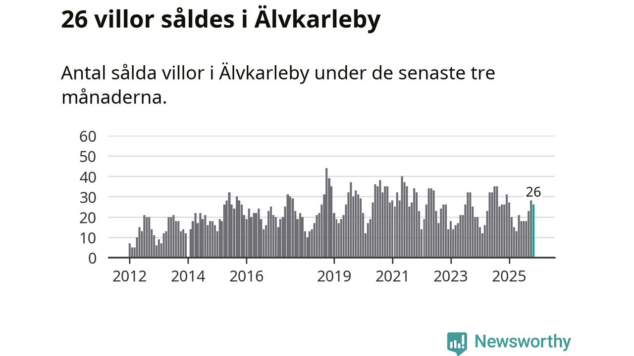 Mellan september och november gjordes sammanlagt 26 affärer med villor i Älvkarleby kommun. Det är lika många affärer som vid motsvarande tid i fjol.