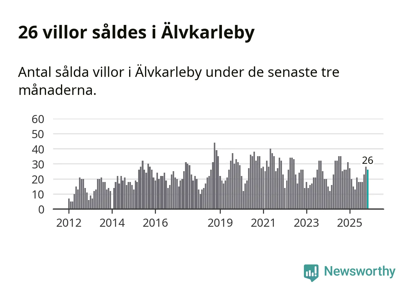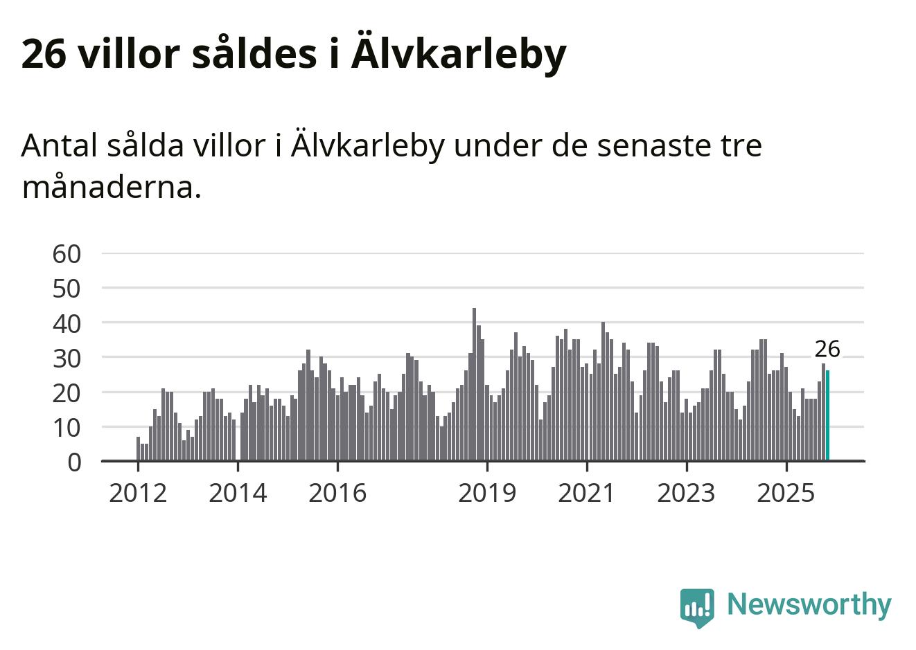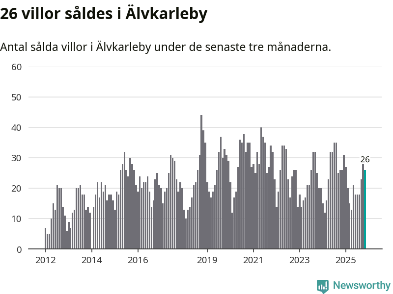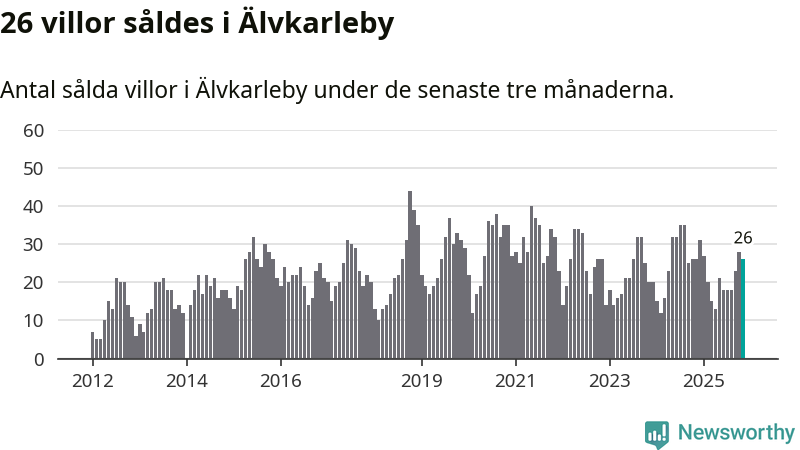 Mellan september och november gjordes sammanlagt 26 affärer med villor i Älvkarleby kommun. Det är lika många affärer som vid motsvarande tid i fjol.