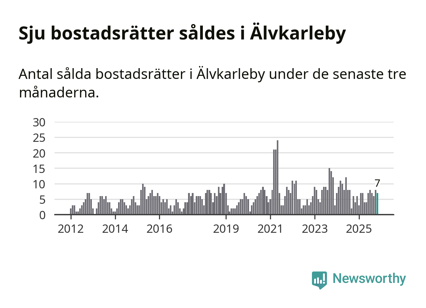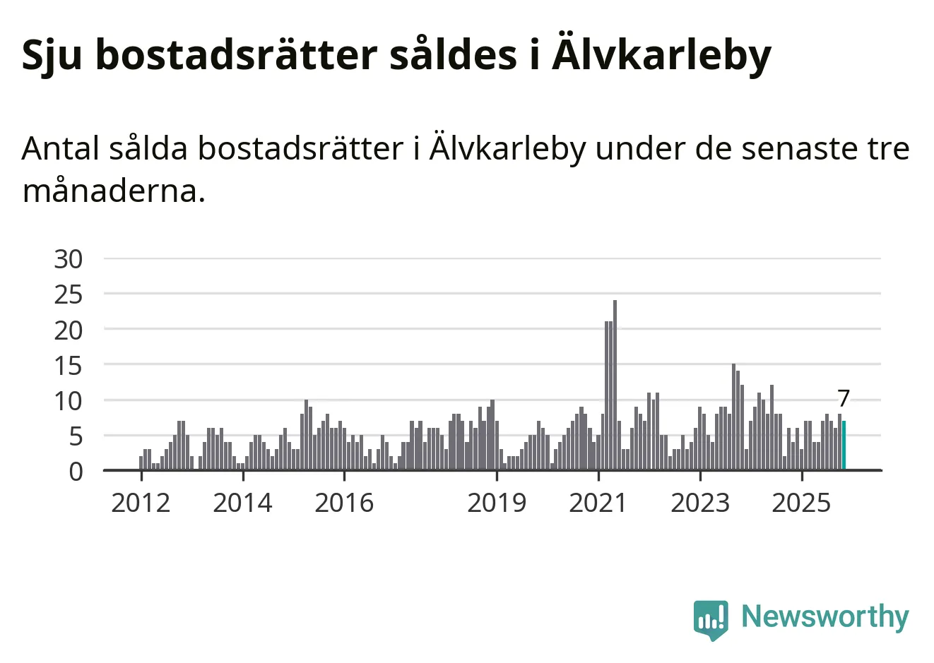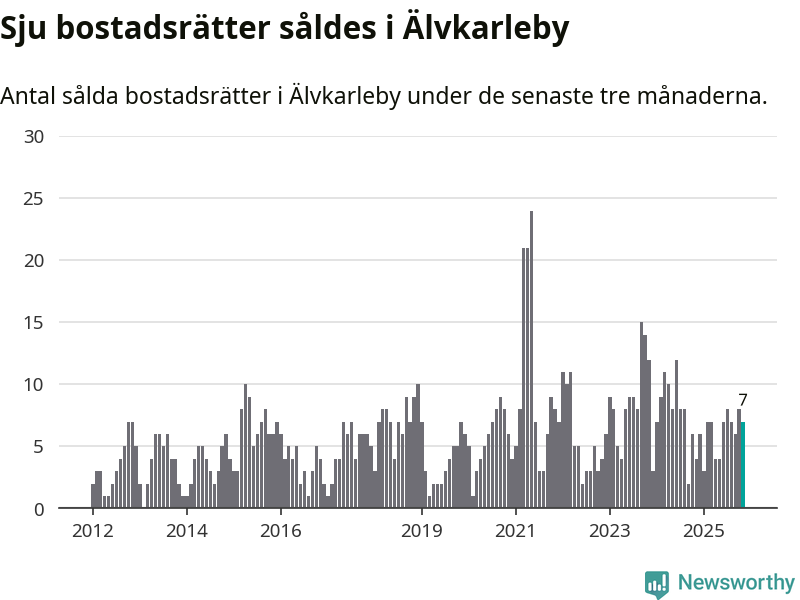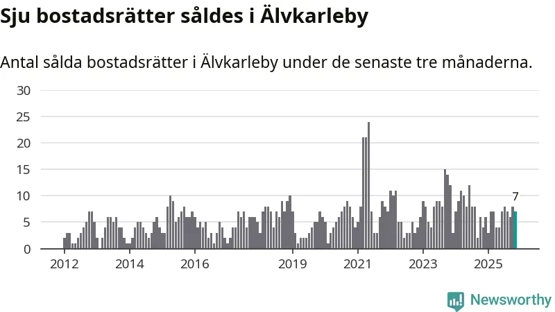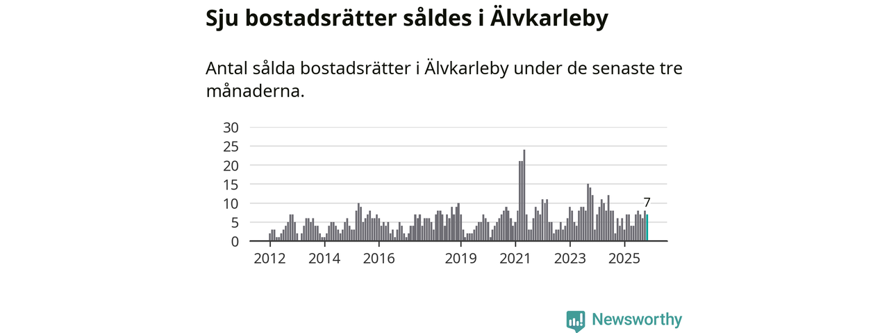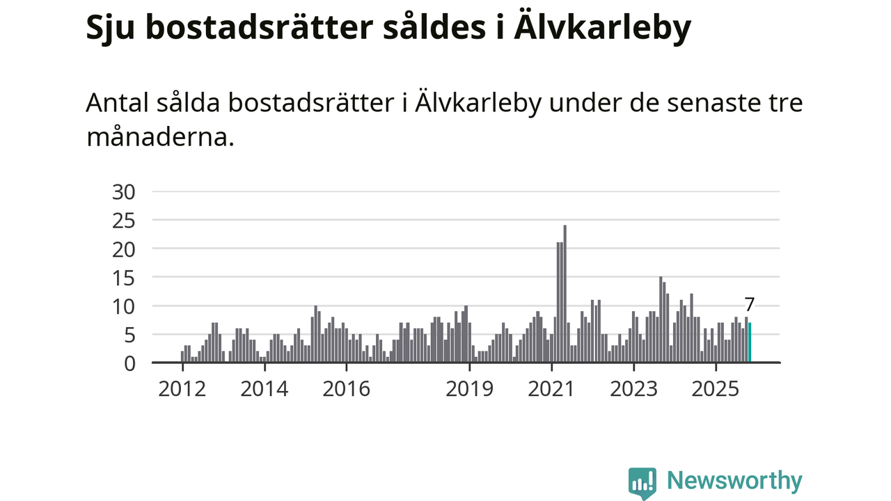 Mellan september och november gjordes sammanlagt sju affärer med bostadsrätter i Älvkarleby kommun. Det kan jämföras med fyra vid motsvarande tid i fjol.