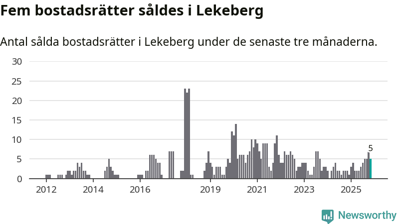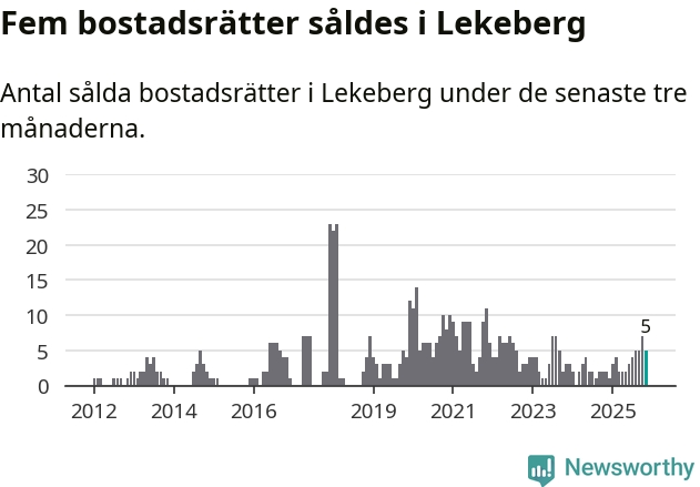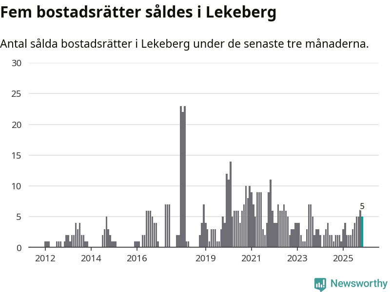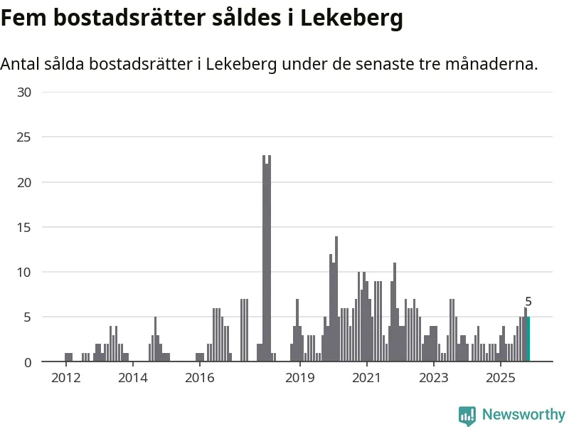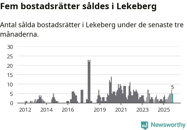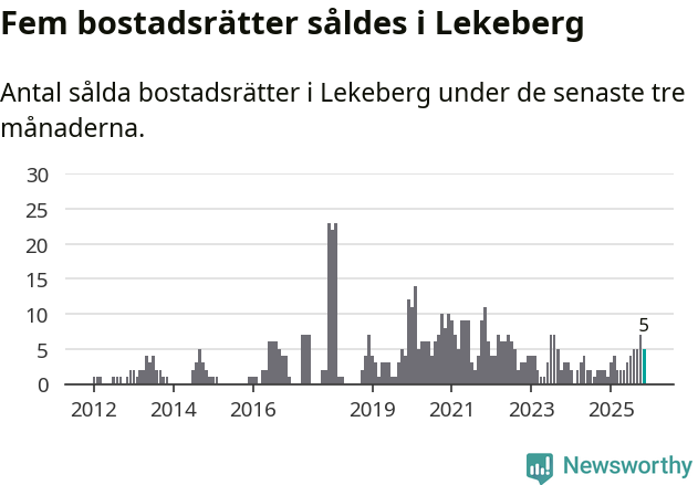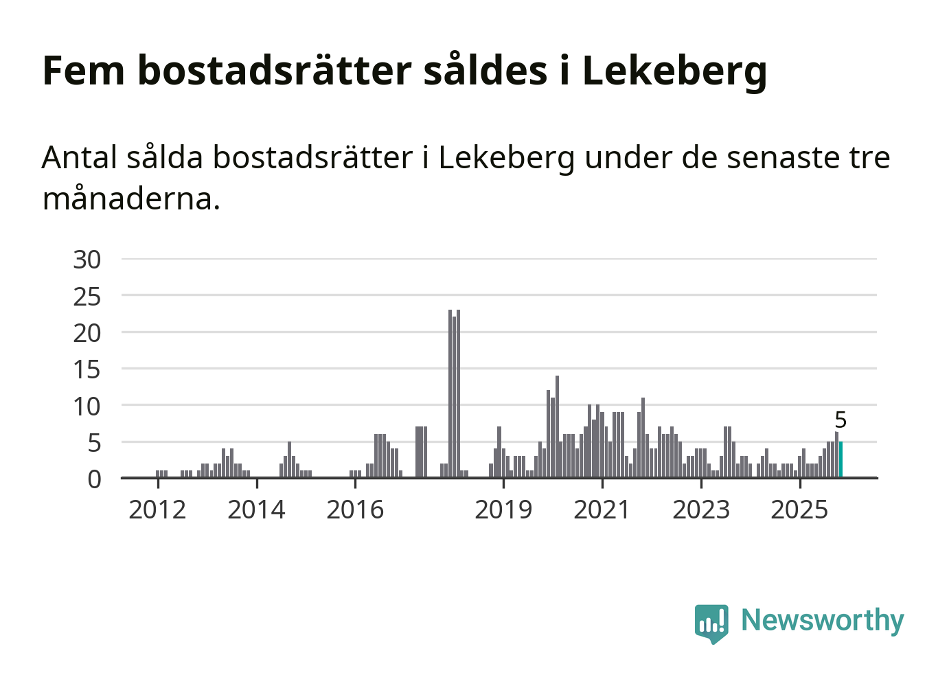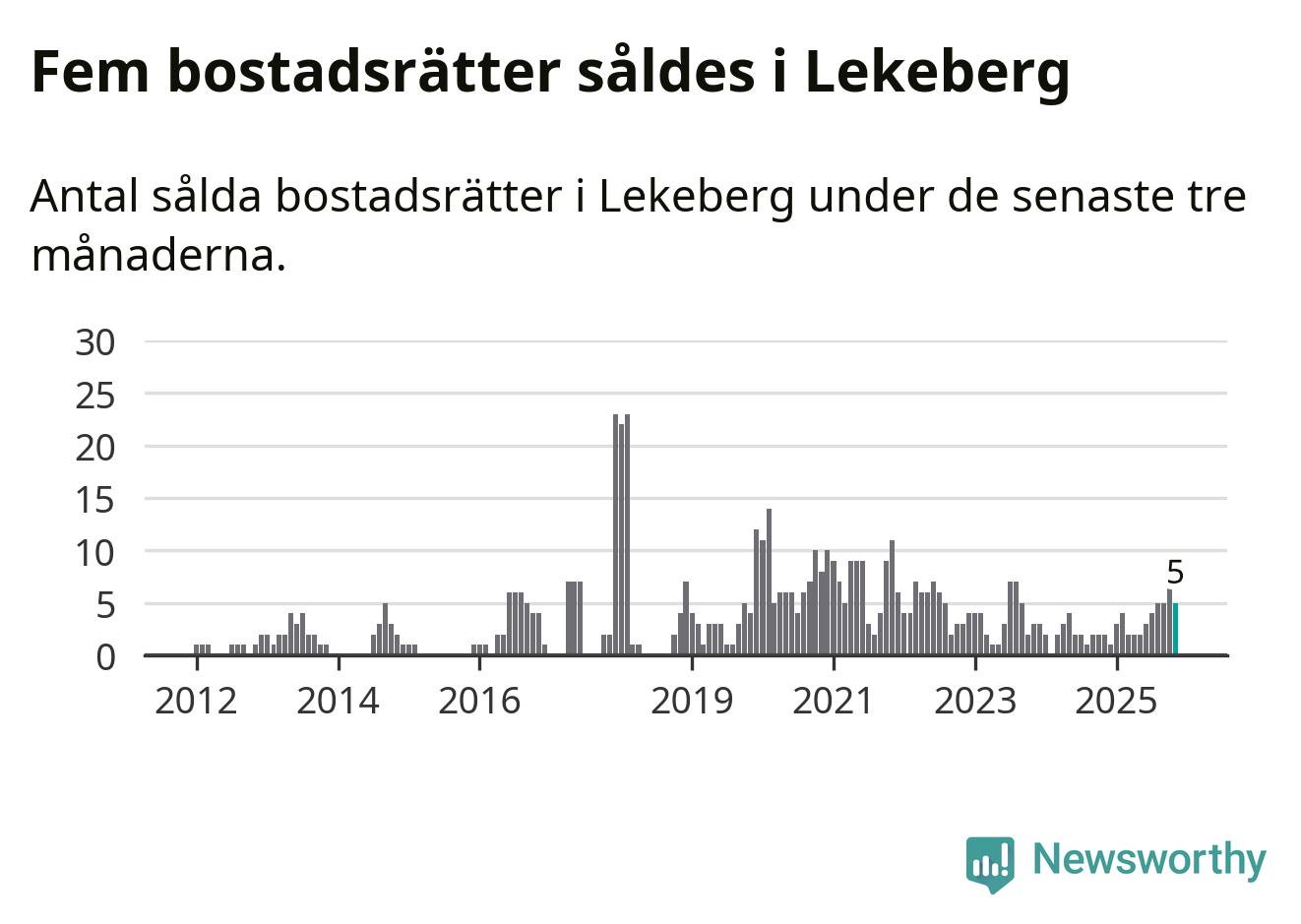 Mellan september och november gjordes sammanlagt fem affärer med bostadsrätter i Lekebergs kommun. Det kan jämföras med två vid motsvarande tid i fjol.