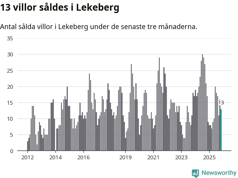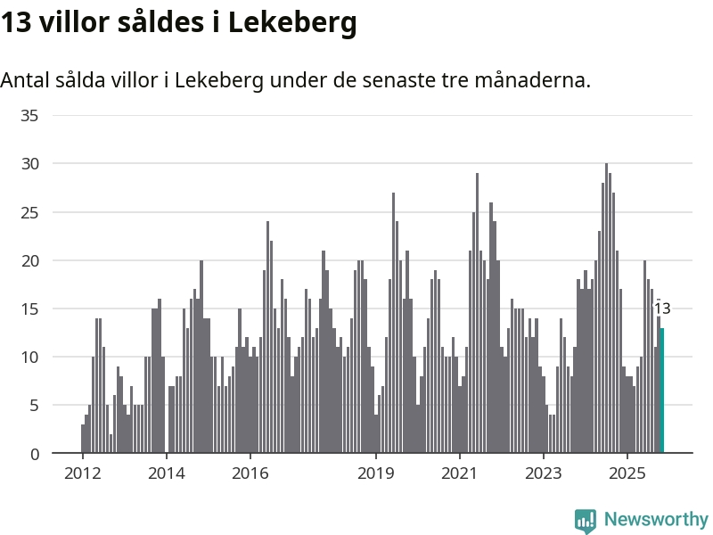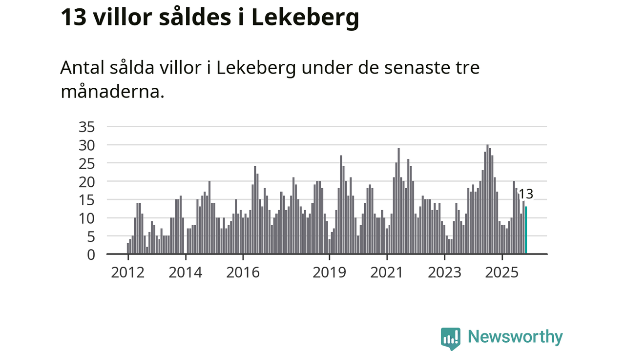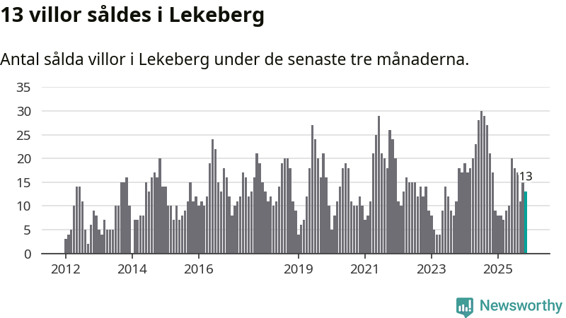 Mellan september och november gjordes sammanlagt 13 affärer med villor i Lekebergs kommun. Det kan jämföras med 17 vid motsvarande tid i fjol.