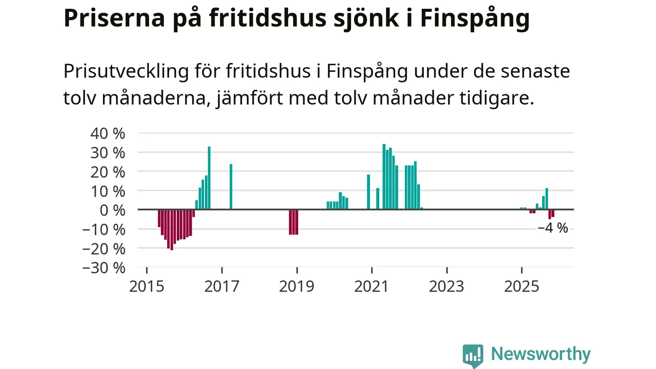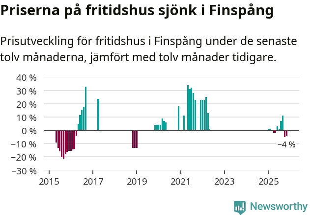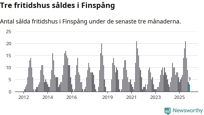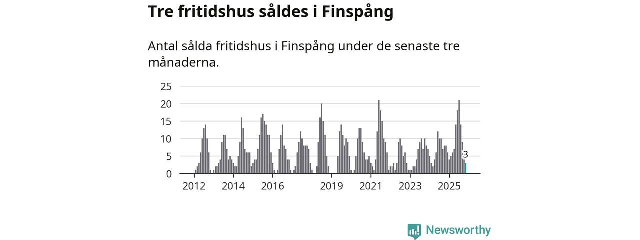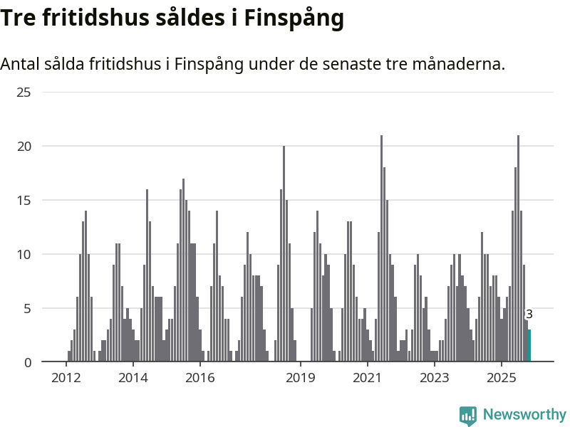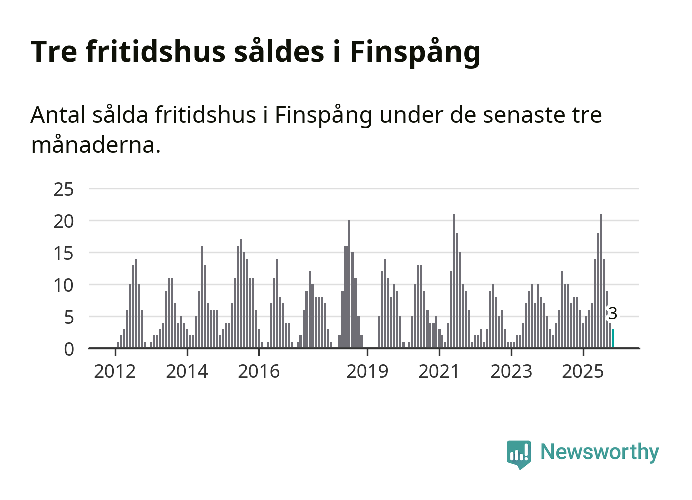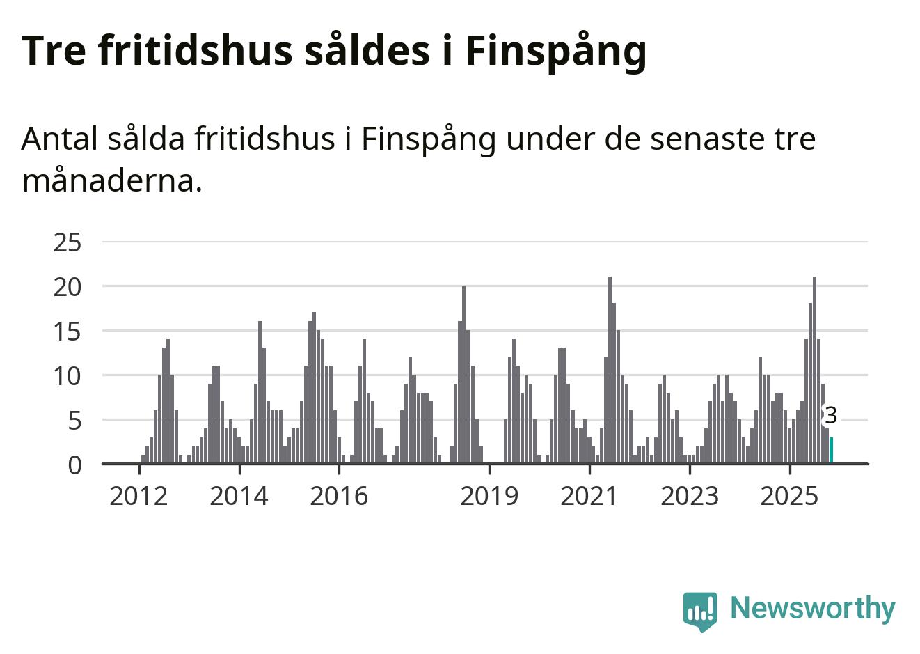Mellan september och november gjordes sammanlagt tre affärer med fritidshus i Finspångs kommun. Det kan jämföras med åtta vid motsvarande tid i fjol.