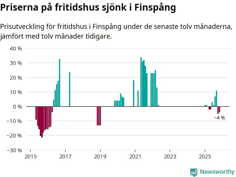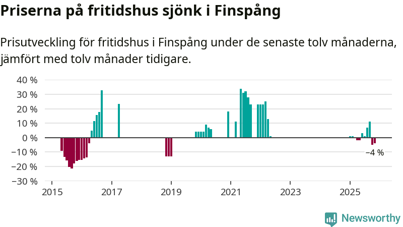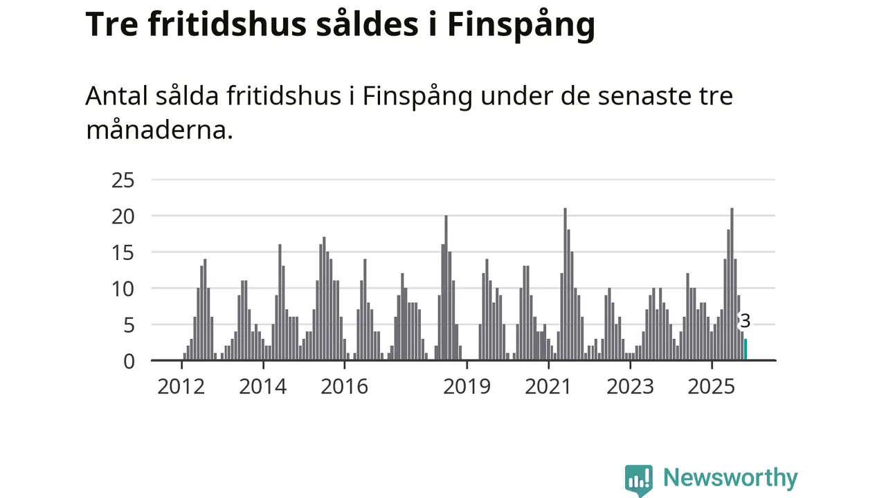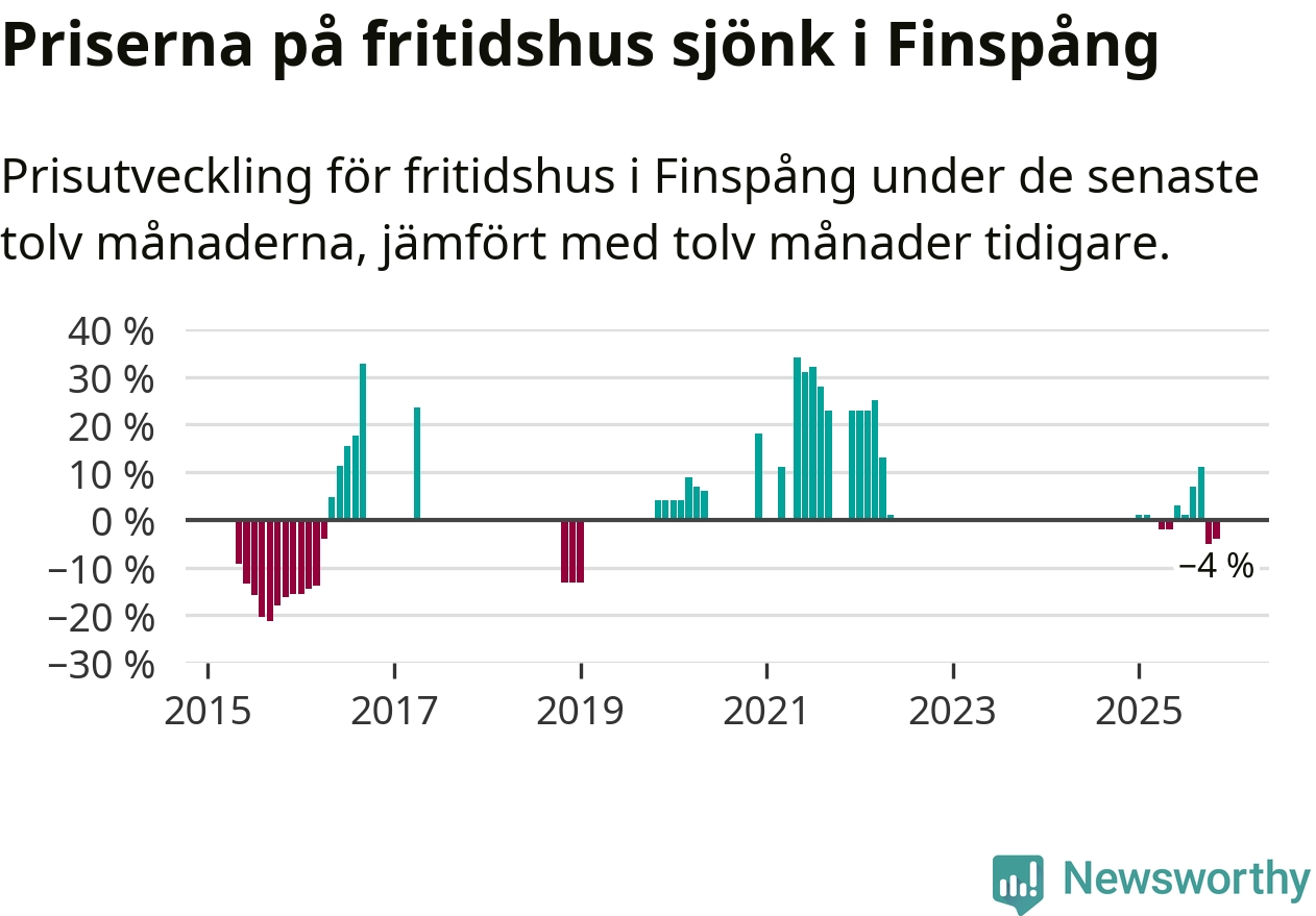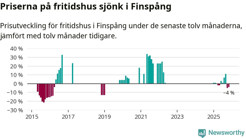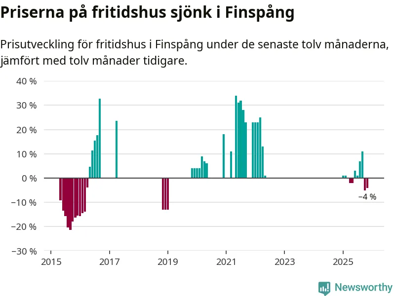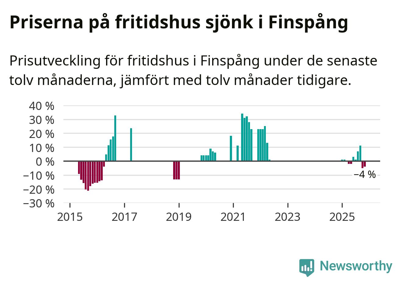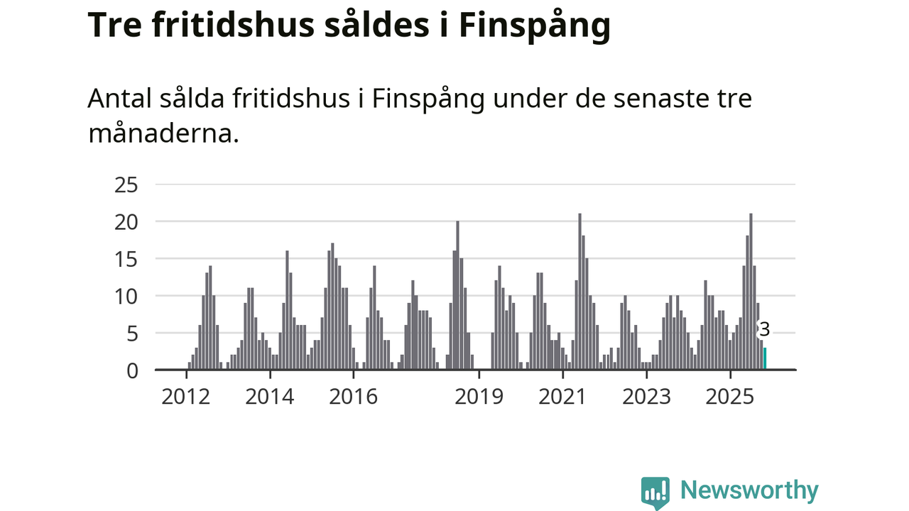 Mellan september och november gjordes sammanlagt tre affärer med fritidshus i Finspångs kommun. Det kan jämföras med åtta vid motsvarande tid i fjol.