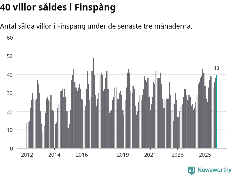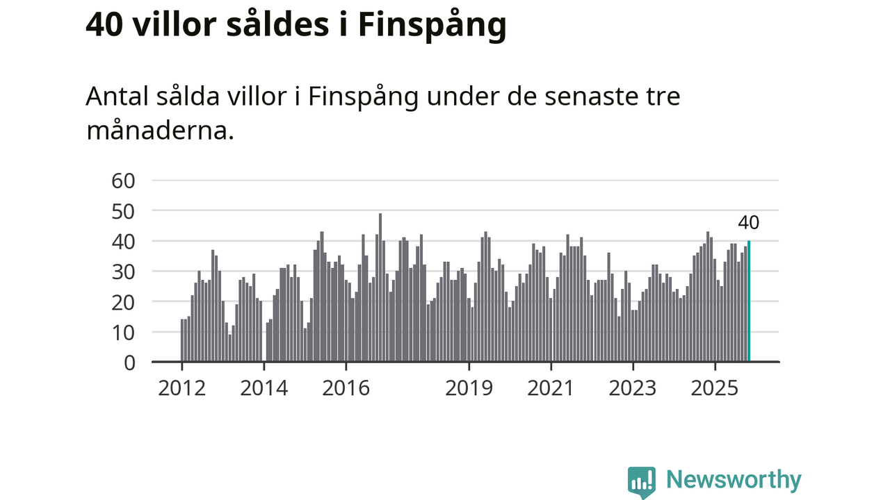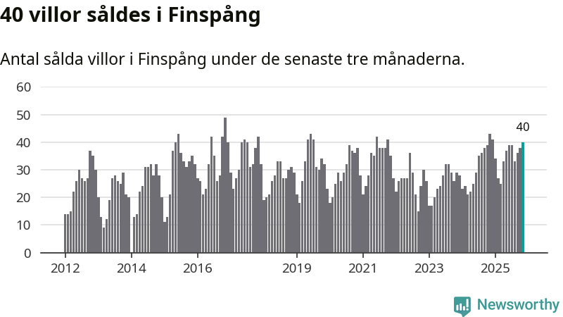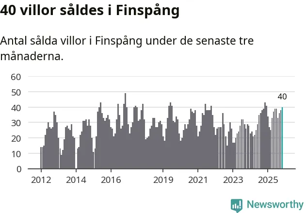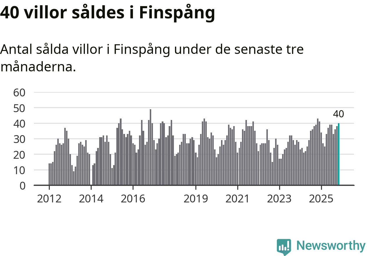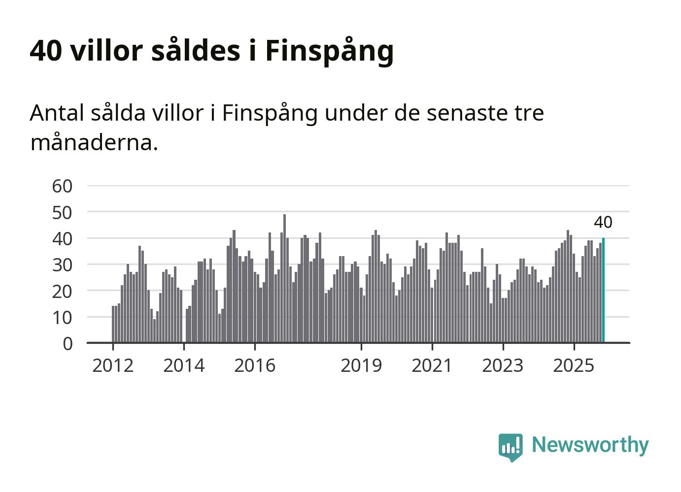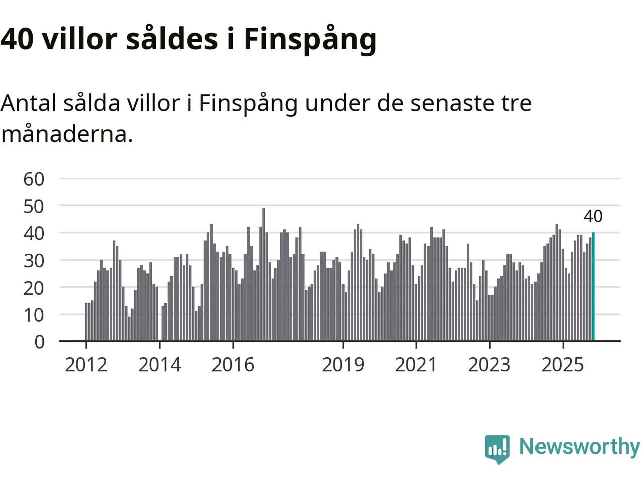 Mellan september och november gjordes sammanlagt 40 affärer med villor i Finspångs kommun. Det kan jämföras med 43 vid motsvarande tid i fjol.