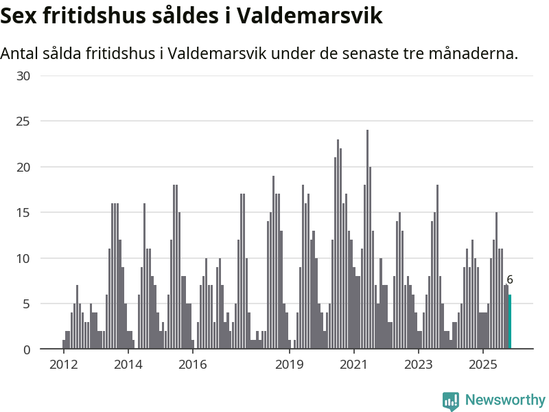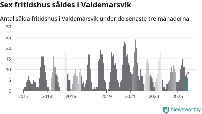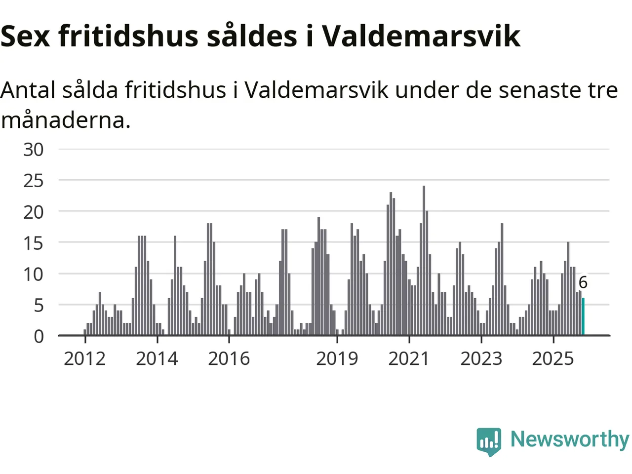 Sammanlagt såldes sex fritidshus i Valdemarsviks kommun mellan september och november till ett genomsnittligt pris på 2,6 miljoner kronor. I fjol gjordes nio affärer vid den här tiden på året.