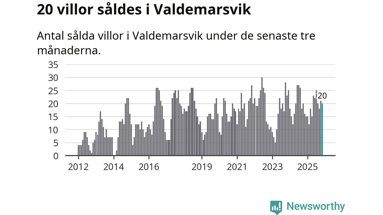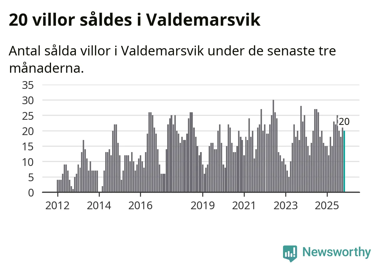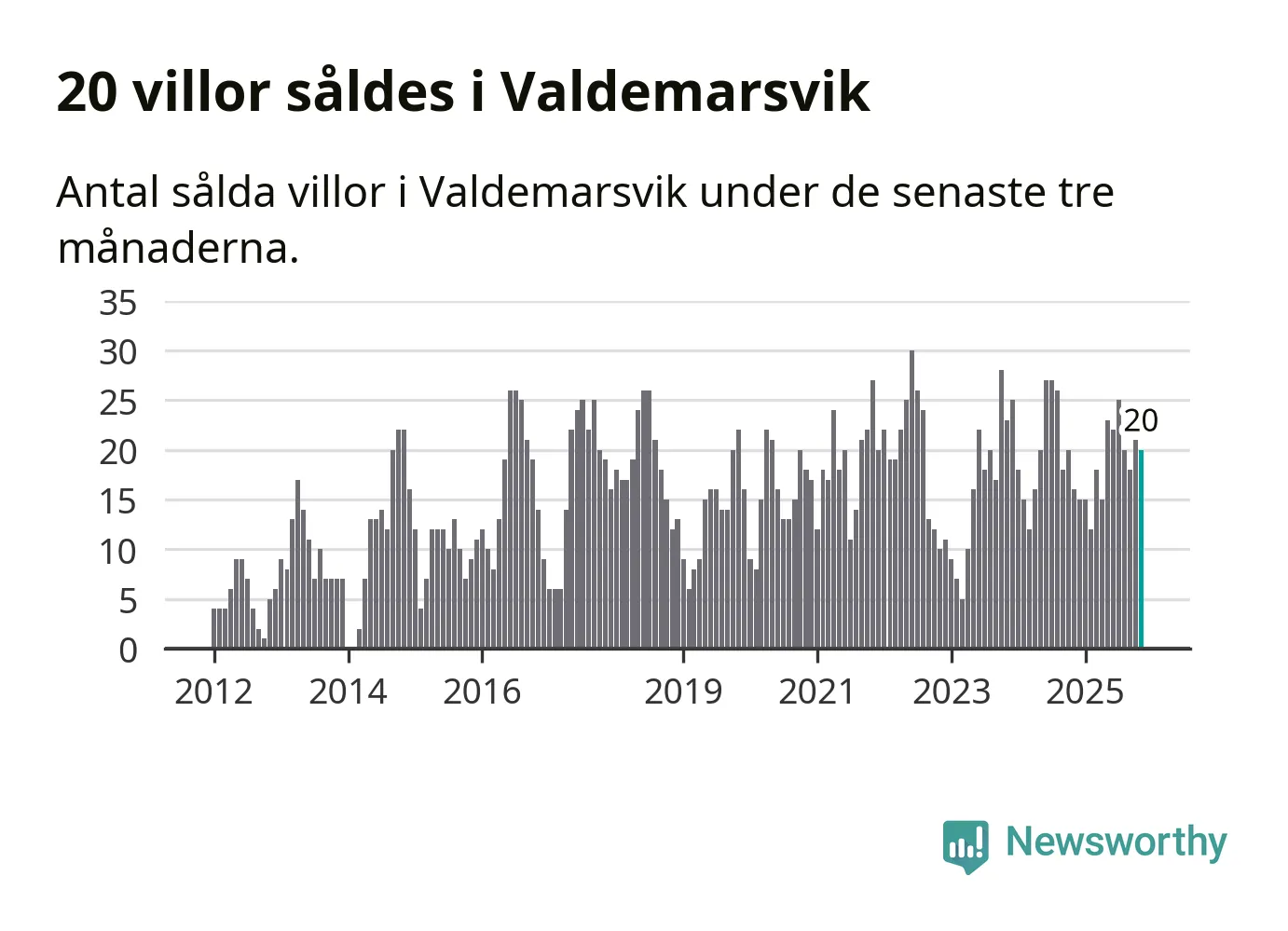 Mellan september och november gjordes sammanlagt 20 affärer med villor i Valdemarsviks kommun. Det kan jämföras med 16 vid motsvarande tid i fjol.