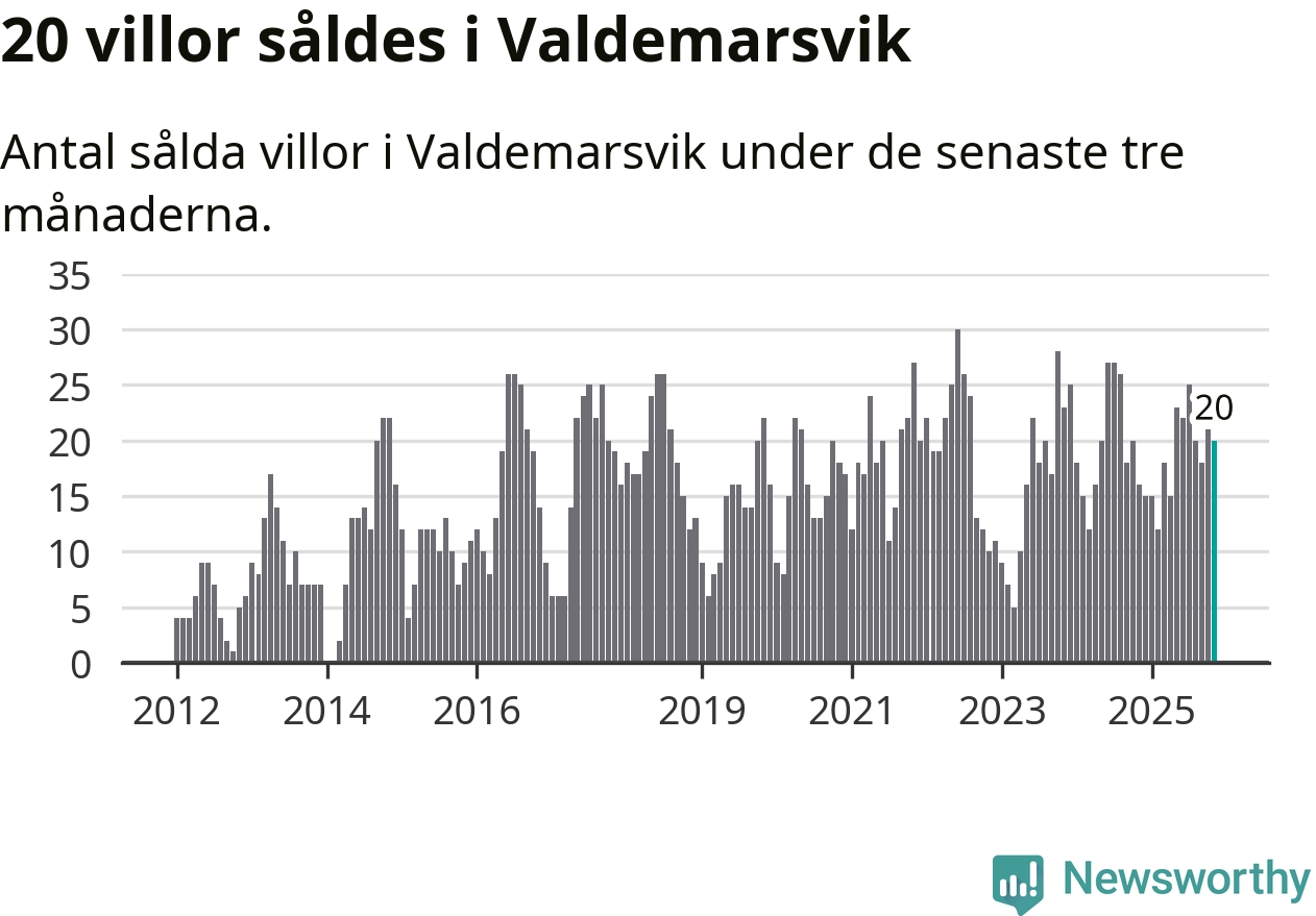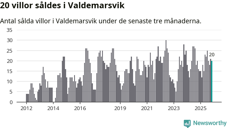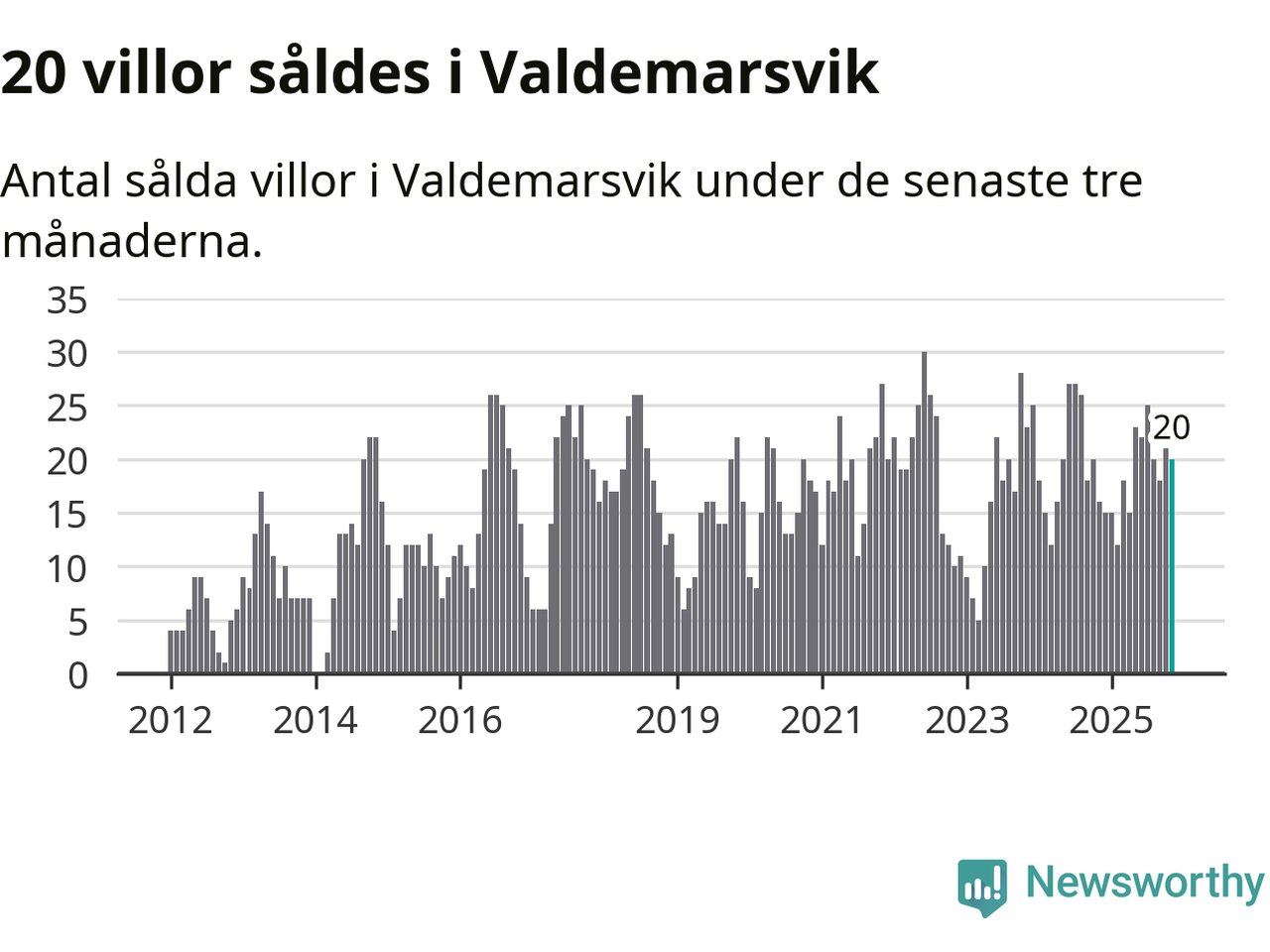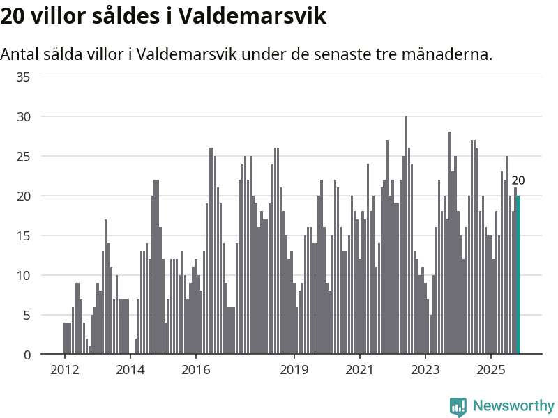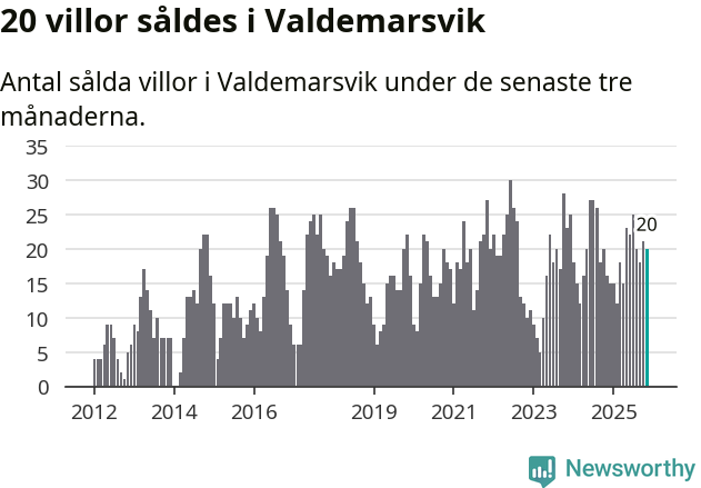 Mellan september och november gjordes sammanlagt 20 affärer med villor i Valdemarsviks kommun. Det kan jämföras med 16 vid motsvarande tid i fjol.