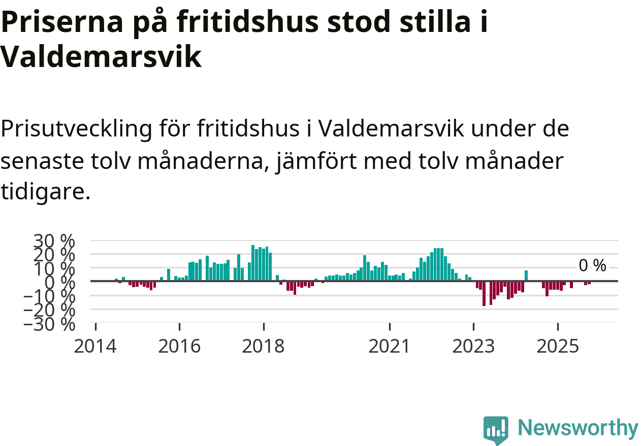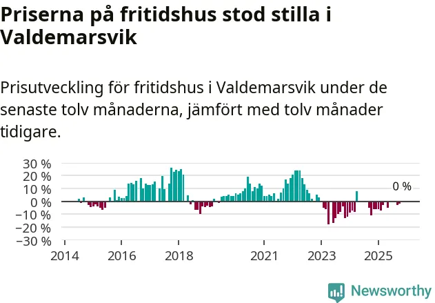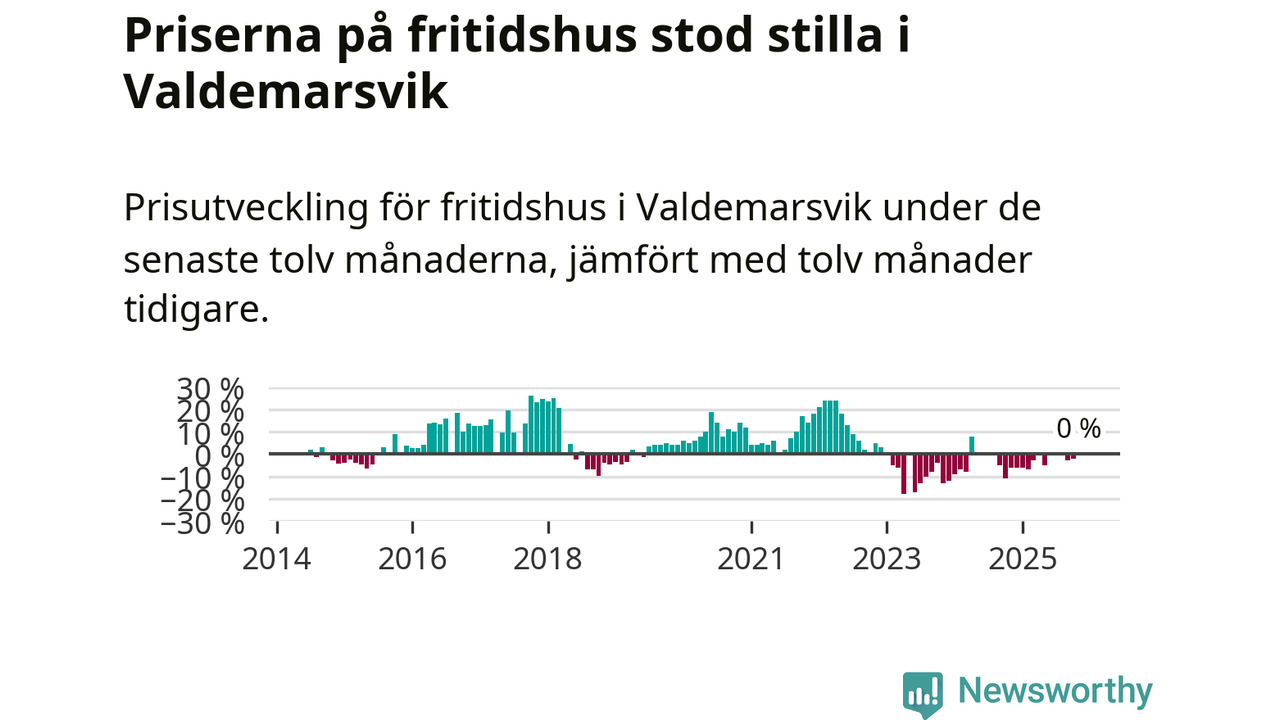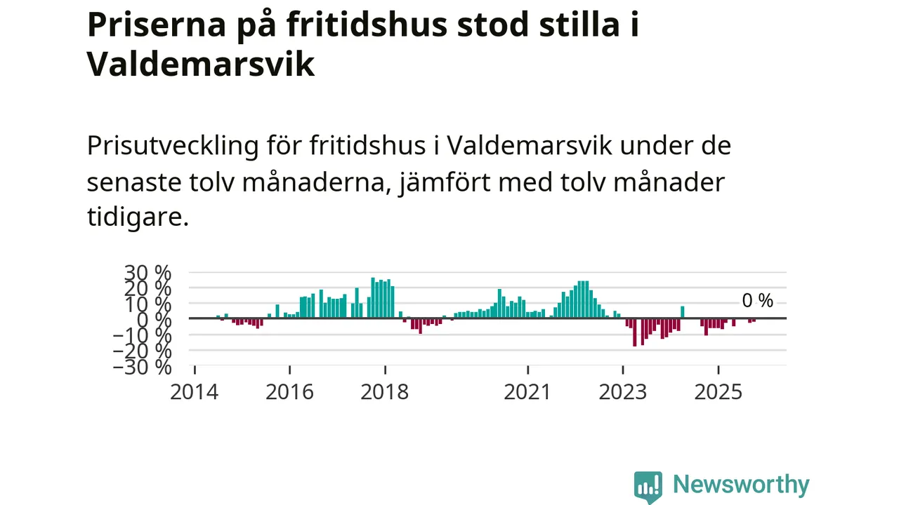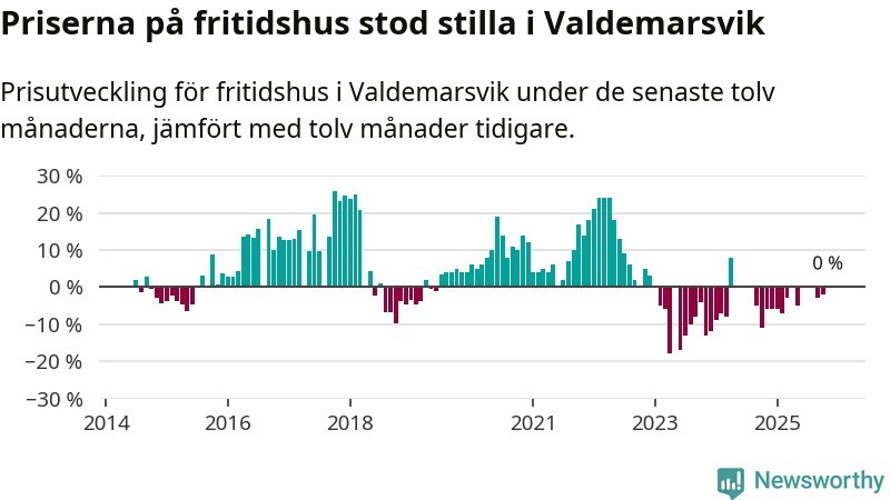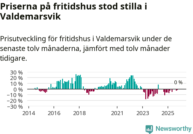 Priserna på fritidshus står i stort sett stilla i Valdemarsviks kommun. Medelpriset på de på försäljningarna under de senaste tolv månaderna låg på samma nivå som för ett år sedan.