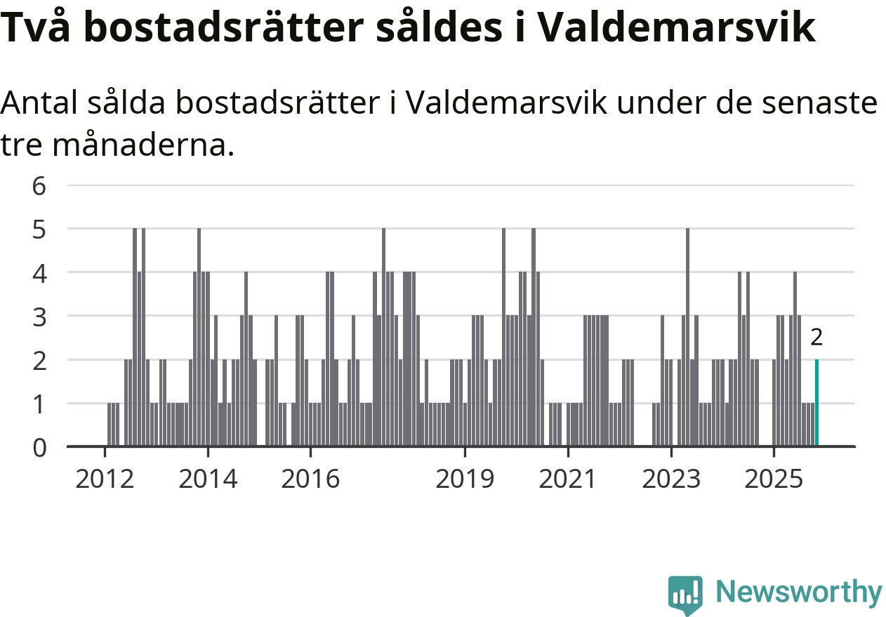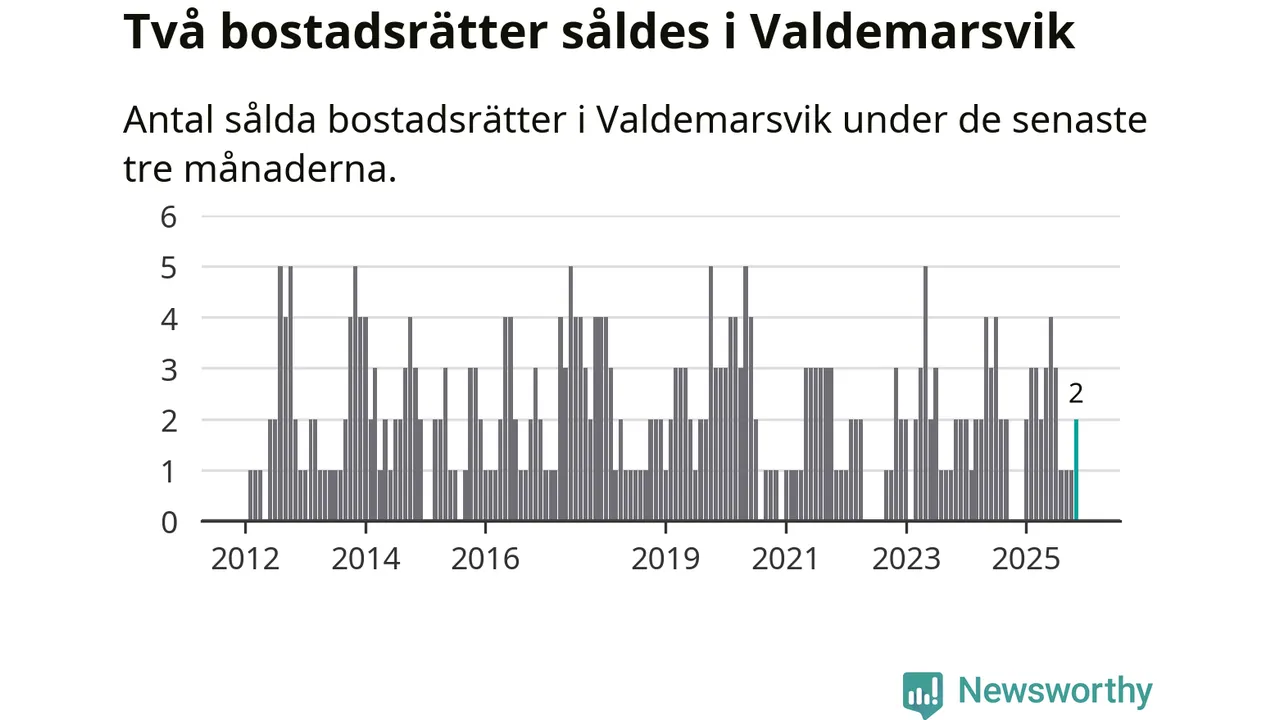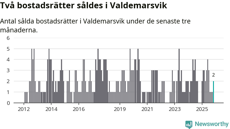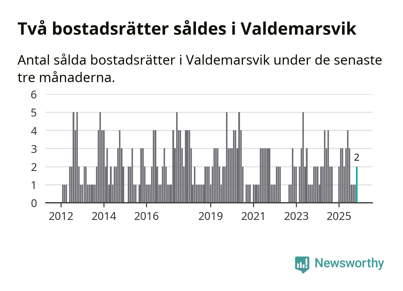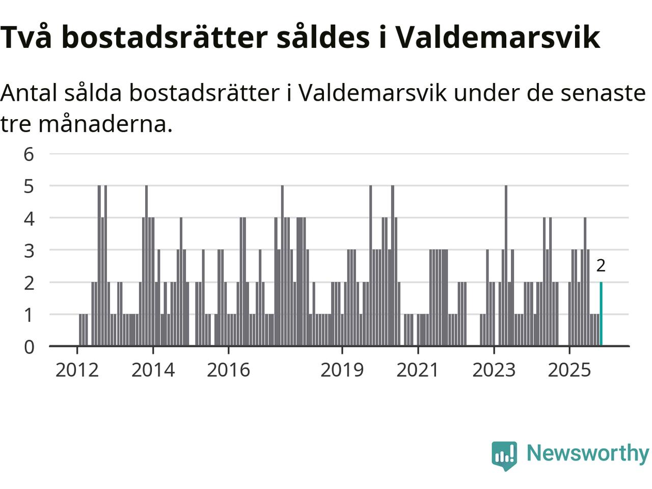 Mellan september och november gjordes sammanlagt två affärer med bostadsrätter i Valdemarsviks kommun.