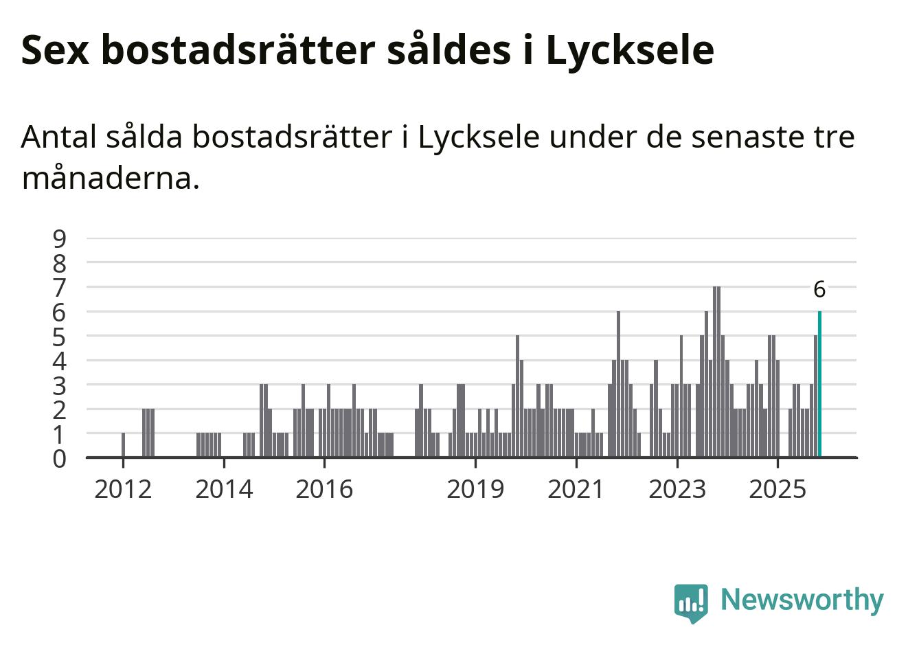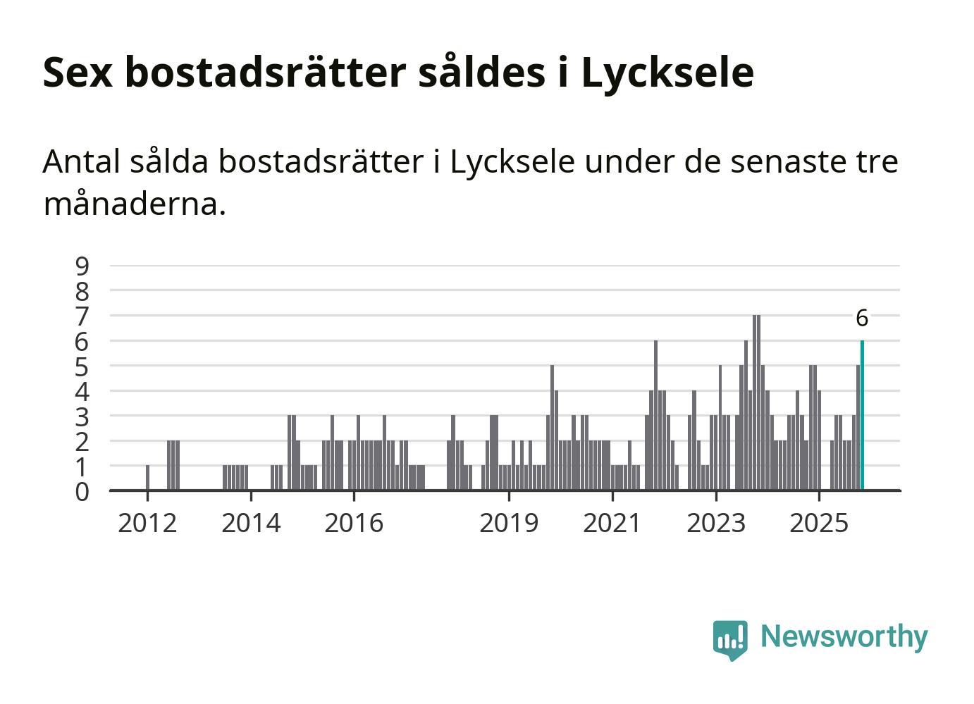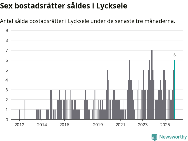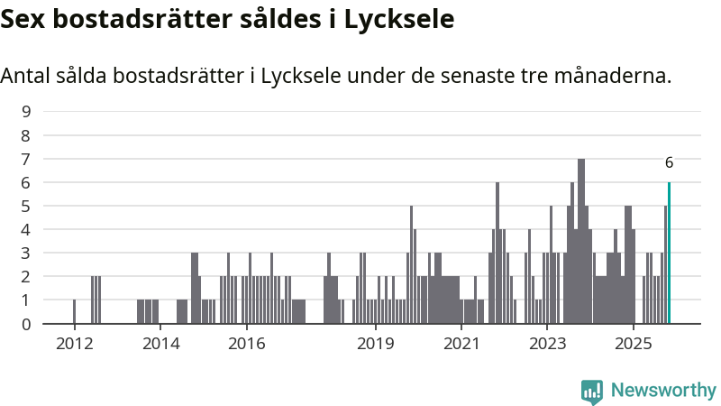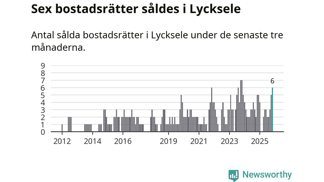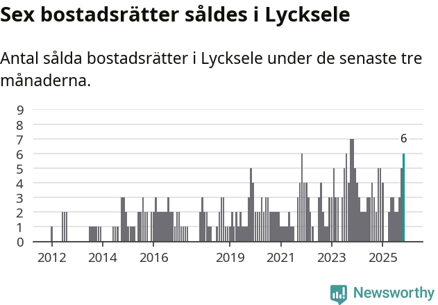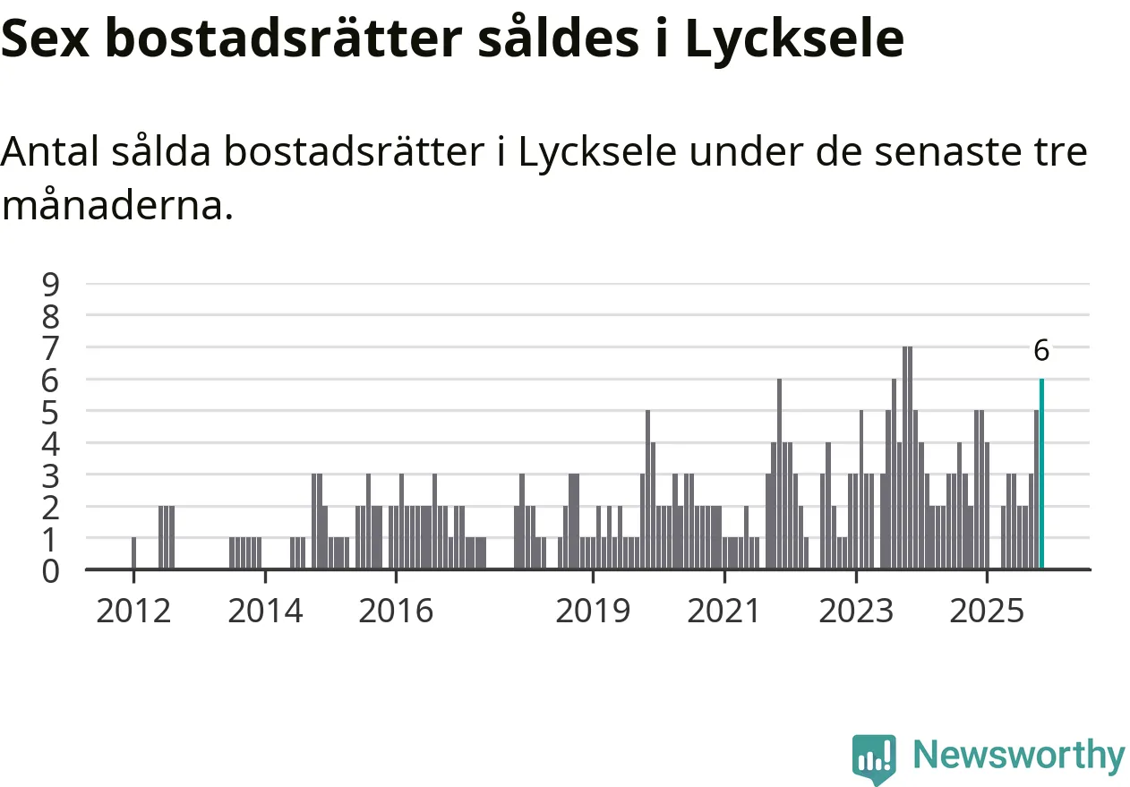 Mellan september och november gjordes sammanlagt sex affärer med bostadsrätter i Lycksele kommun. Det kan jämföras med fem vid motsvarande tid i fjol.