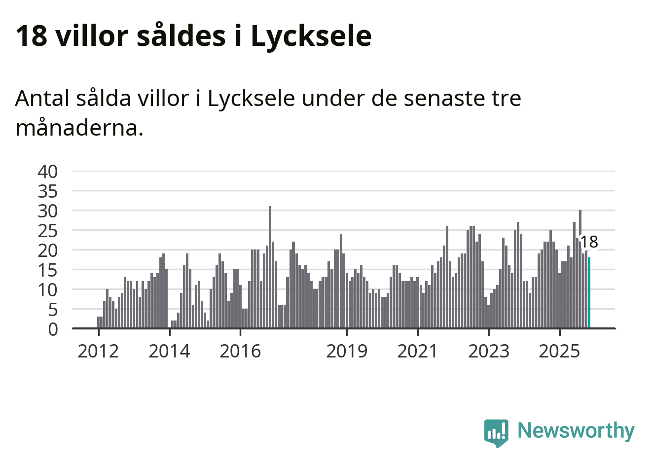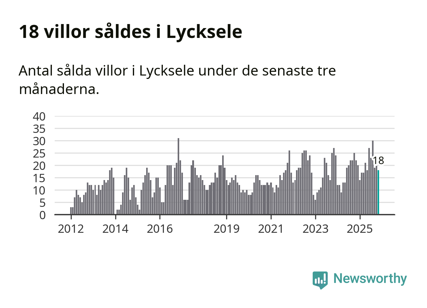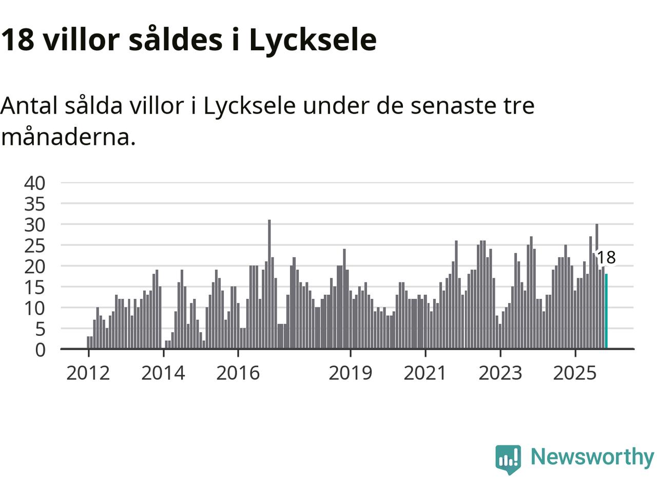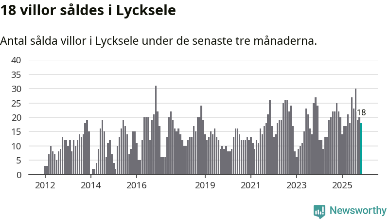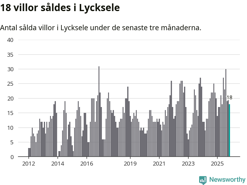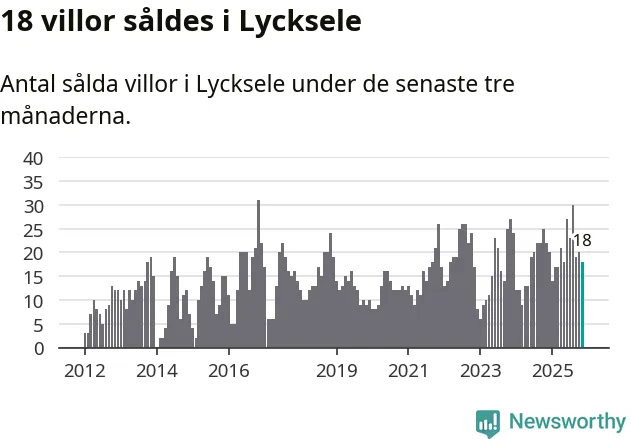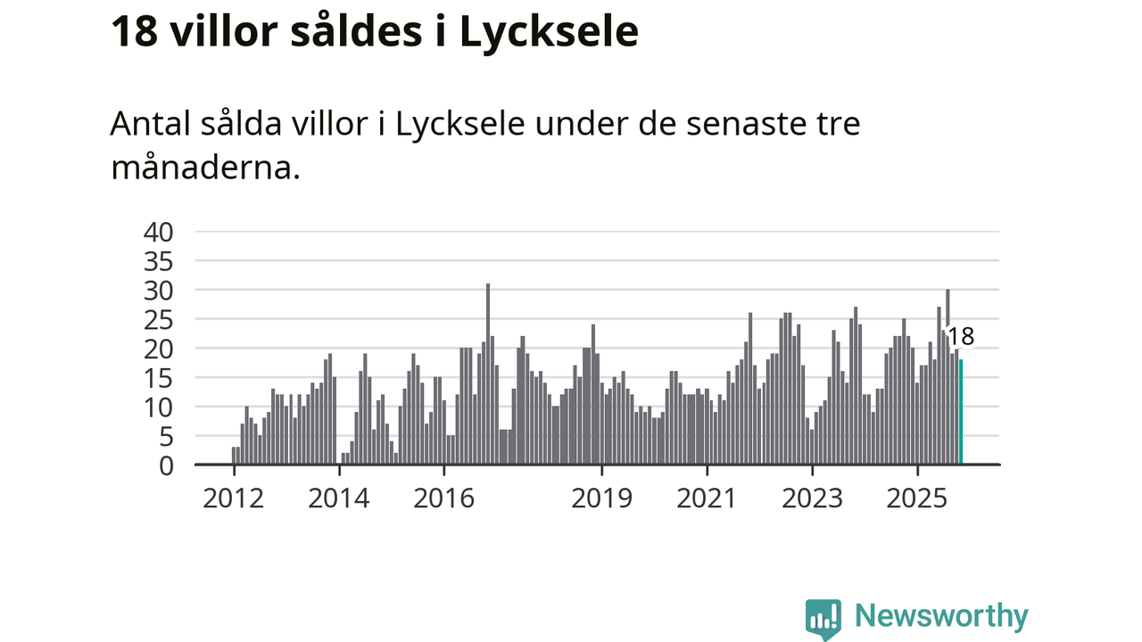 Mellan september och november gjordes sammanlagt 18 affärer med villor i Lycksele kommun. Det kan jämföras med 22 vid motsvarande tid i fjol.