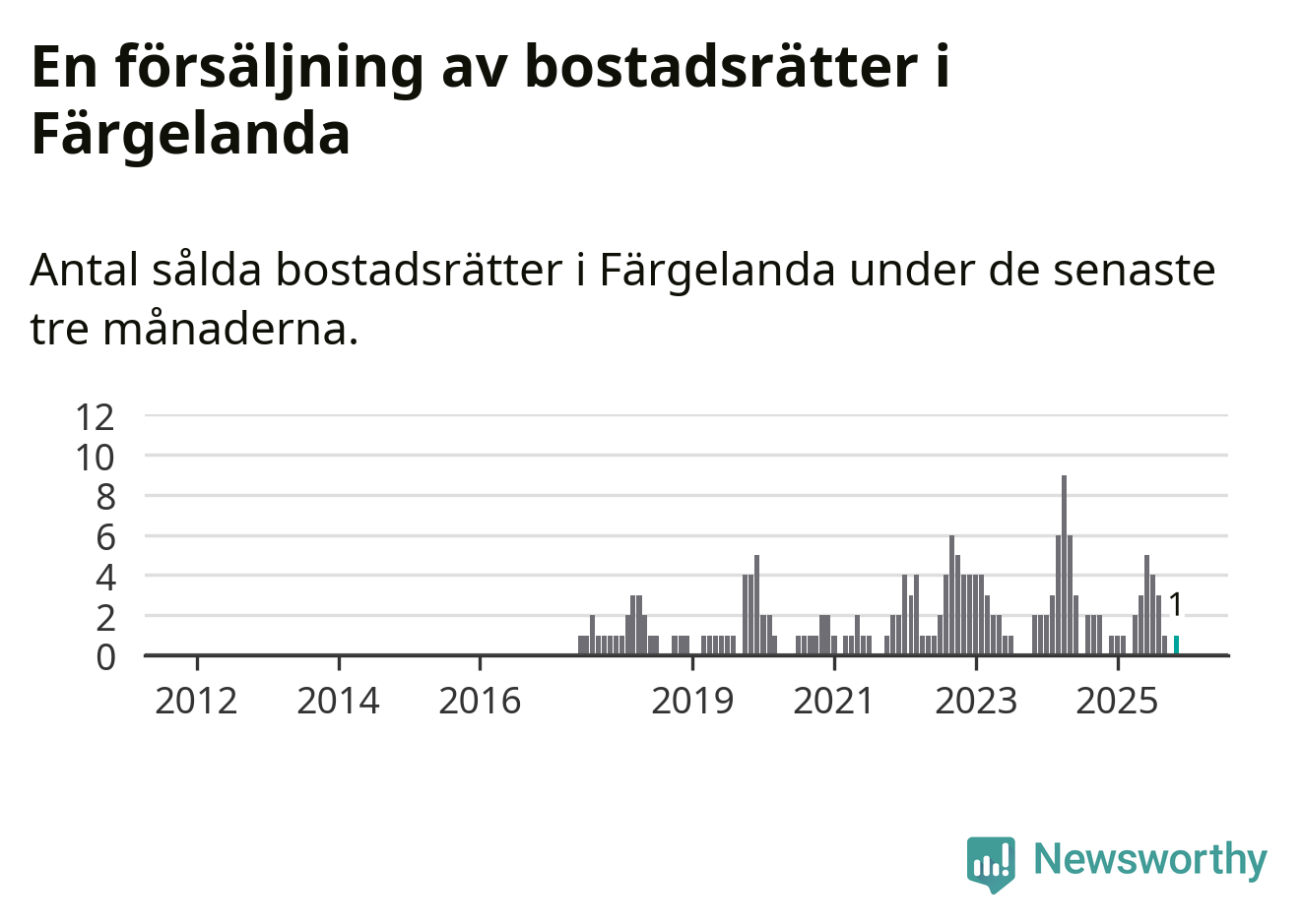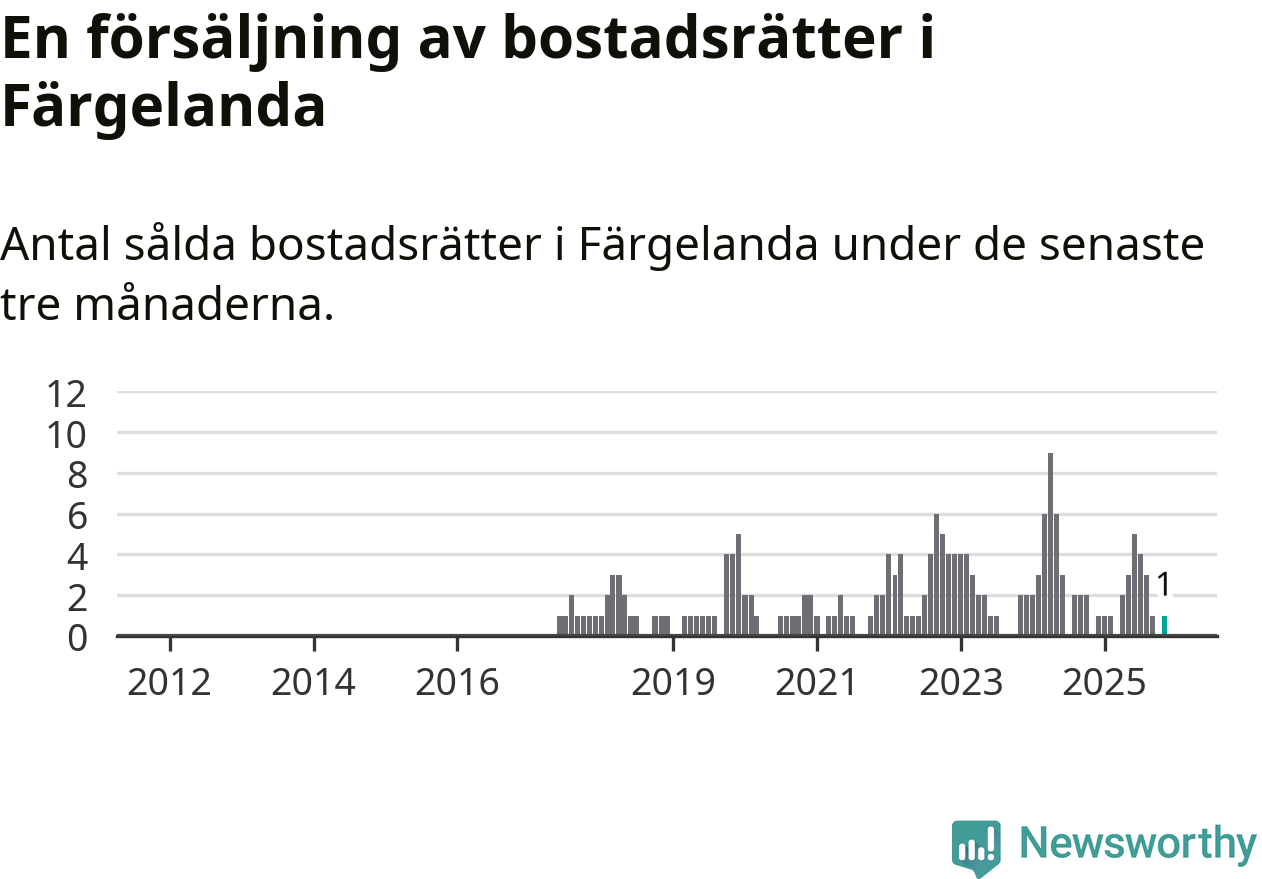 Mellan september och november gjordes sammanlagt en affär med bostadsrätter i Färgelanda kommun.