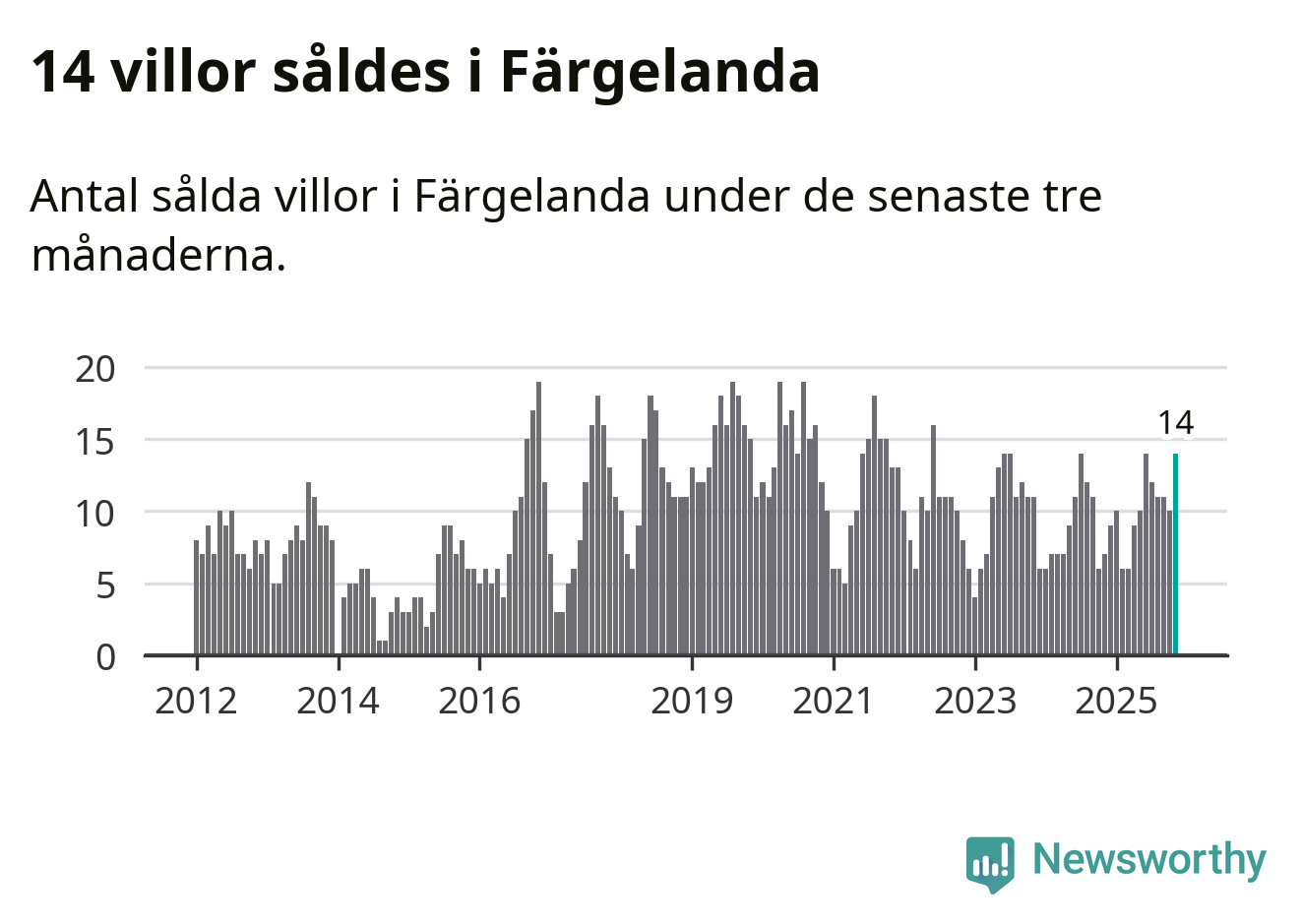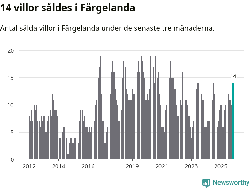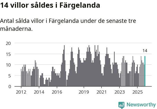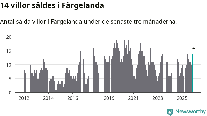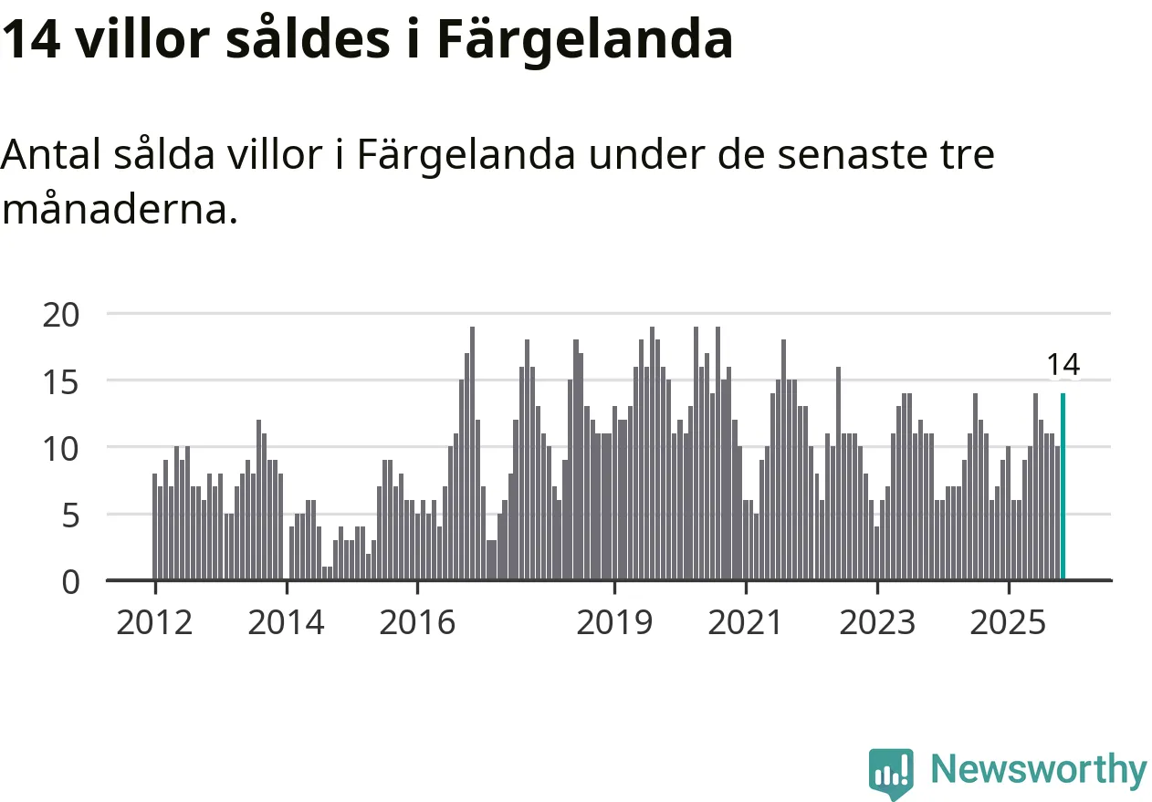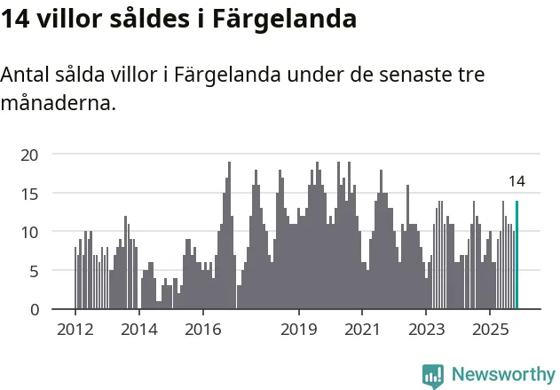 Mellan september och november gjordes sammanlagt 14 affärer med villor i Färgelanda kommun. Det kan jämföras med sju vid motsvarande tid i fjol.