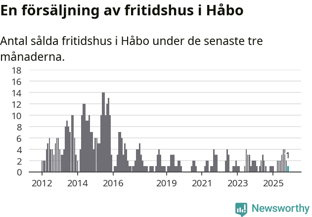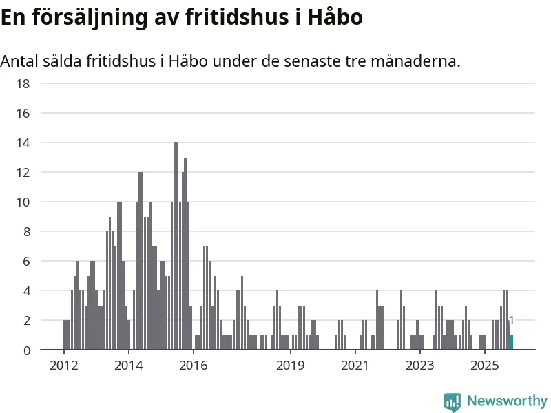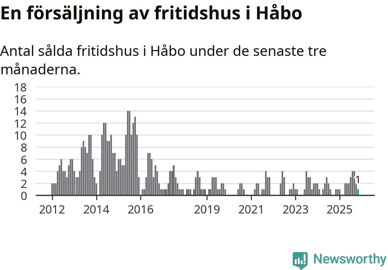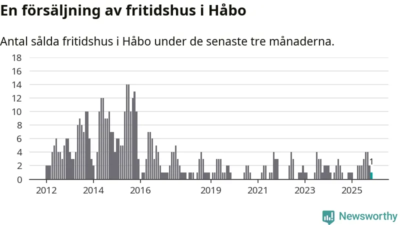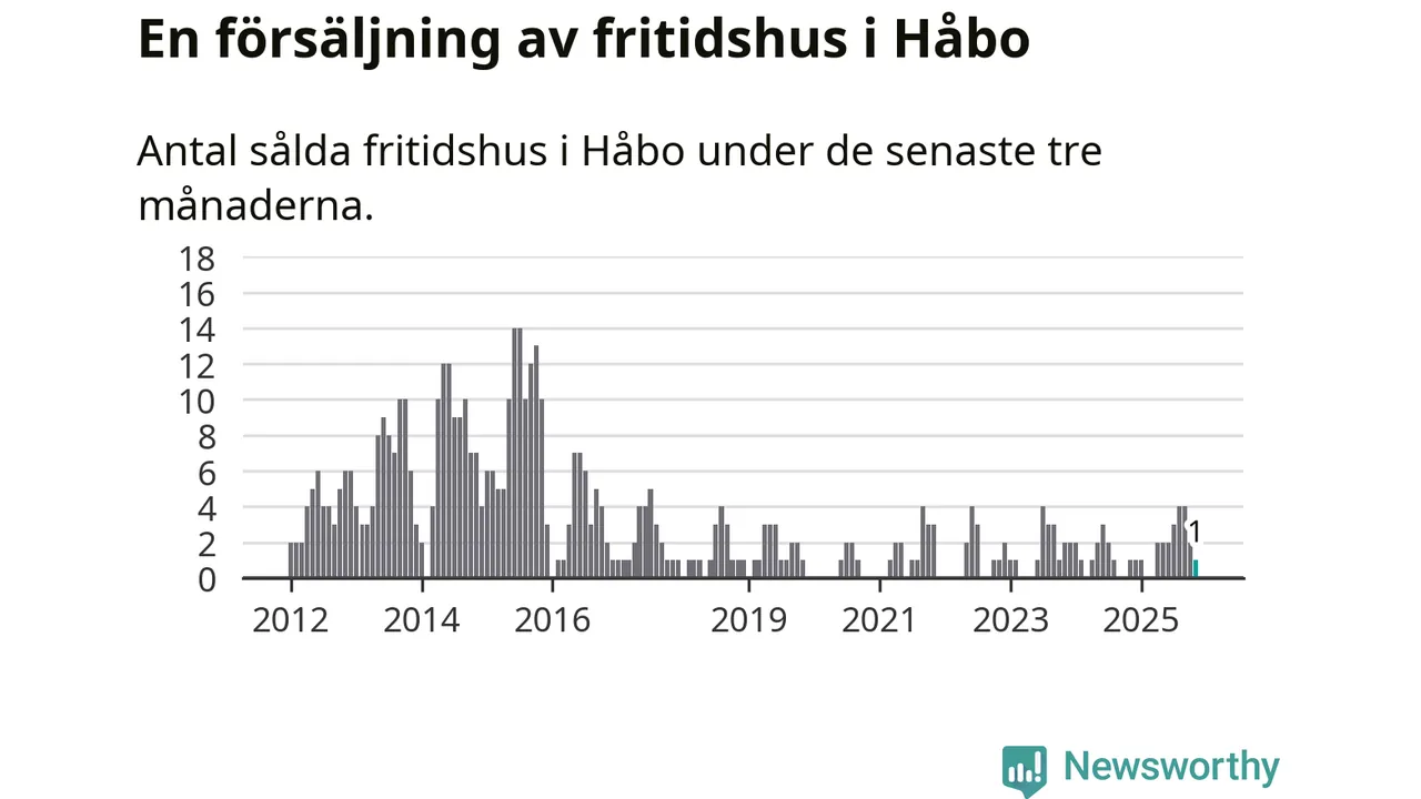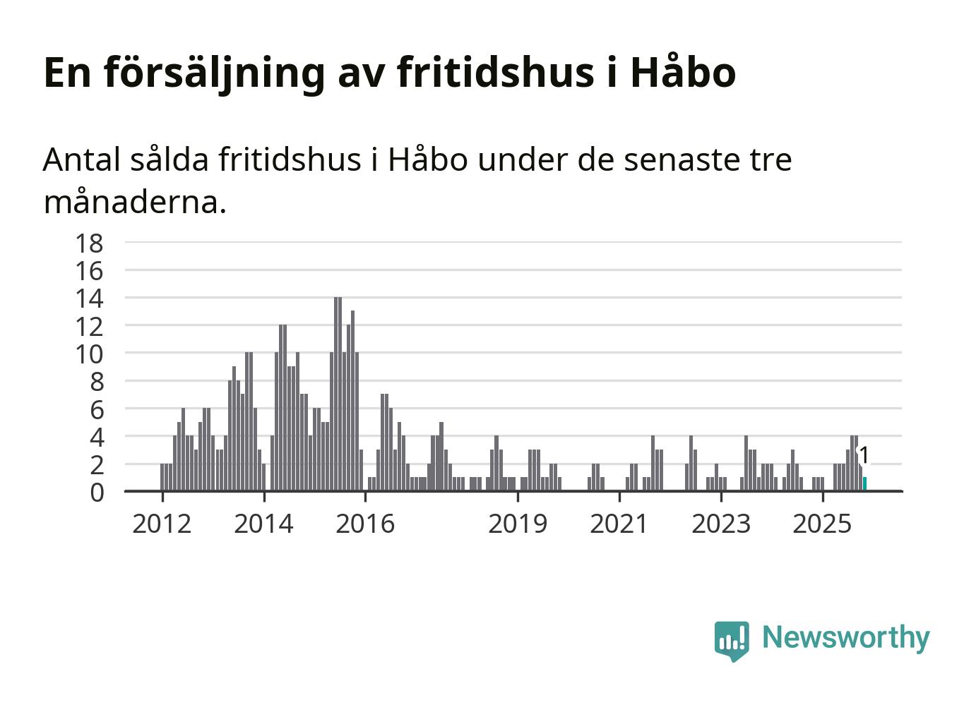 Mellan september och november gjordes sammanlagt en affär med fritidshus i Håbo kommun. Det är lika många affärer som vid motsvarande tid i fjol.
