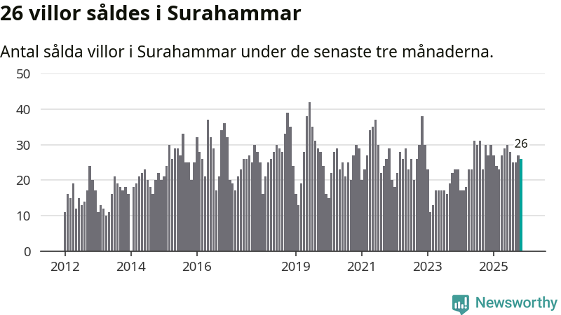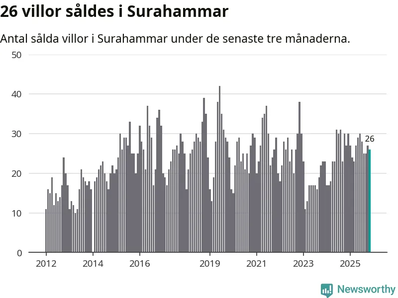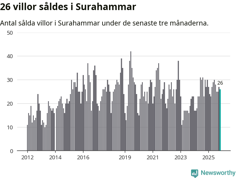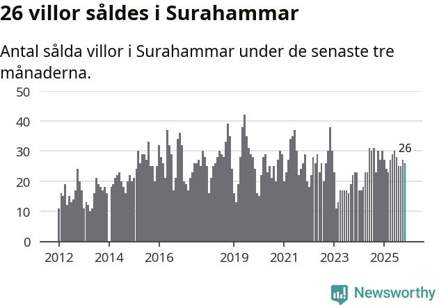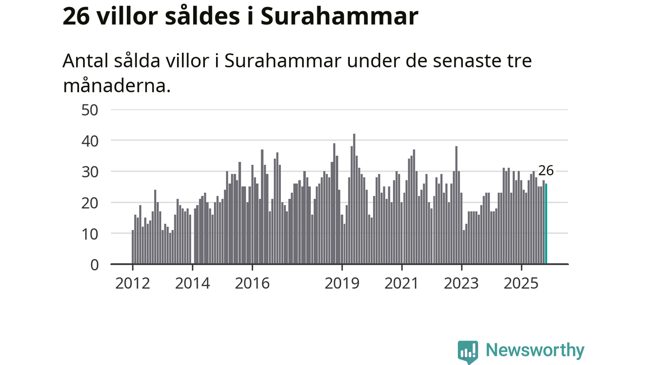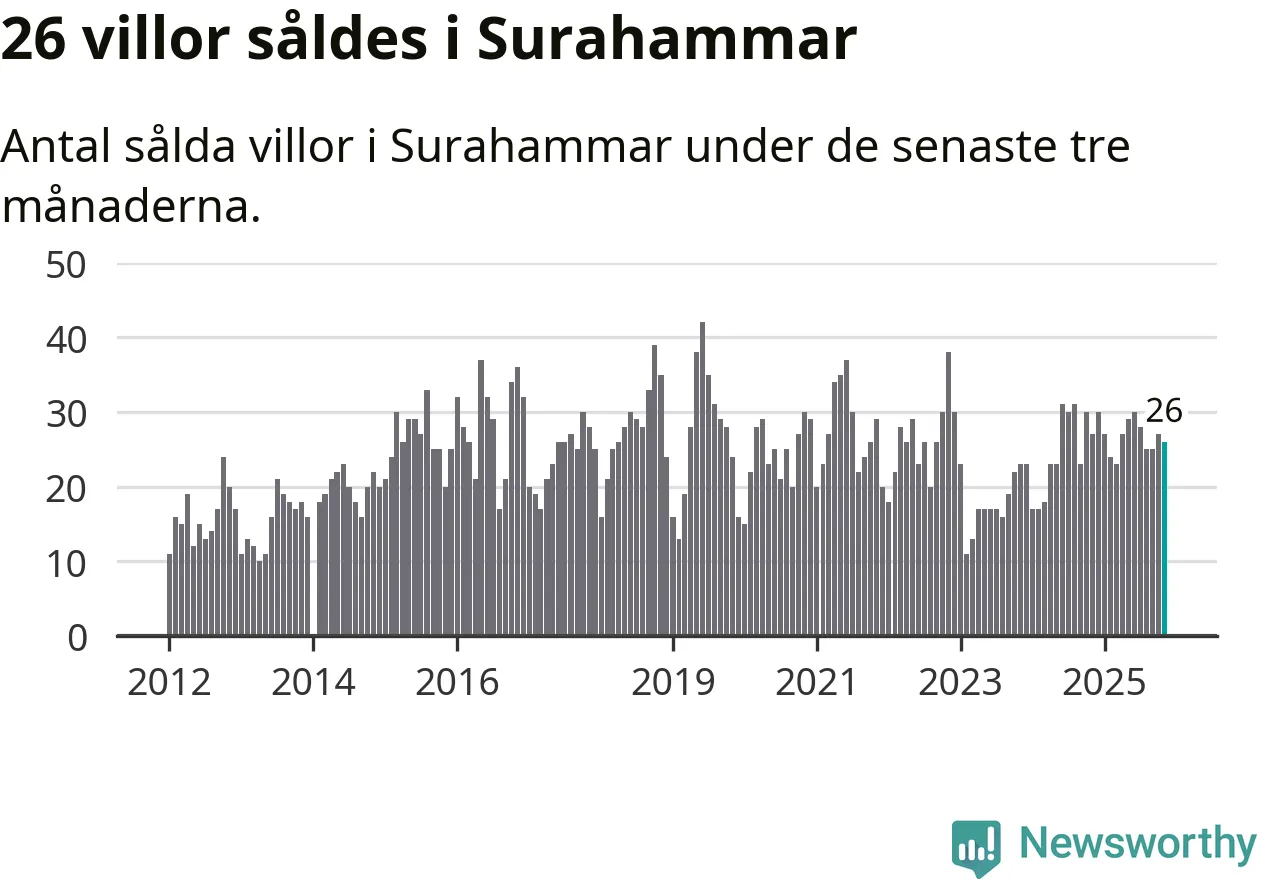 Mellan september och november gjordes sammanlagt 26 affärer med villor i Surahammars kommun. Det kan jämföras med 27 vid motsvarande tid i fjol.