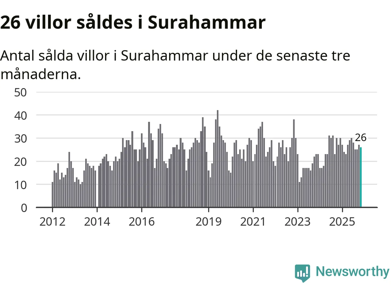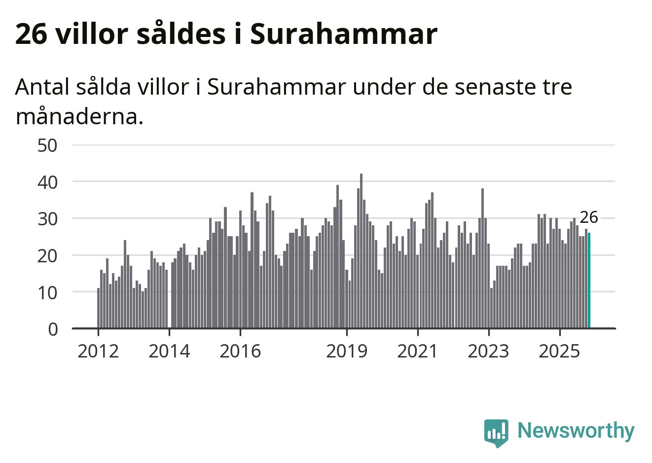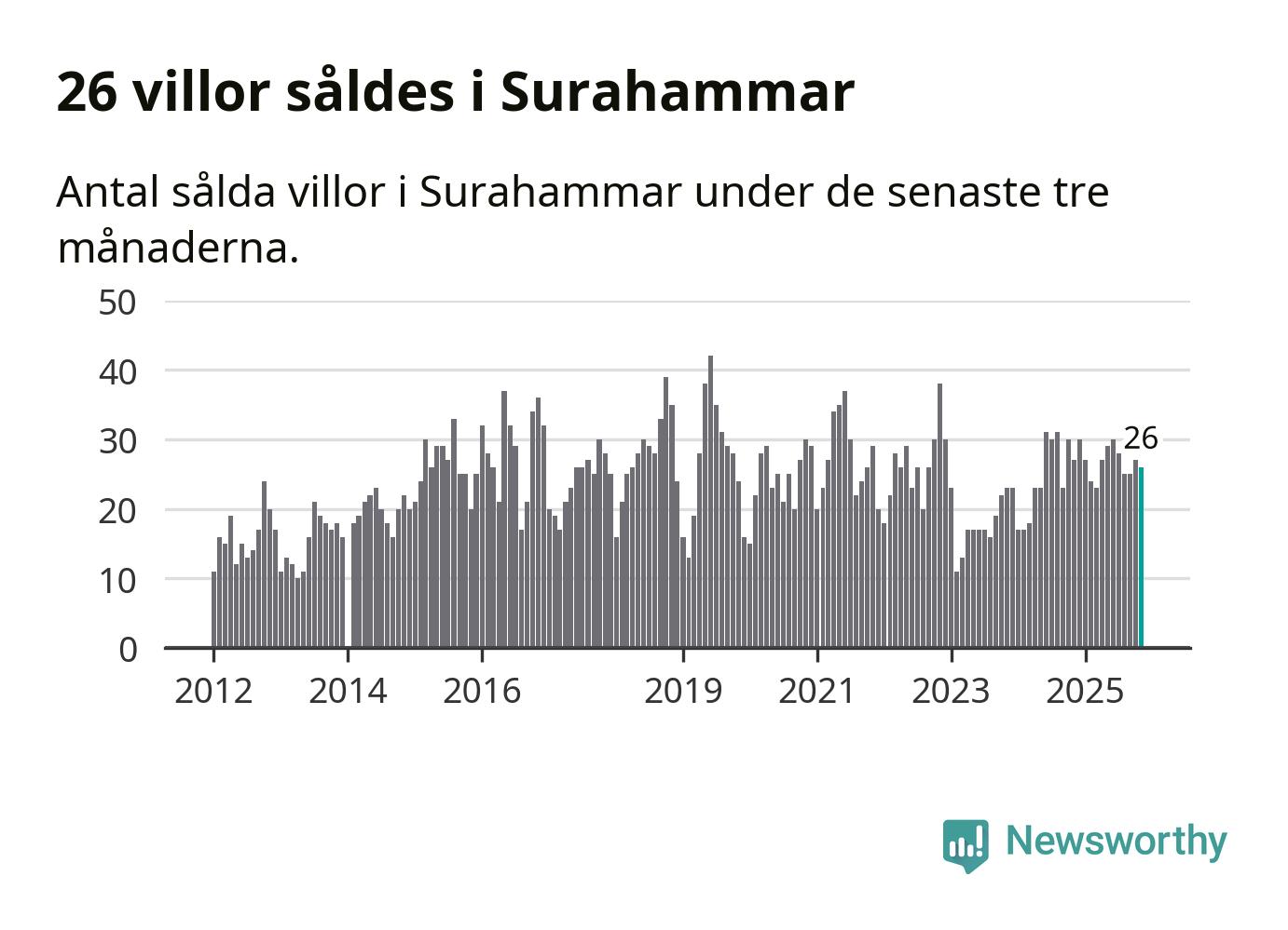 Mellan september och november gjordes sammanlagt 26 affärer med villor i Surahammars kommun. Det kan jämföras med 27 vid motsvarande tid i fjol.