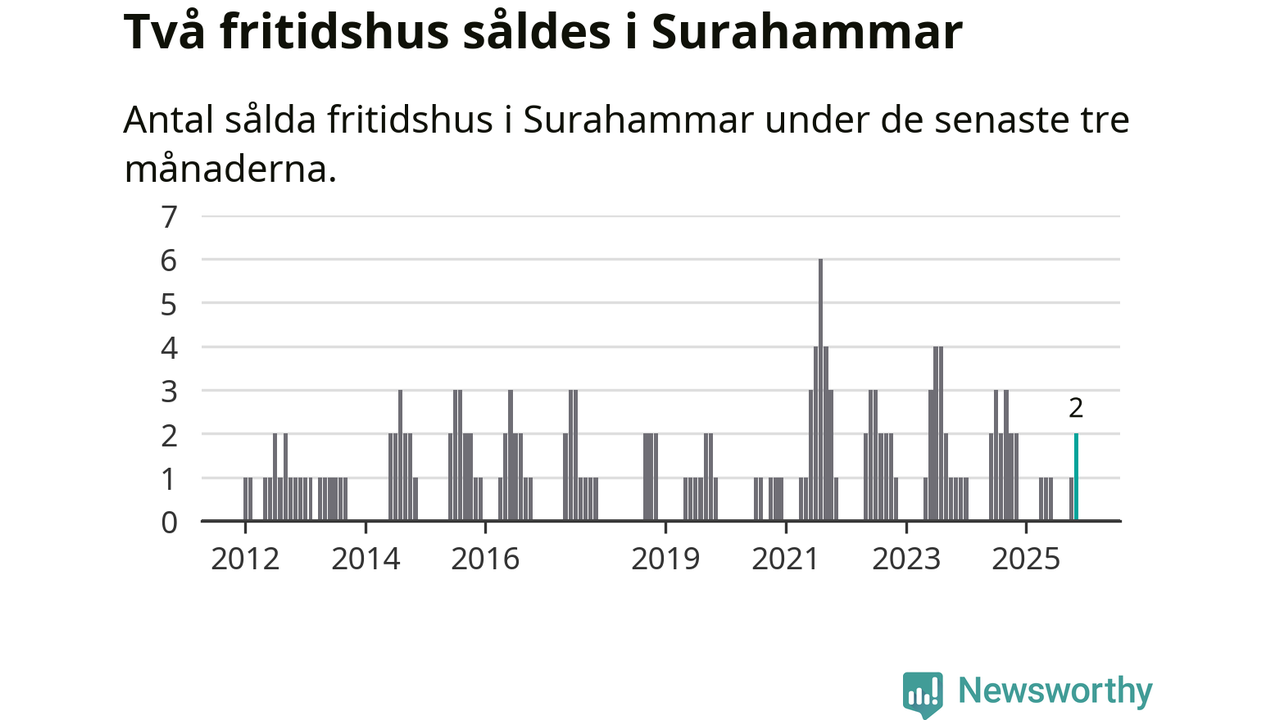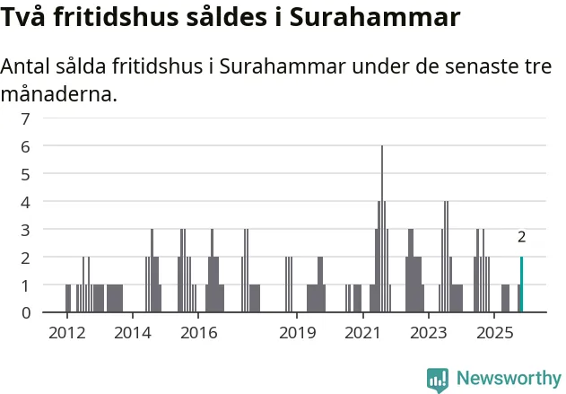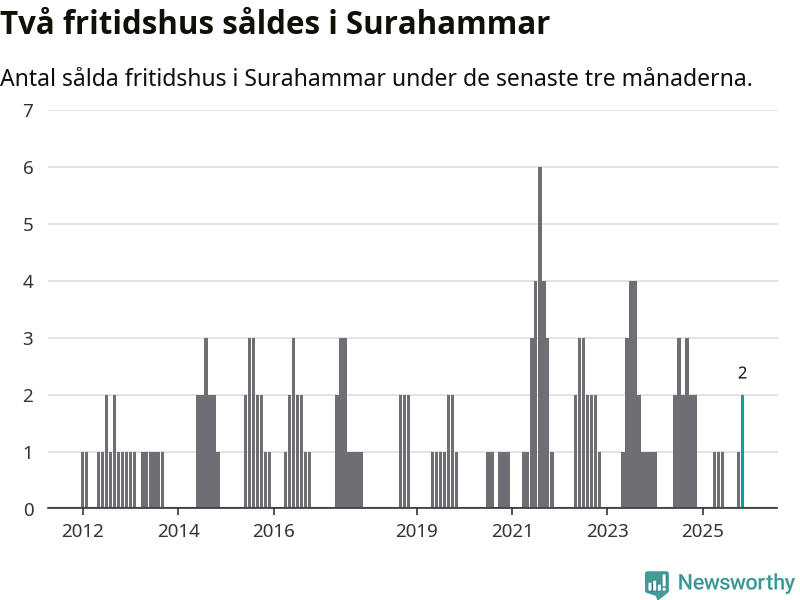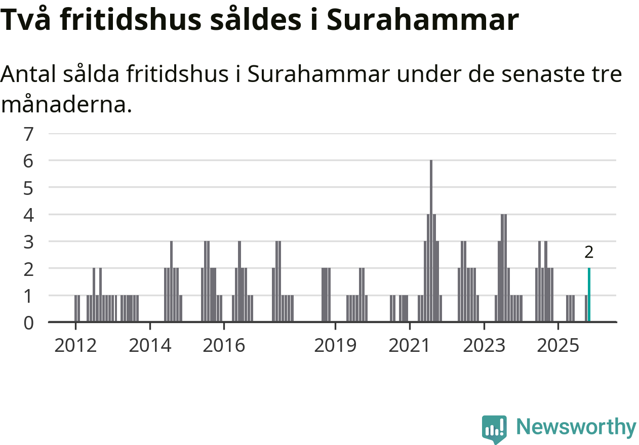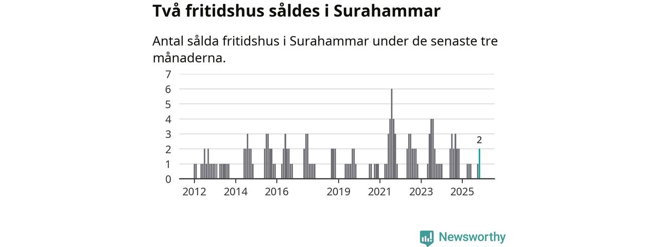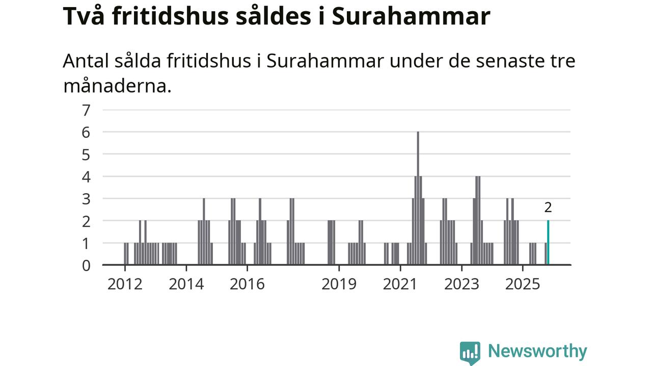 Mellan september och november gjordes sammanlagt två affärer med fritidshus i Surahammars kommun. Det är lika många affärer som vid motsvarande tid i fjol.