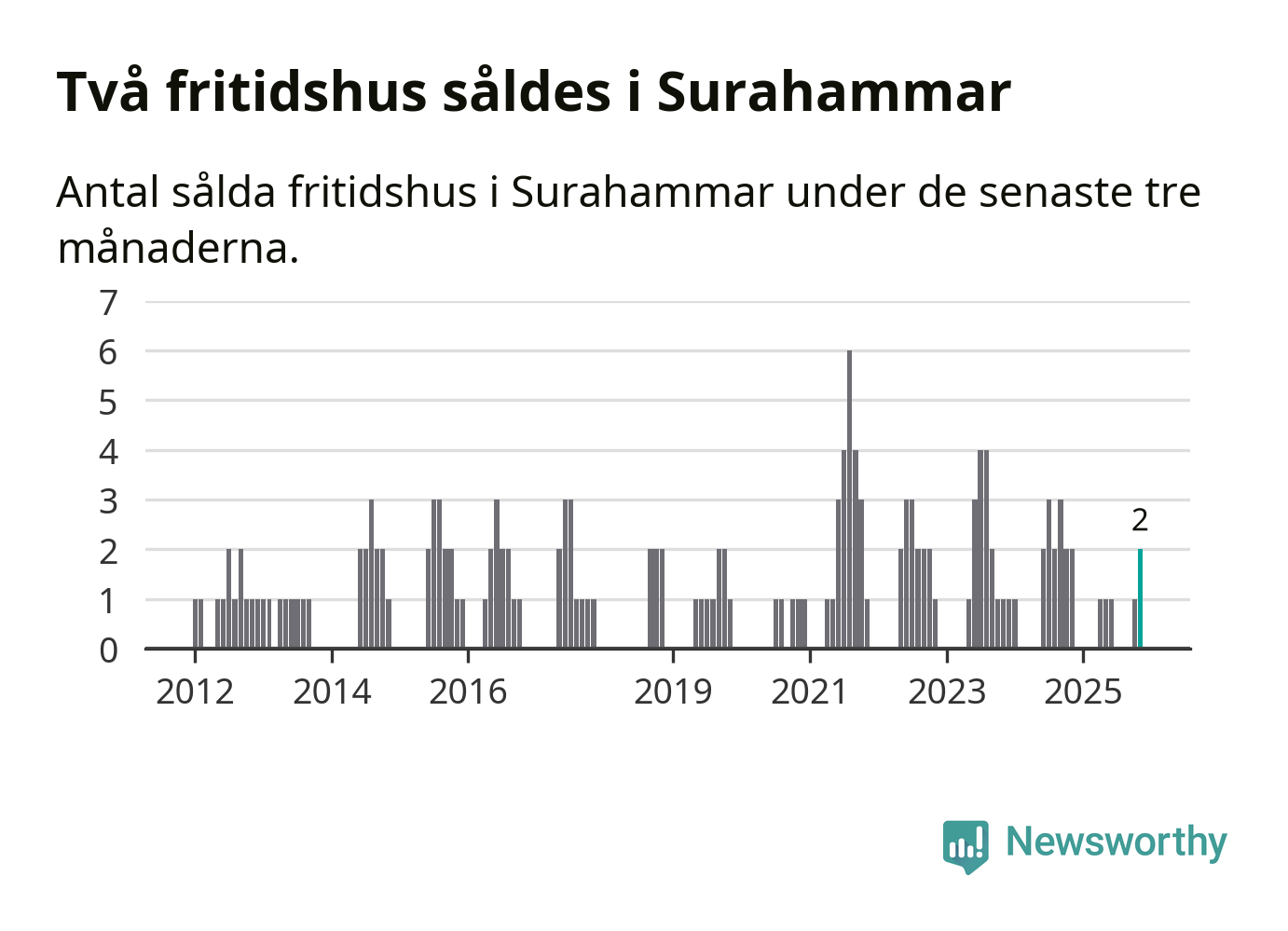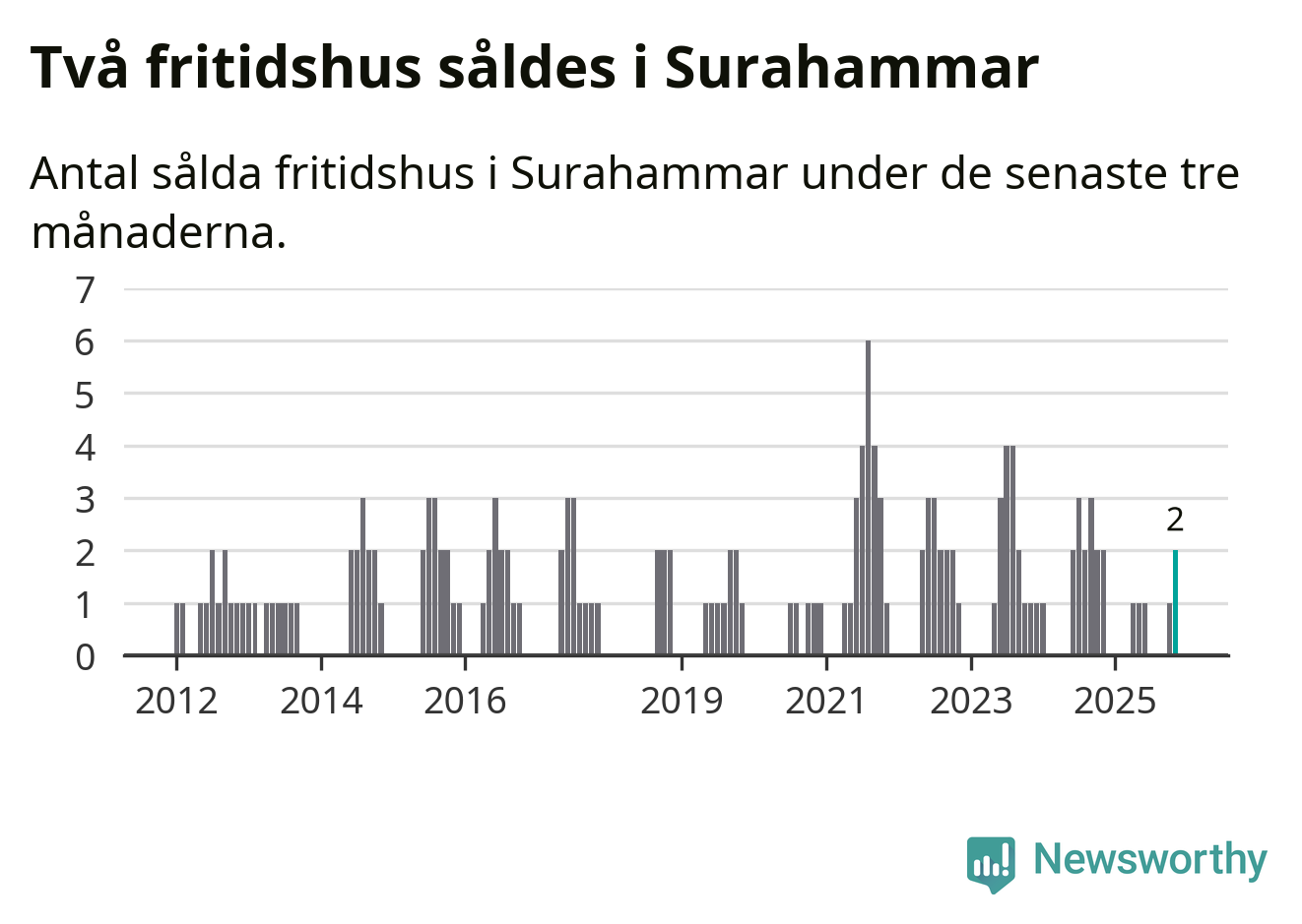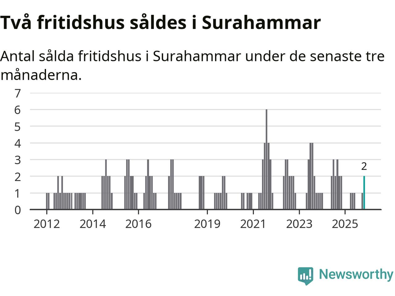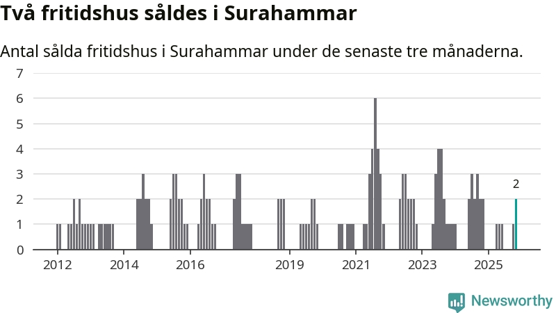 Mellan september och november gjordes sammanlagt två affärer med fritidshus i Surahammars kommun. Det är lika många affärer som vid motsvarande tid i fjol.