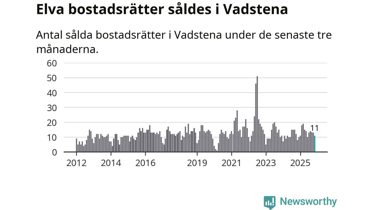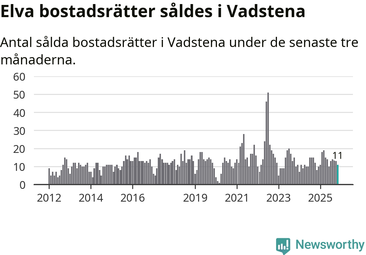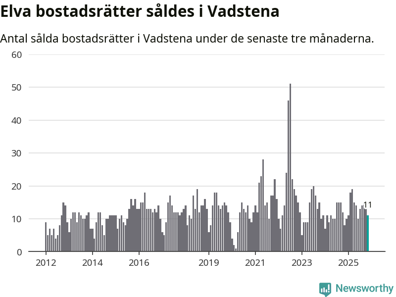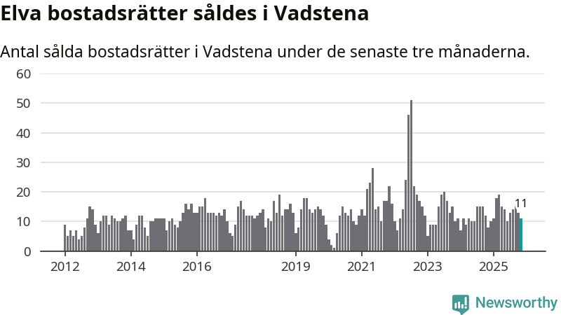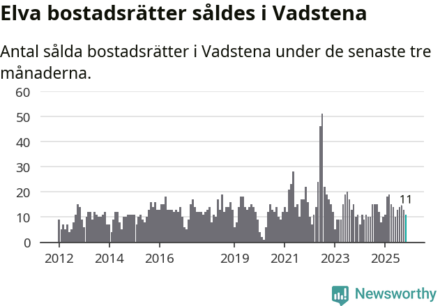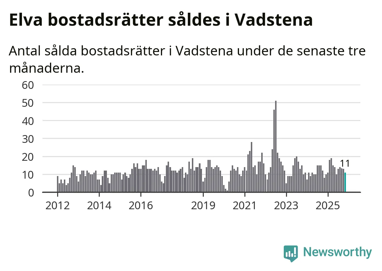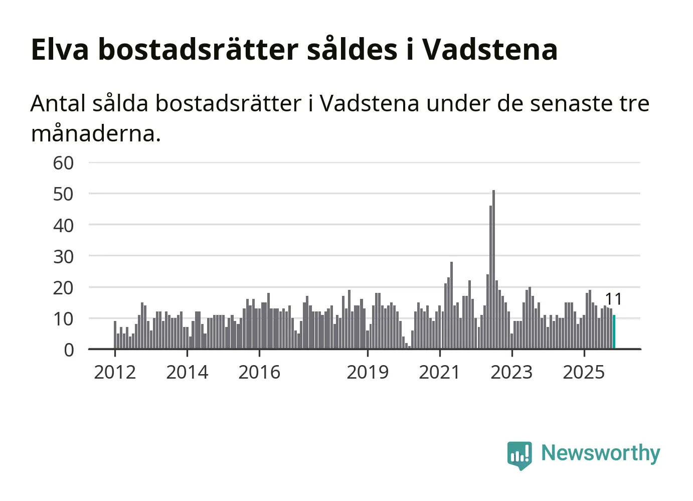 Mellan september och november gjordes sammanlagt elva affärer med bostadsrätter i Vadstena kommun. Det kan jämföras med åtta vid motsvarande tid i fjol.