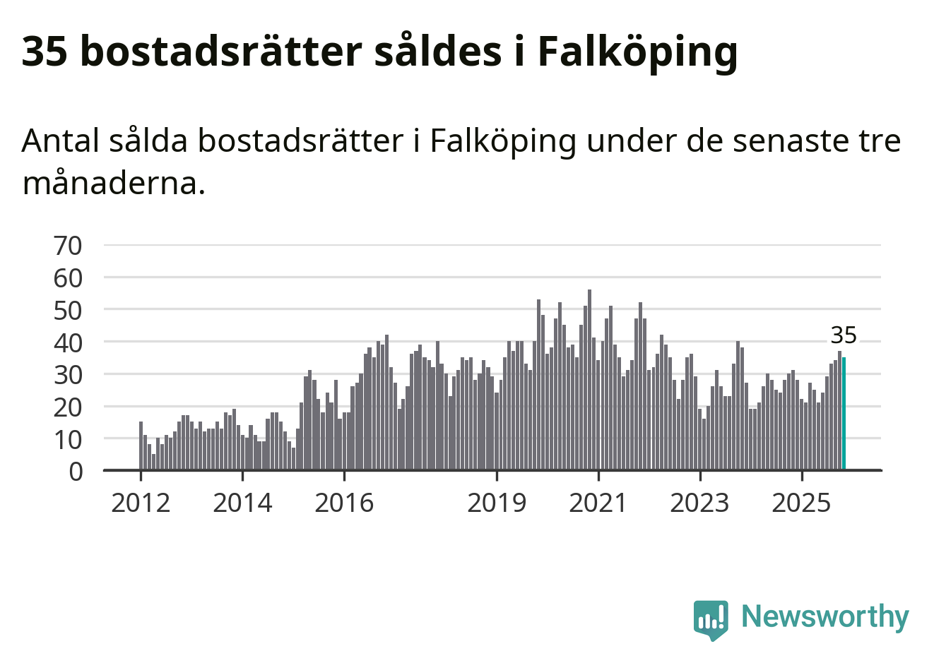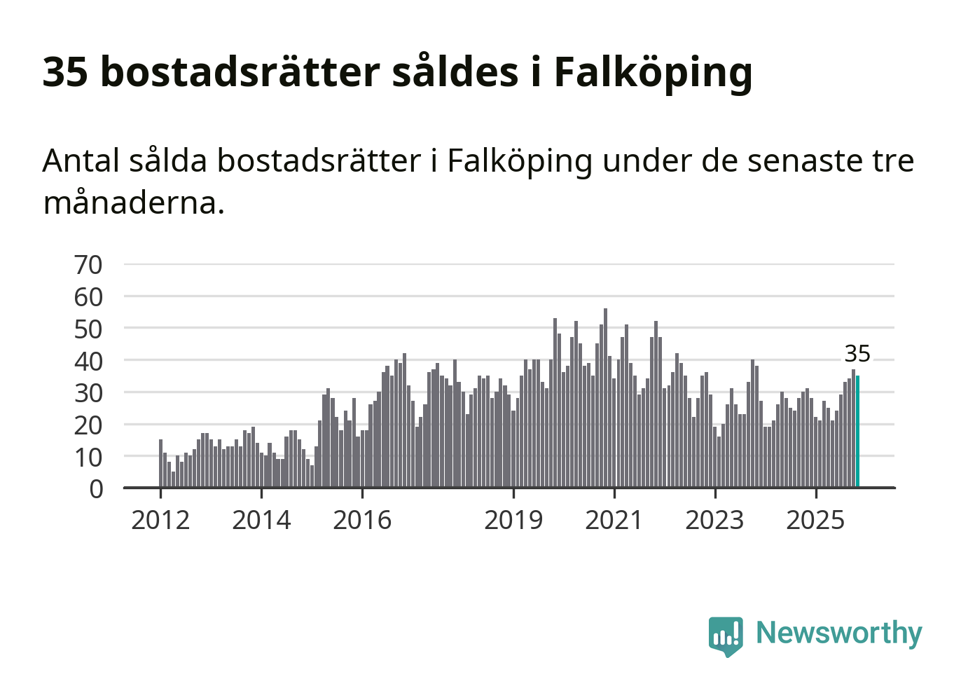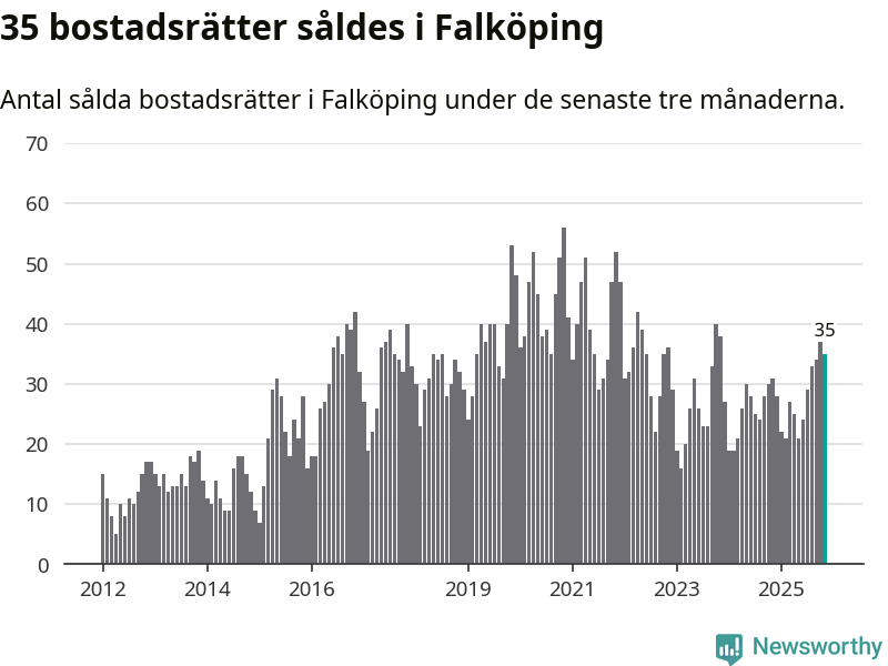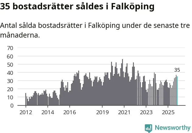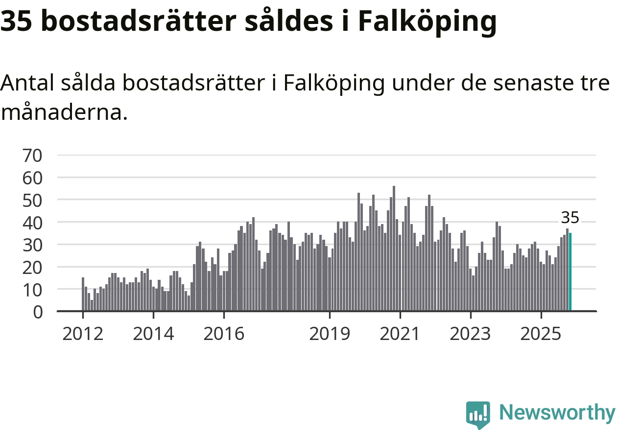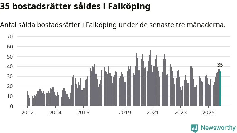 Mellan september och november gjordes sammanlagt 35 affärer med bostadsrätter i Falköpings kommun. Det kan jämföras med 31 vid motsvarande tid i fjol.