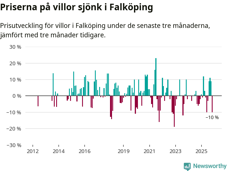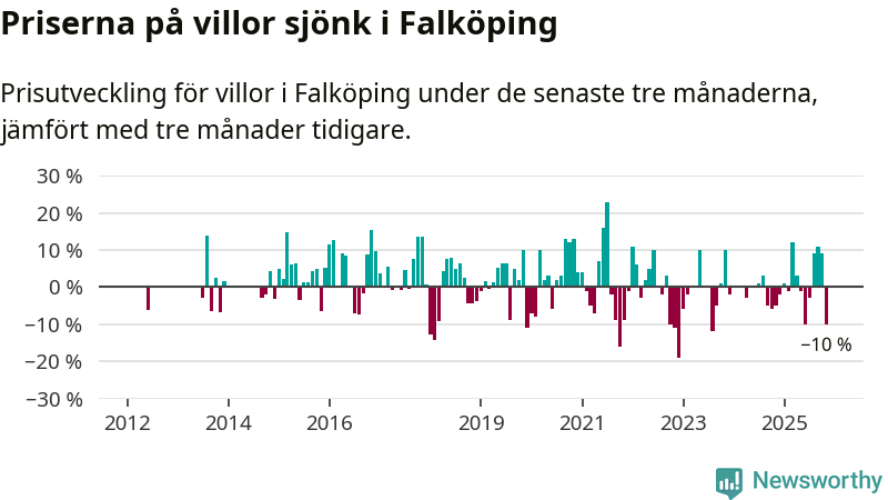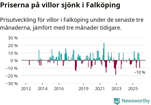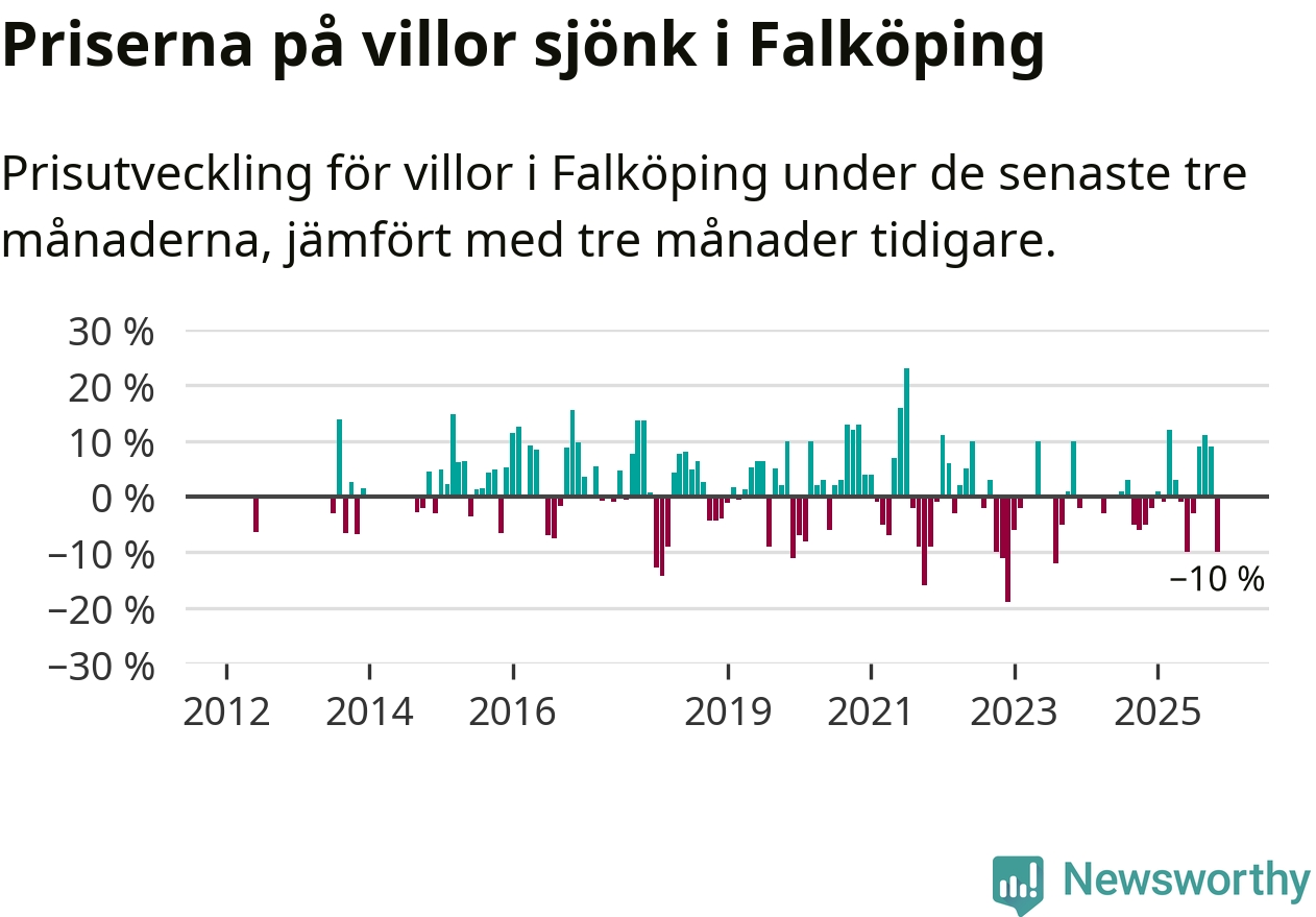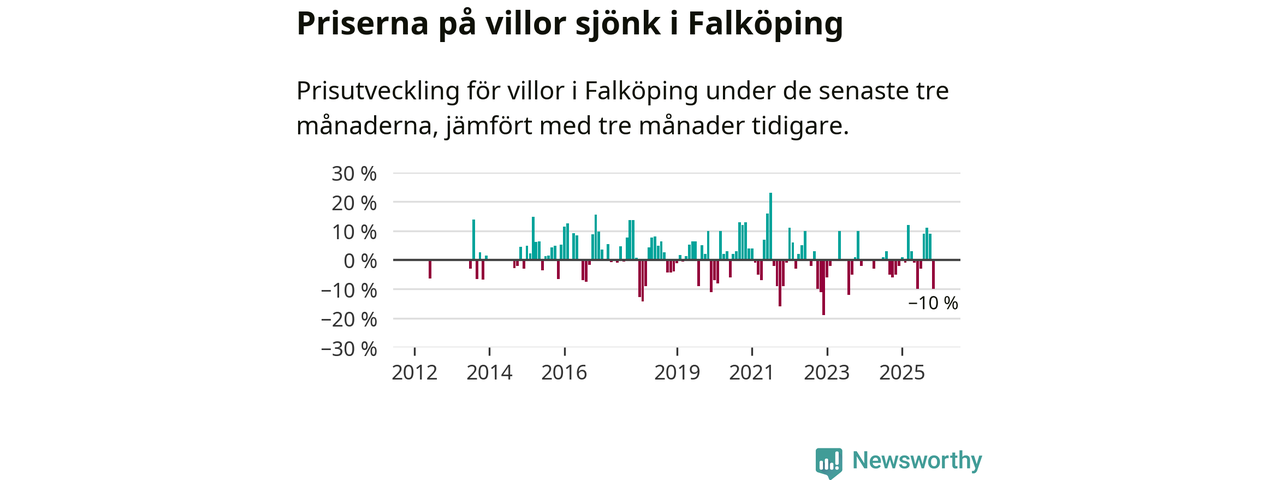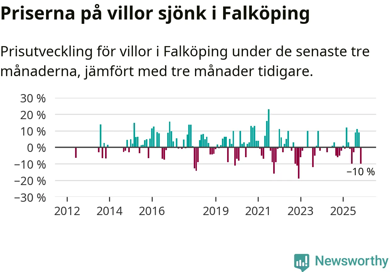 Villapriserna sjönk mellan september och november med 10 procent i Falköpings kommun. Det är en betydande nedgång jämfört med det gångna året då priserna i snitt ökat med 1 procent.