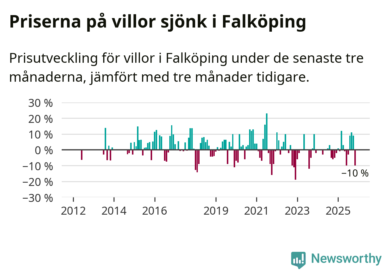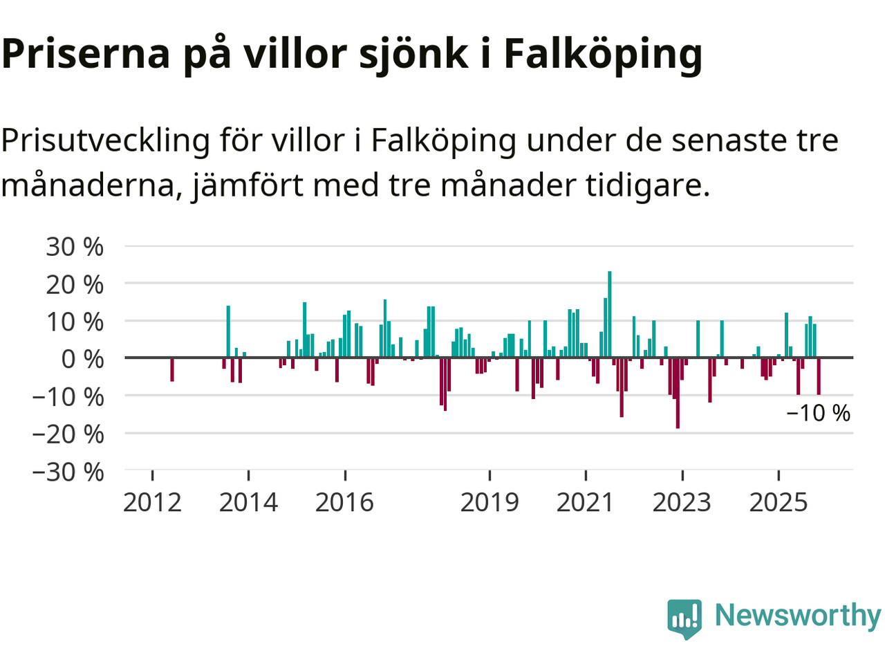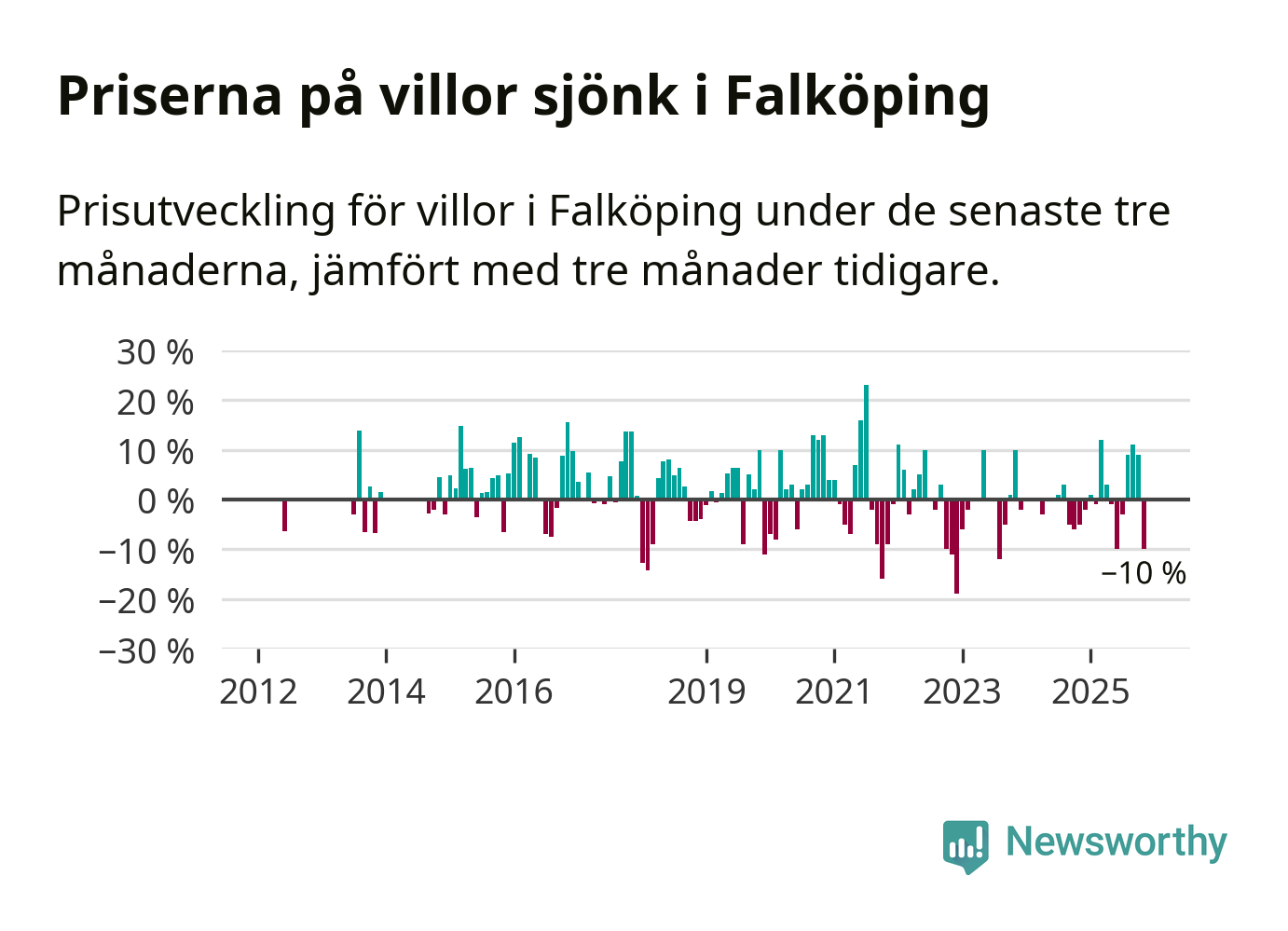 Villapriserna sjönk mellan september och november med 10 procent i Falköpings kommun. Det är en betydande nedgång jämfört med det gångna året då priserna i snitt ökat med 1 procent.