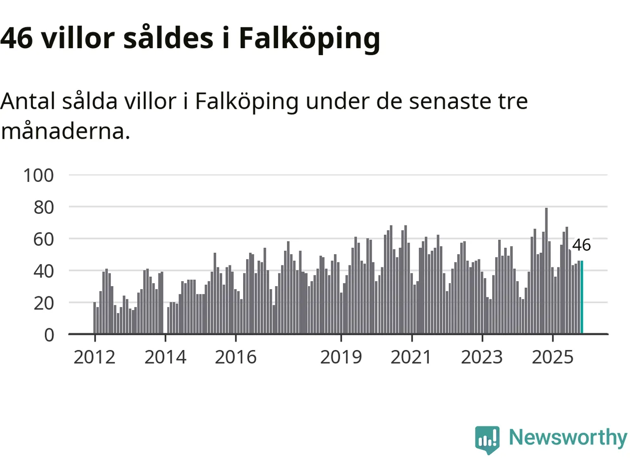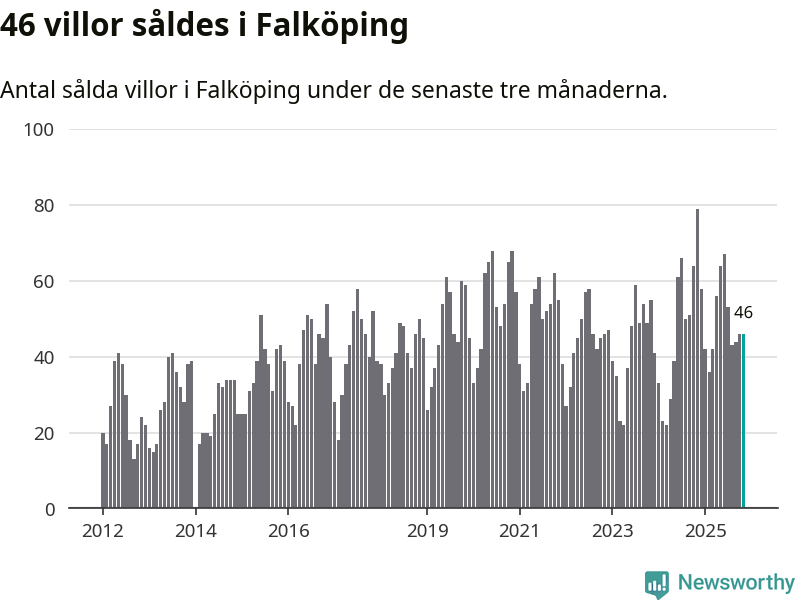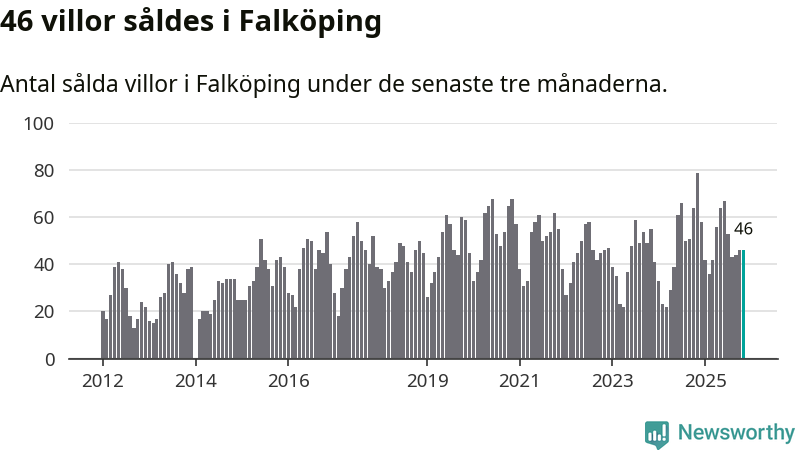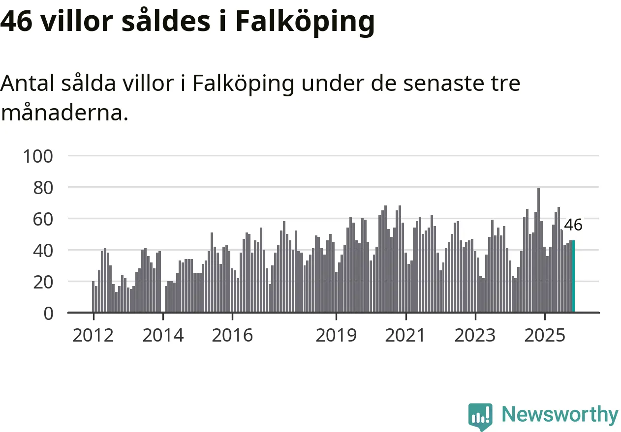 Sammanlagt såldes 46 villor i Falköpings kommun mellan september och november till ett genomsnittligt pris på 1,7 miljoner kronor. I fjol gjordes 79 affärer vid den här tiden på året.