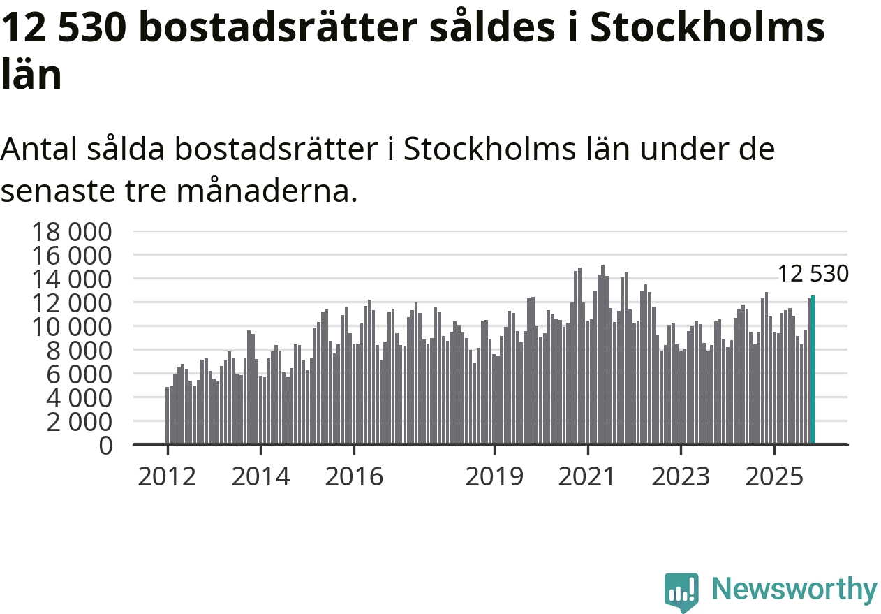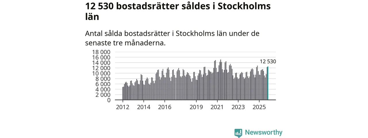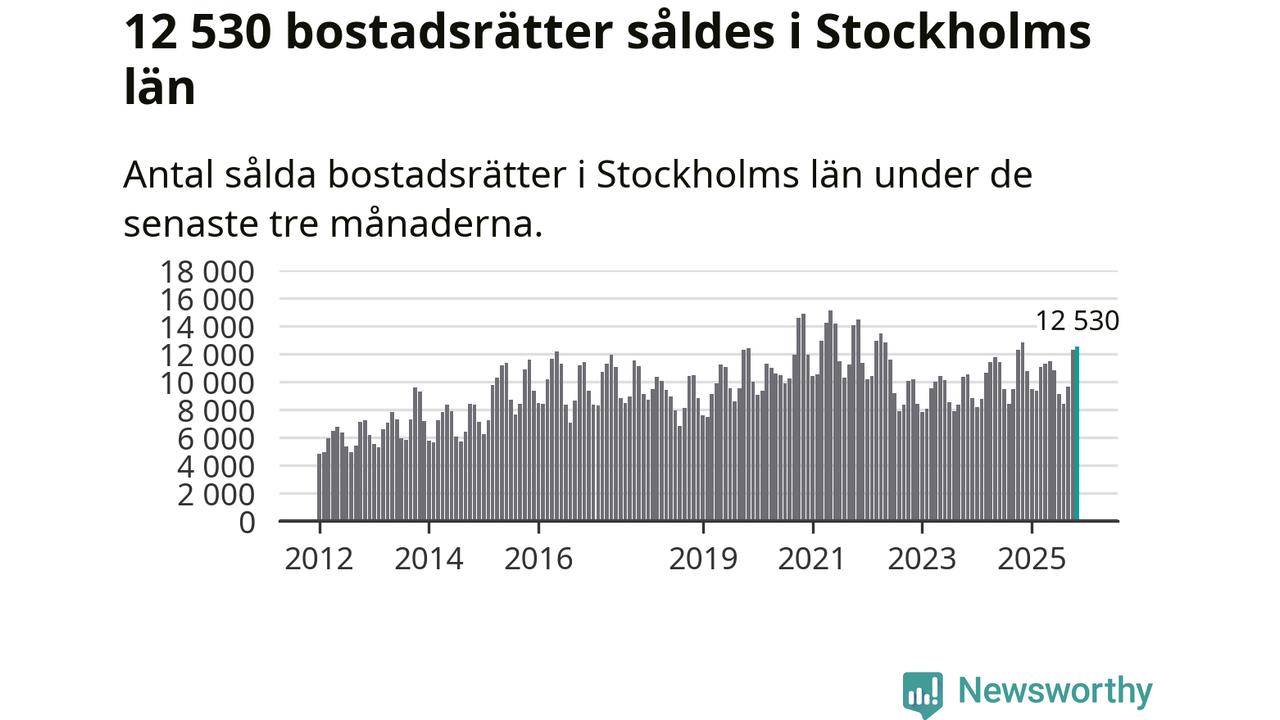 Sammanlagt såldes 12 530 bostadsrätter i Stockholms län mellan september och november till ett genomsnittligt pris på 4,4 miljoner kronor. I fjol gjordes 12 844 affärer vid den här tiden på året.