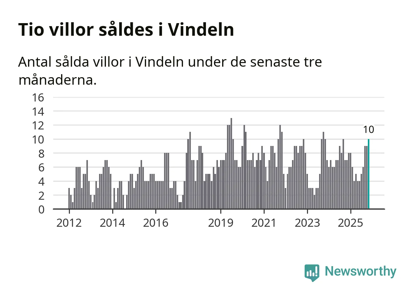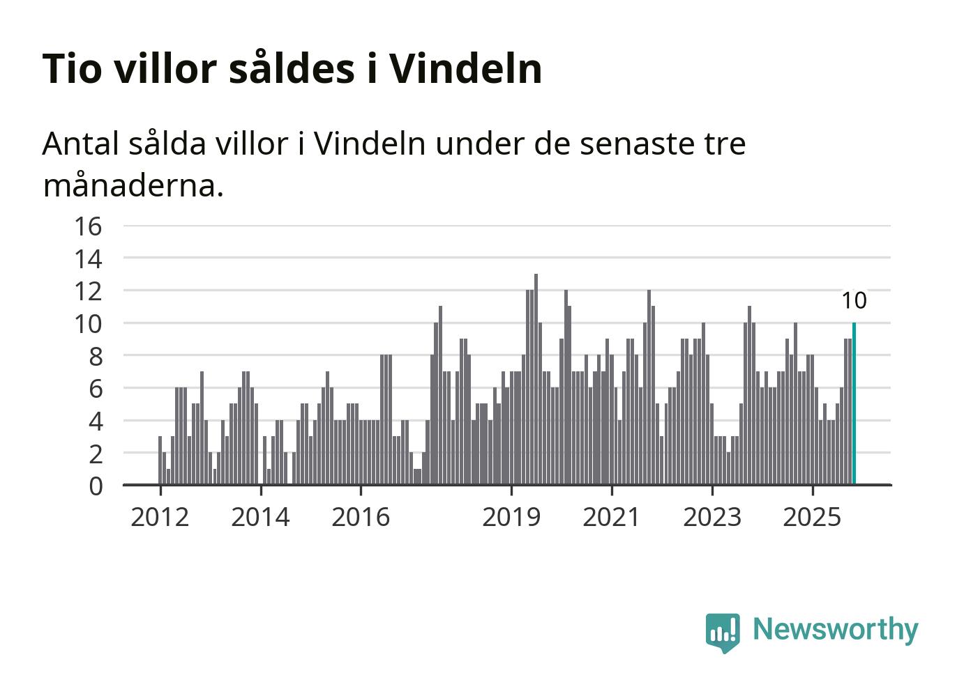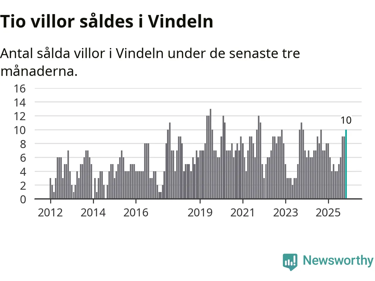 Mellan september och november gjordes sammanlagt tio affärer med villor i Vindelns kommun. Det kan jämföras med sju vid motsvarande tid i fjol.