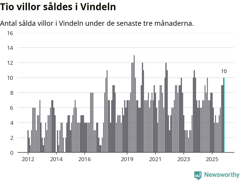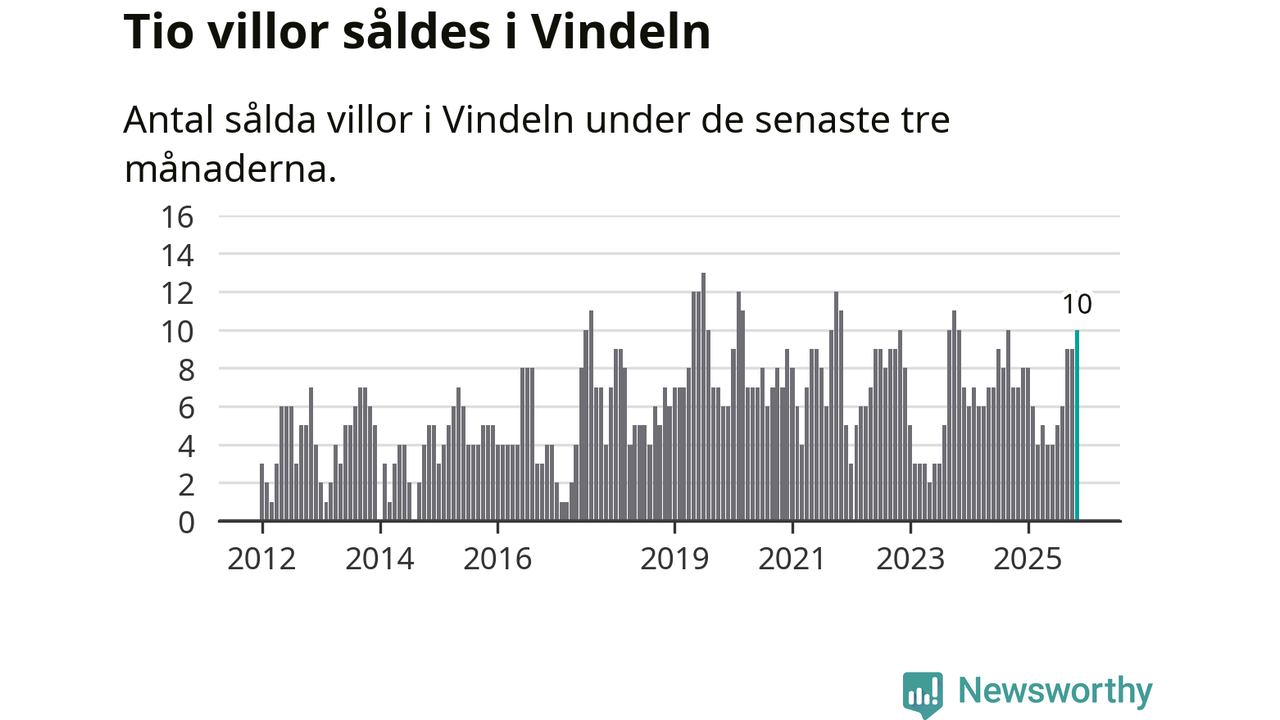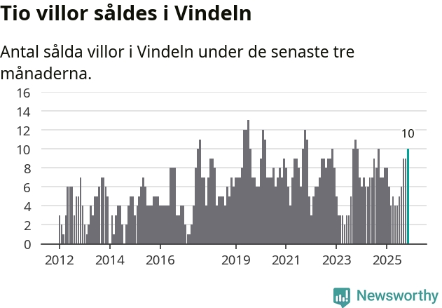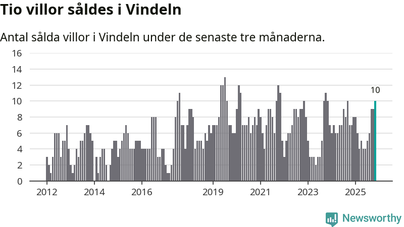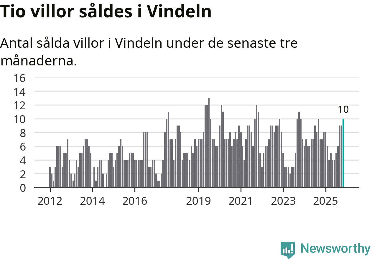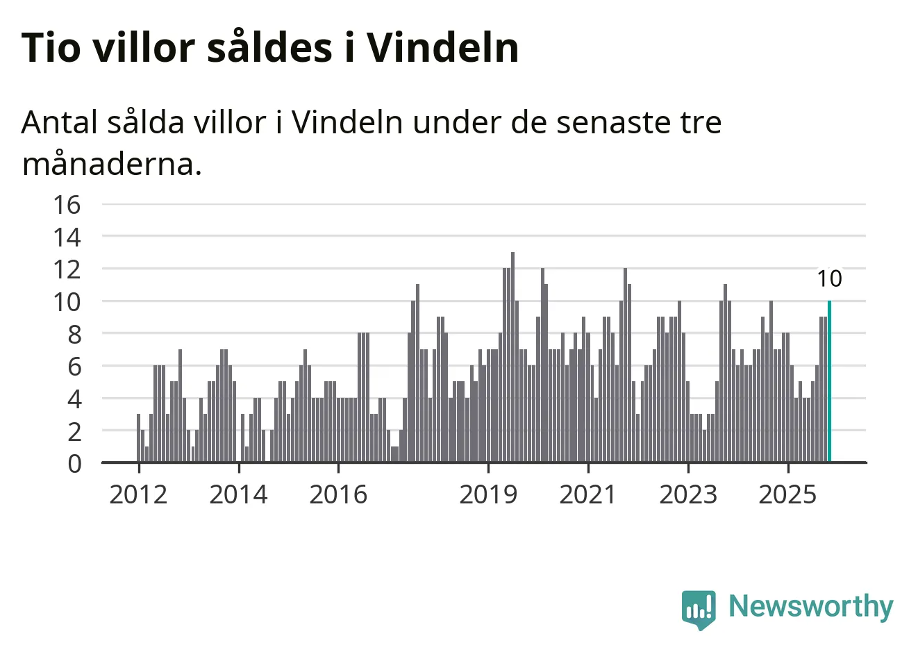 Mellan september och november gjordes sammanlagt tio affärer med villor i Vindelns kommun. Det kan jämföras med sju vid motsvarande tid i fjol.
