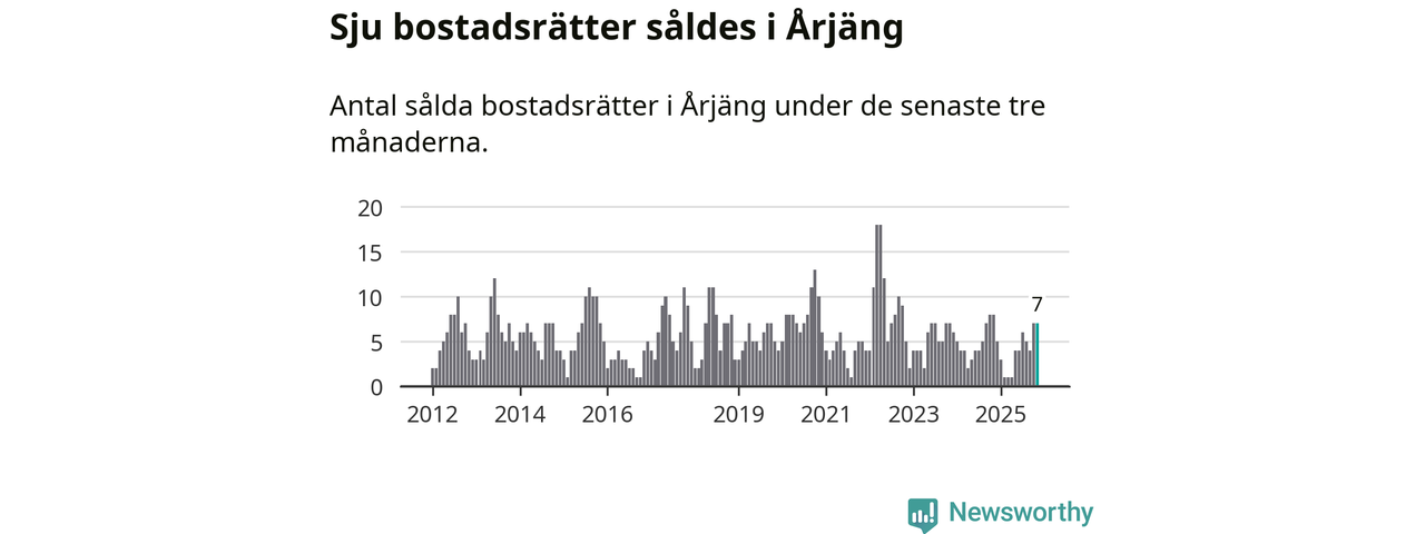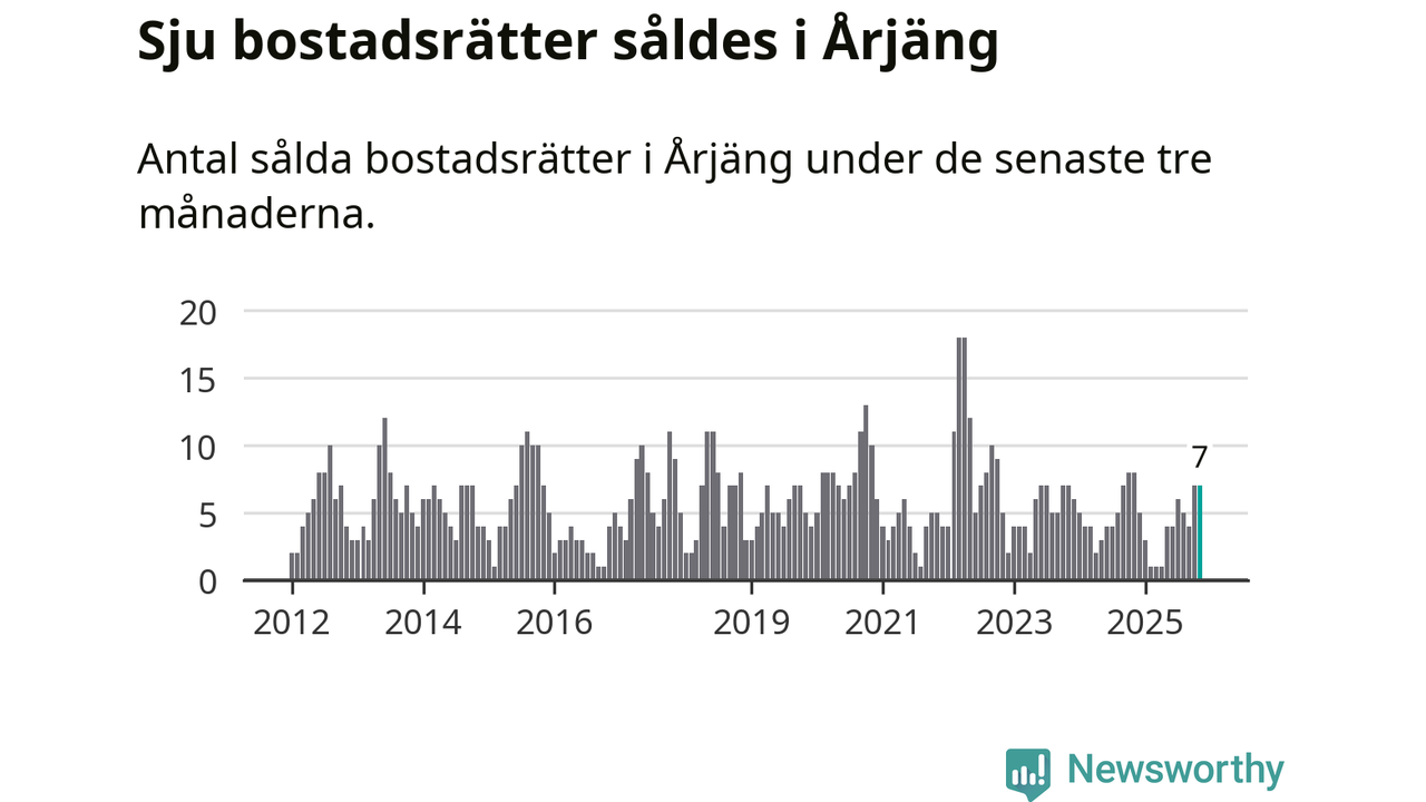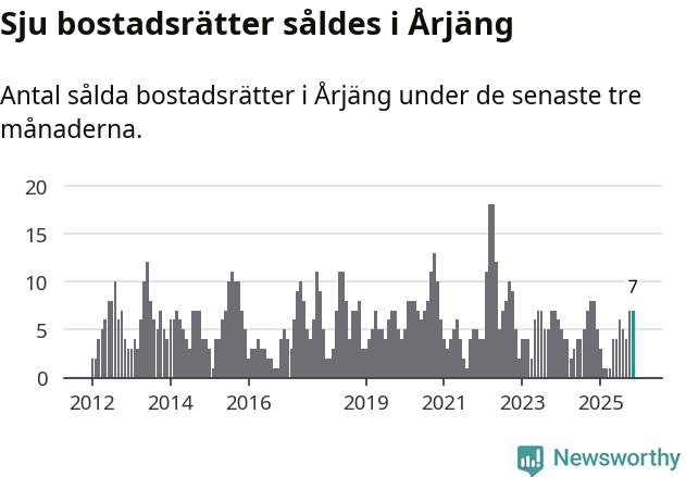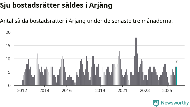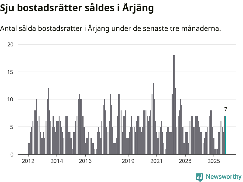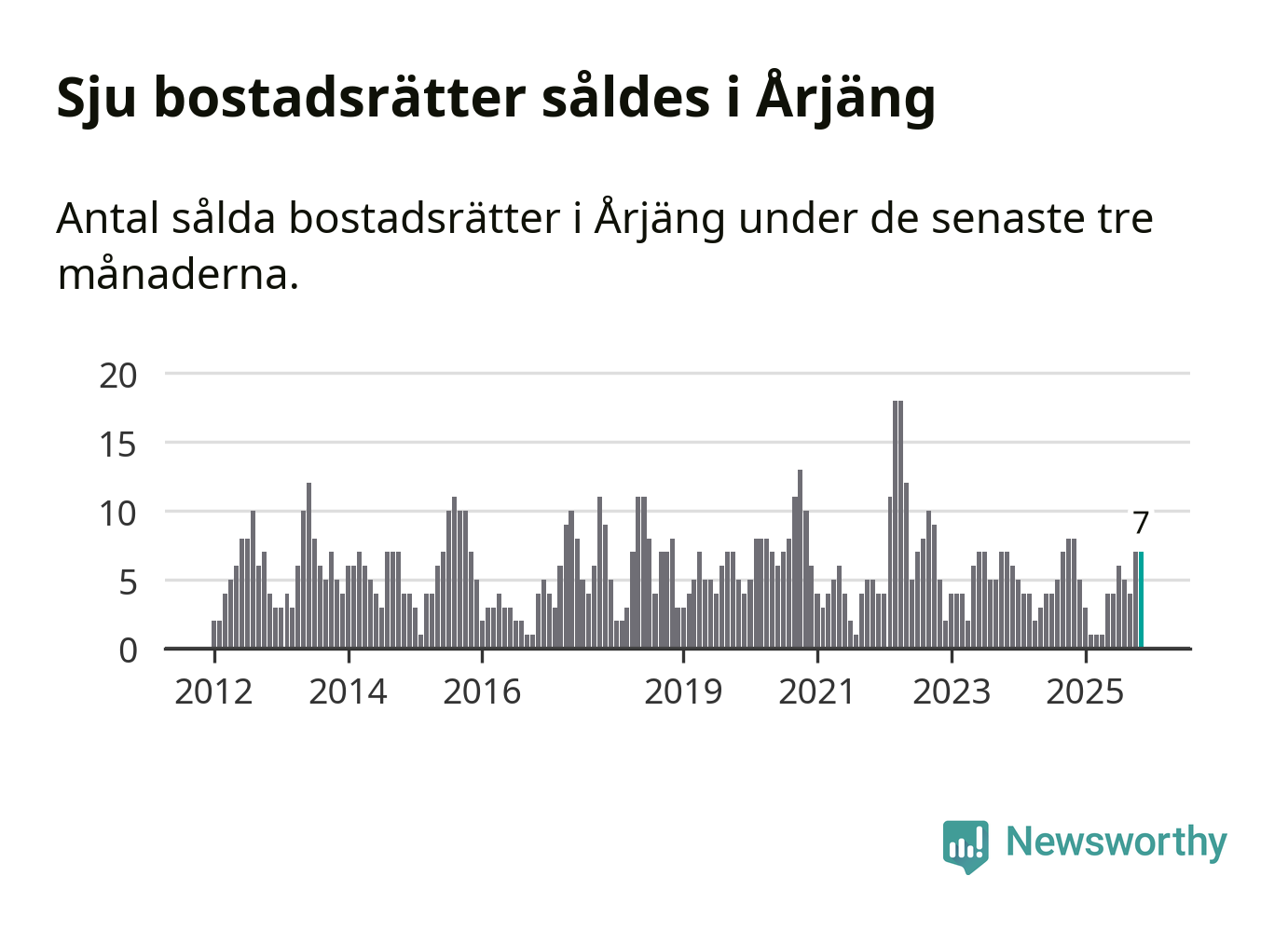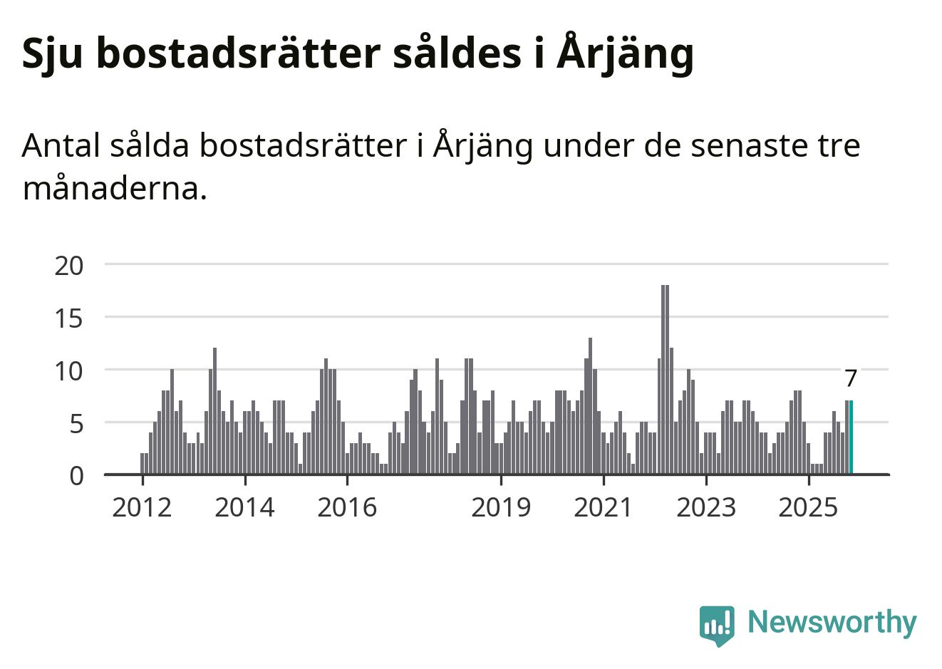 Mellan september och november gjordes sammanlagt sju affärer med bostadsrätter i Årjängs kommun. Det kan jämföras med åtta vid motsvarande tid i fjol.