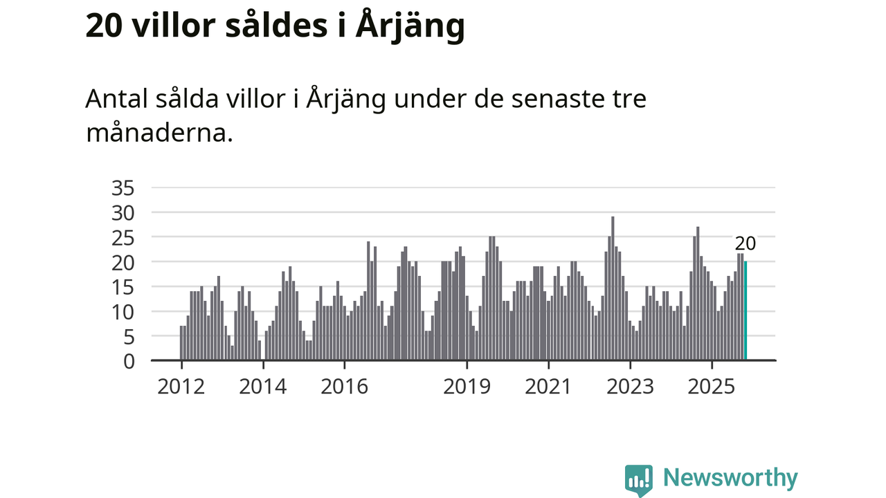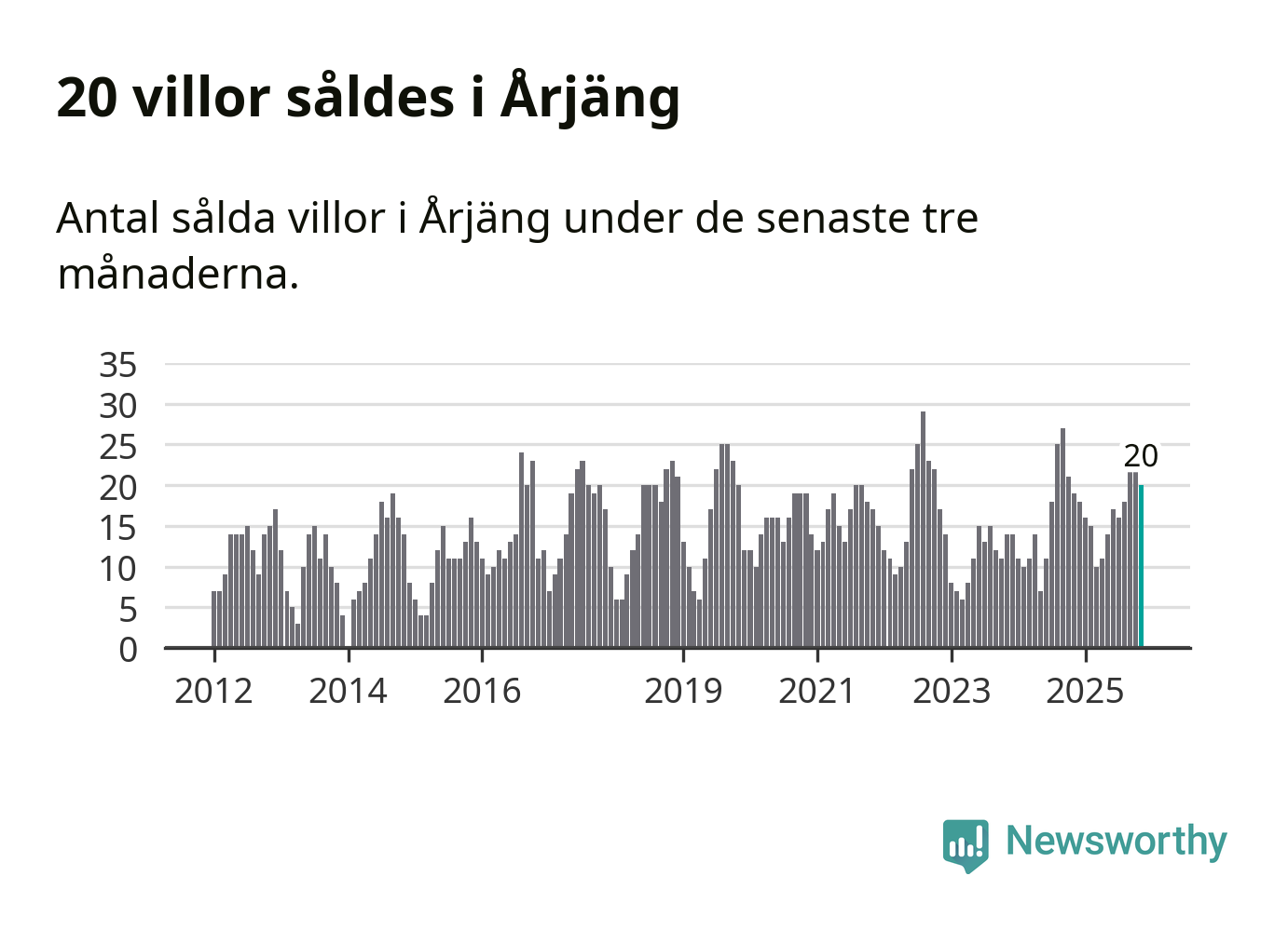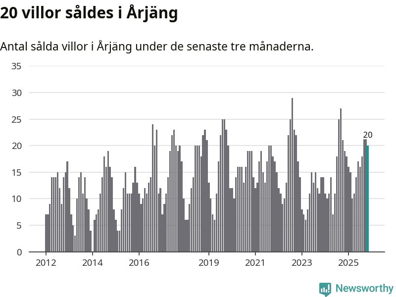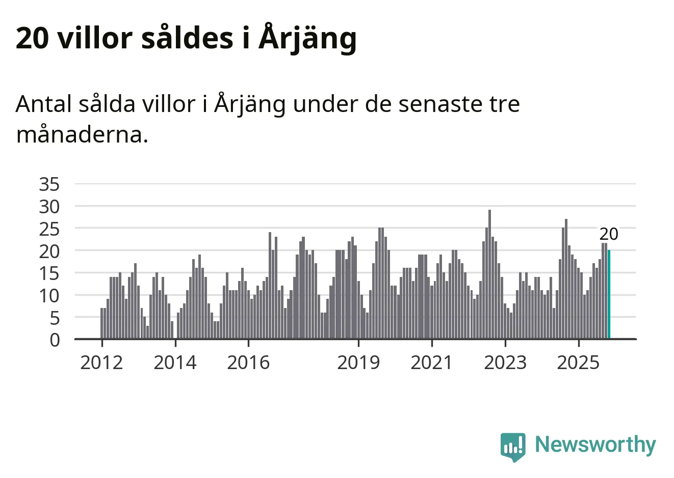 Mellan september och november gjordes sammanlagt 20 affärer med villor i Årjängs kommun. Det kan jämföras med 19 vid motsvarande tid i fjol.