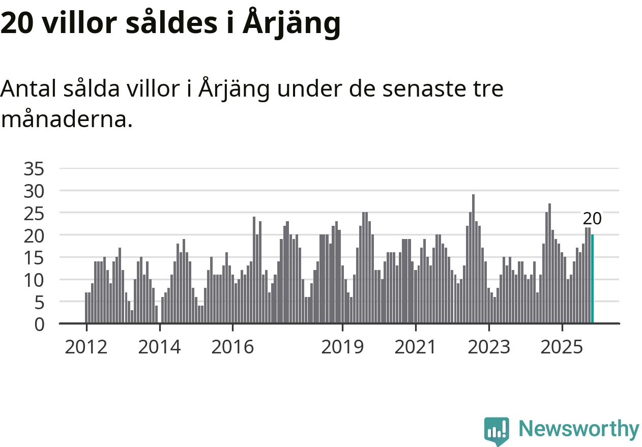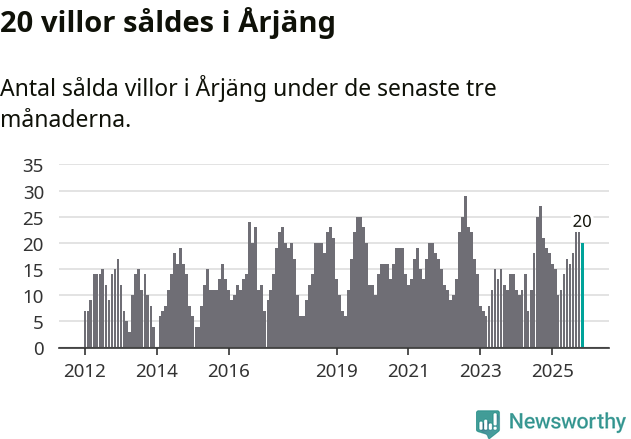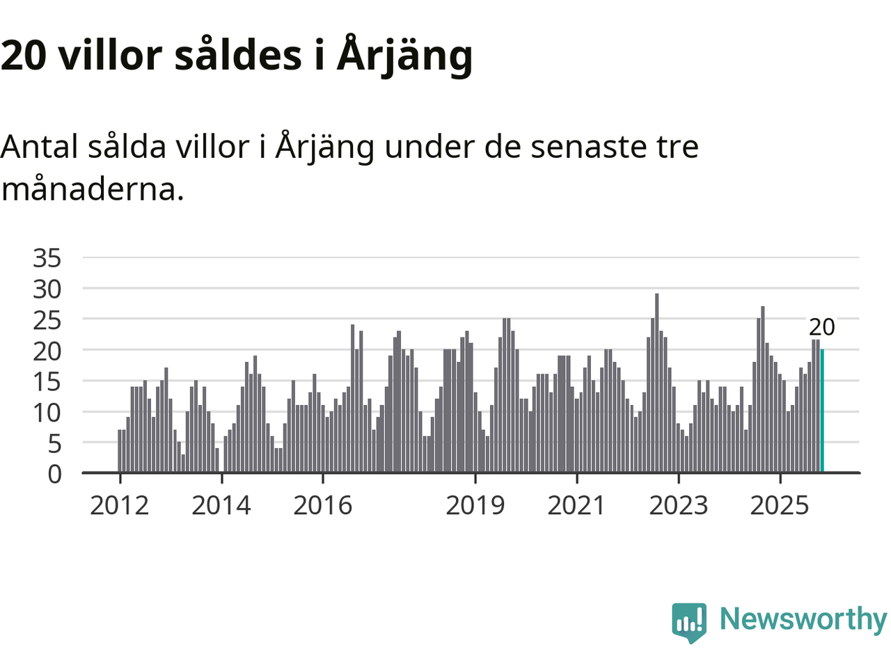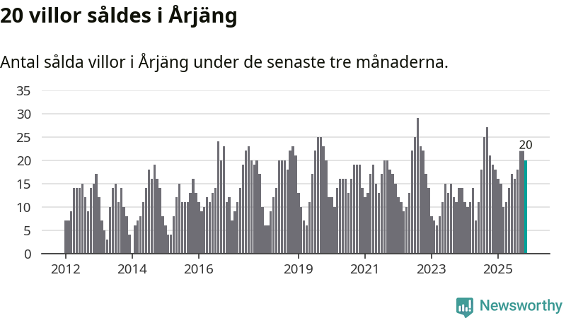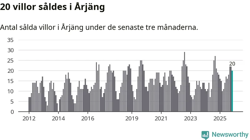 Mellan september och november gjordes sammanlagt 20 affärer med villor i Årjängs kommun. Det kan jämföras med 19 vid motsvarande tid i fjol.