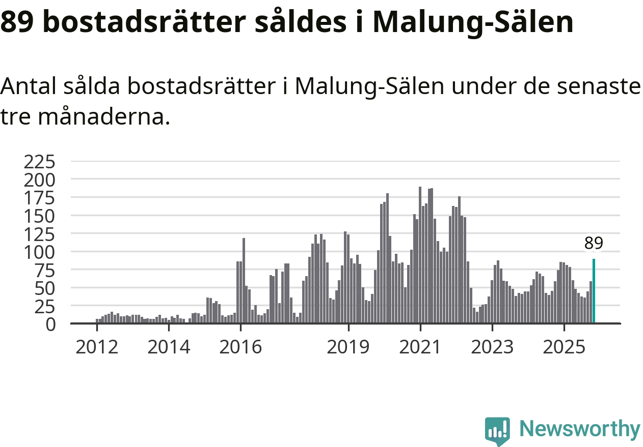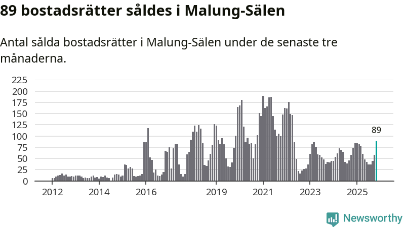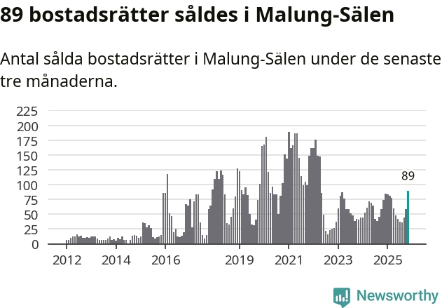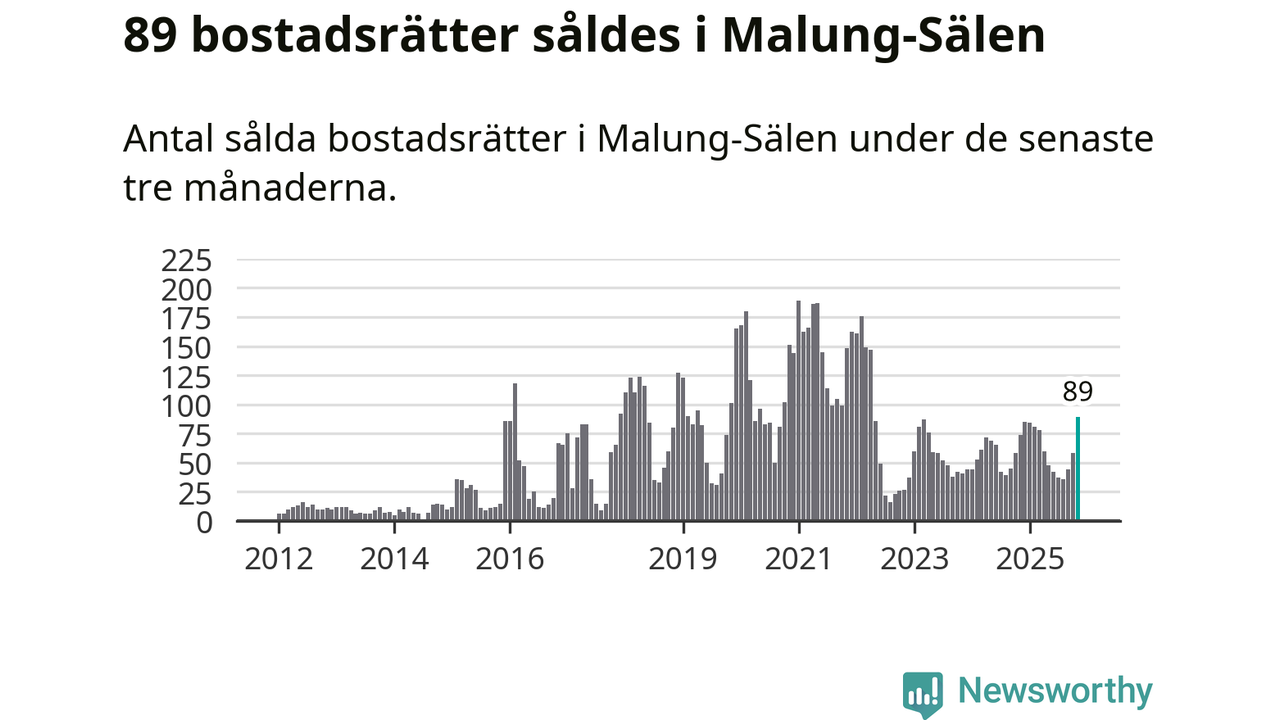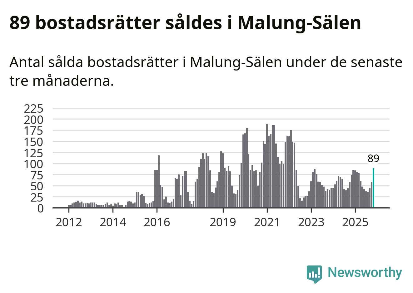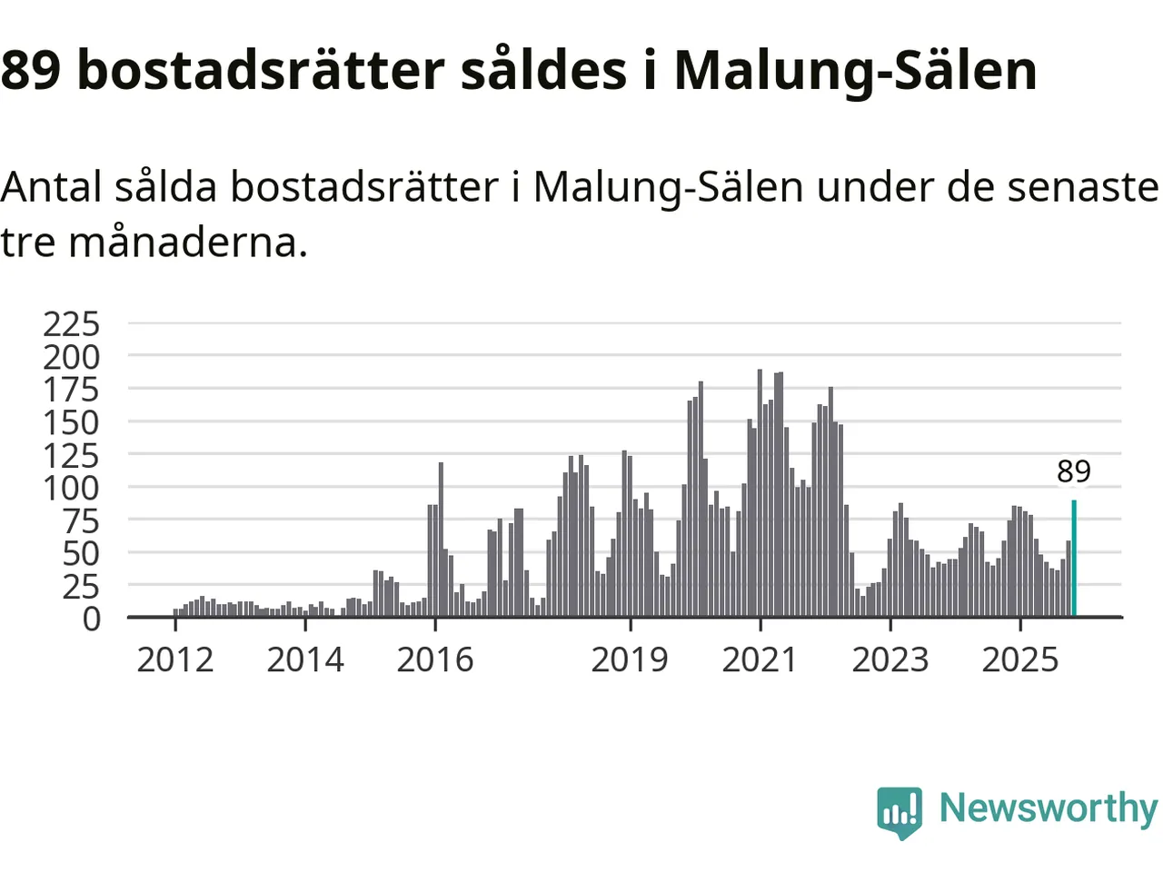 Mellan september och november såldes 89 bostadsrätter i Malung-Sälens kommun. Det är fler än någon tremånadersperiod sedan 2022.