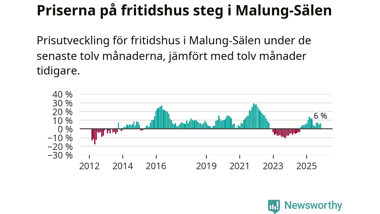 Priserna på fritidshus har gått upp i Malung-Sälens kommun. Medelpriset på försäljningarna under de senaste tolv månaderna visar på en uppgång med 6 procent.