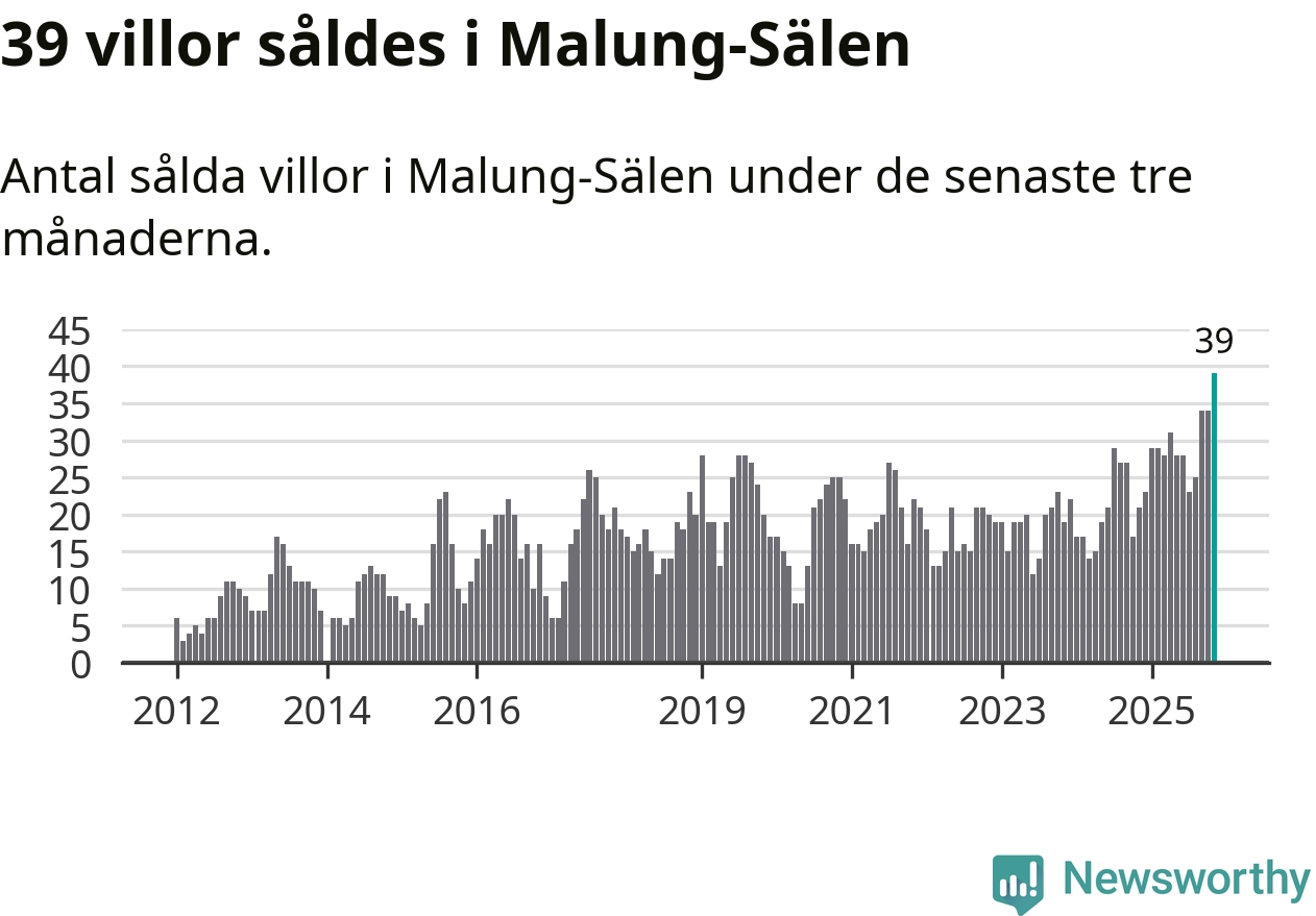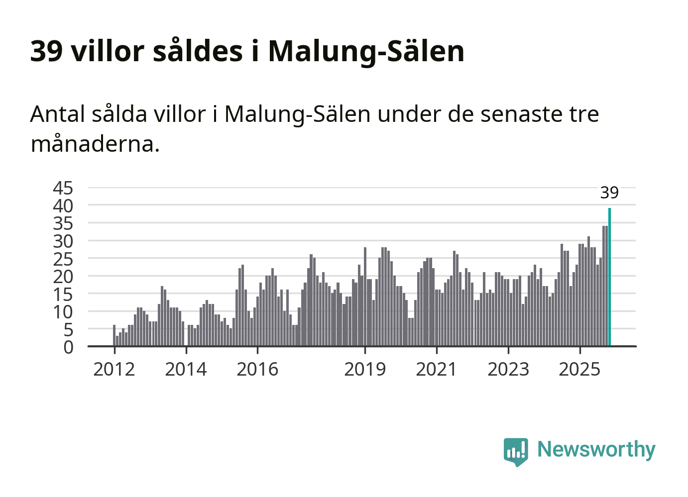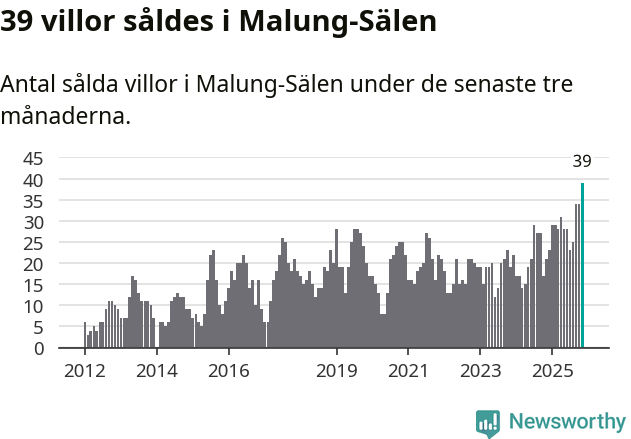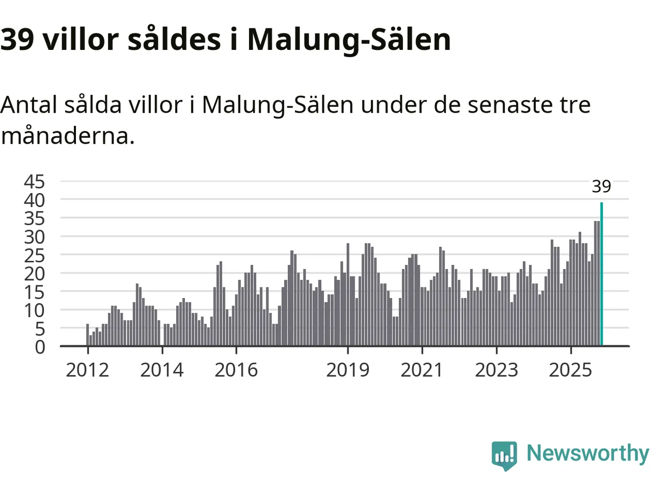 Mellan september och november såldes 39 villor i Malung-Sälens kommun. Det är fler än någon tremånadersperiod sedan 2012.