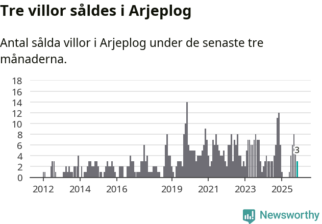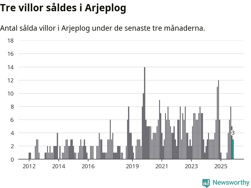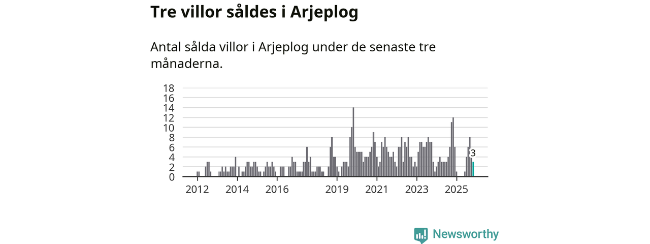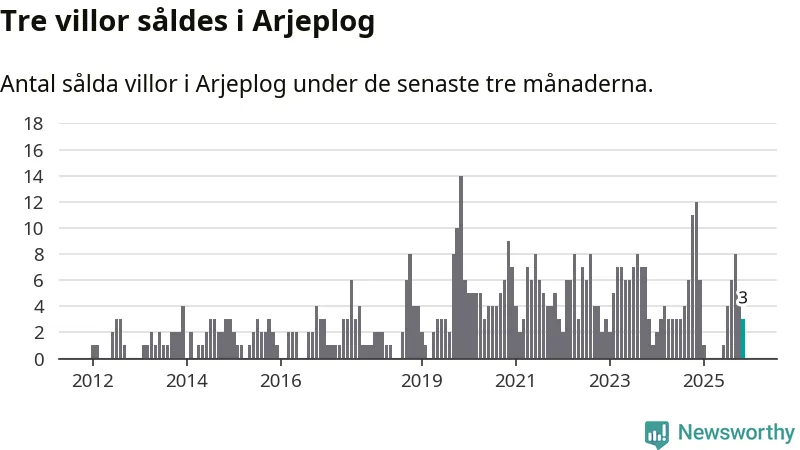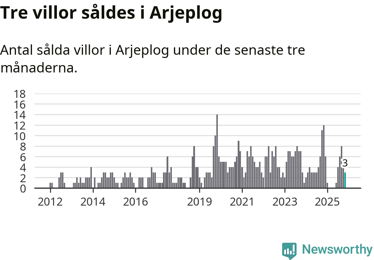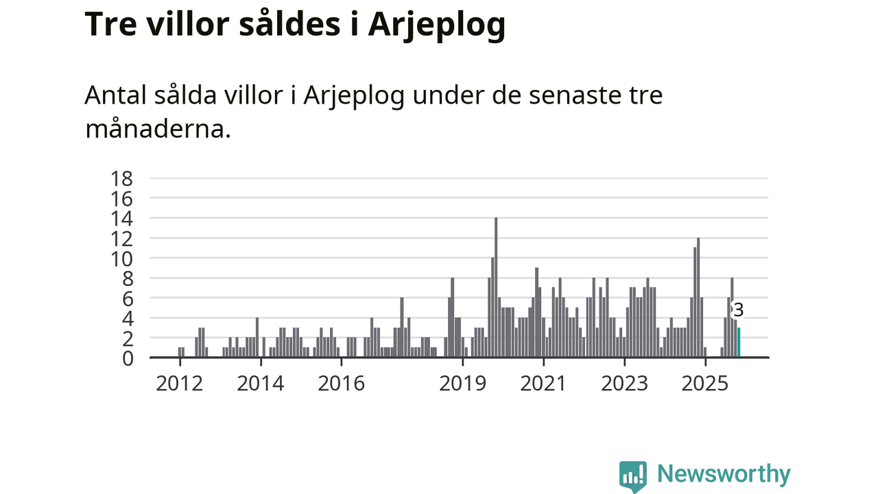 Mellan september och november gjordes sammanlagt tre affärer med villor i Arjeplogs kommun. Det kan jämföras med tolv vid motsvarande tid i fjol.