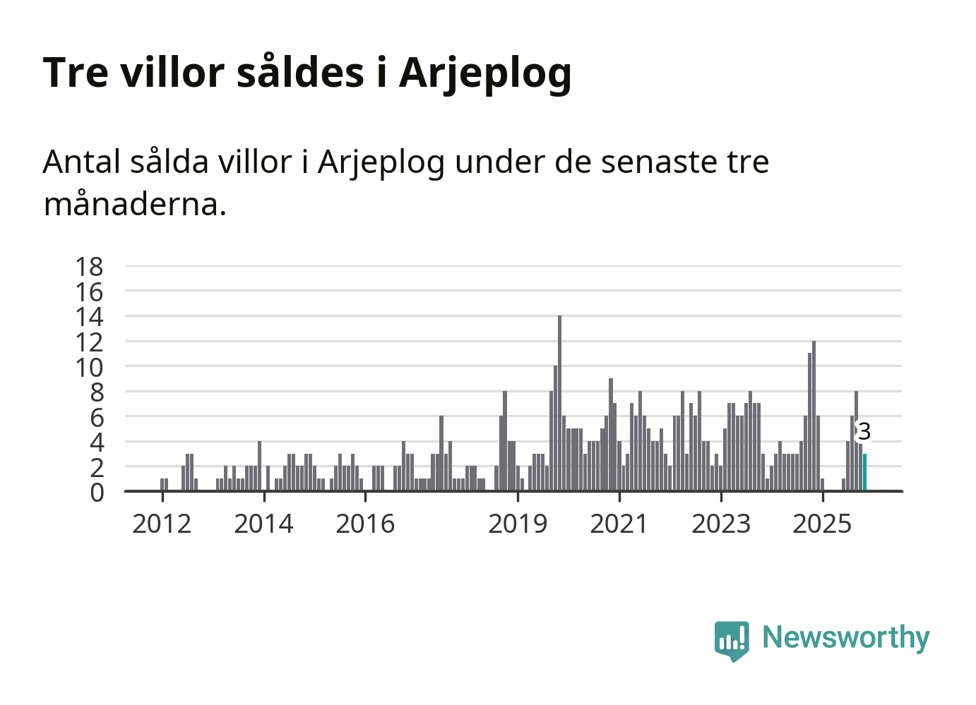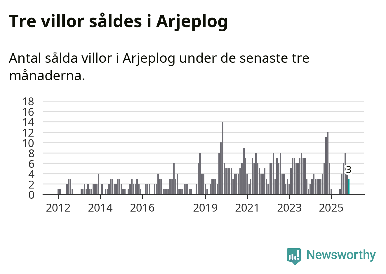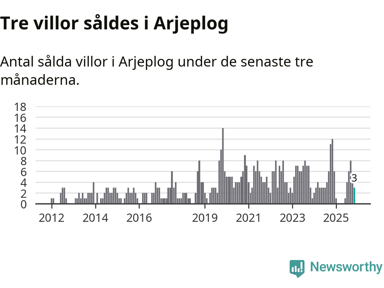 Mellan september och november gjordes sammanlagt tre affärer med villor i Arjeplogs kommun. Det kan jämföras med tolv vid motsvarande tid i fjol.